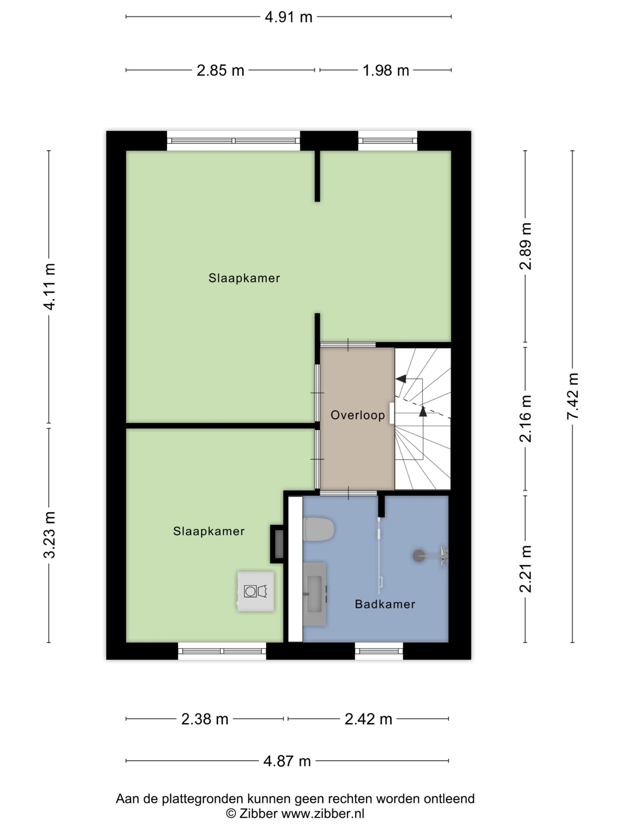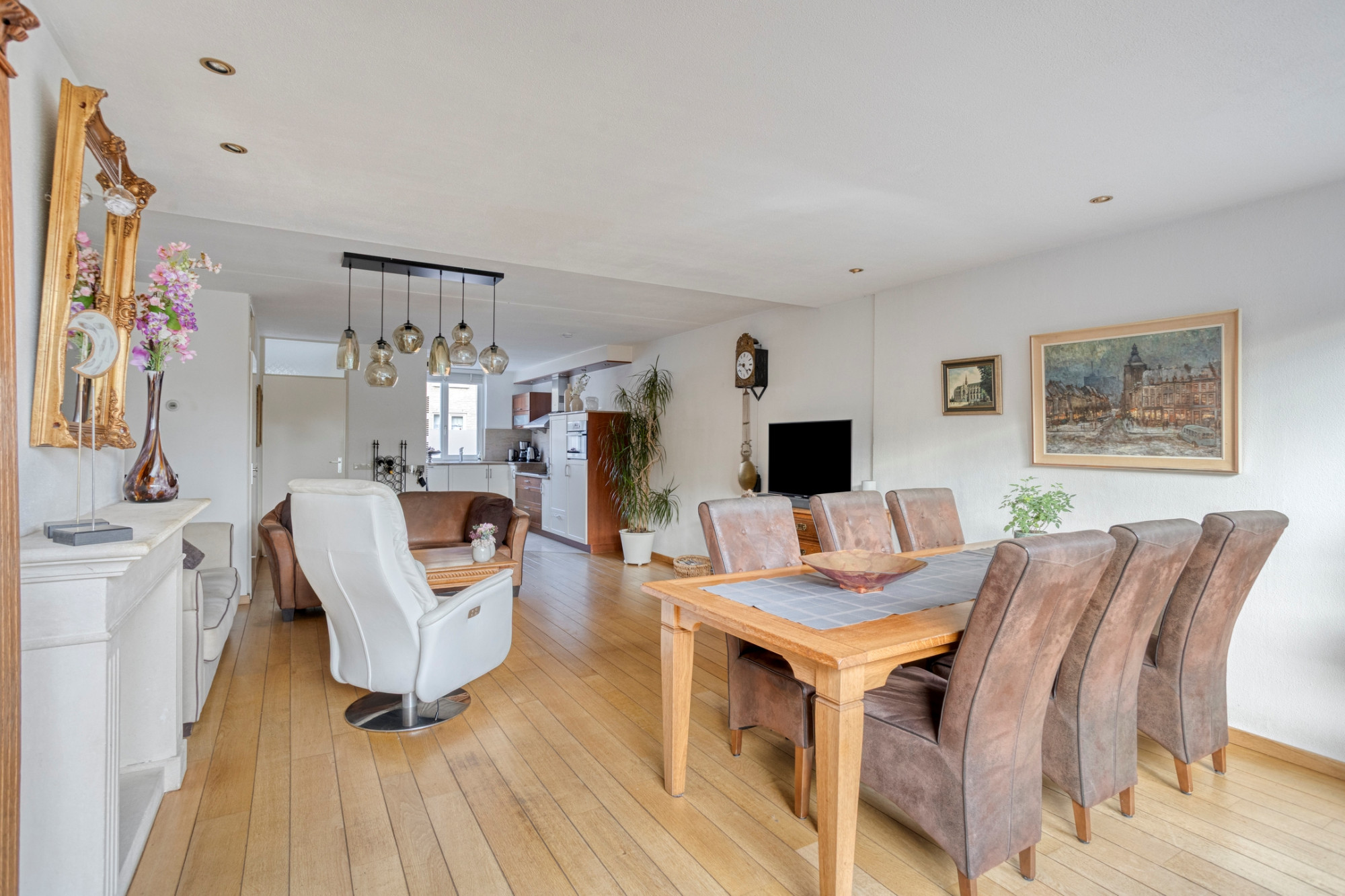 Verdieping: overloop naar 2 (oorspronkelijk 3) slaapkamers (waarvan 1 met airco); badkamer met inloopdouche, 2e toilet en wastafelmeubel.