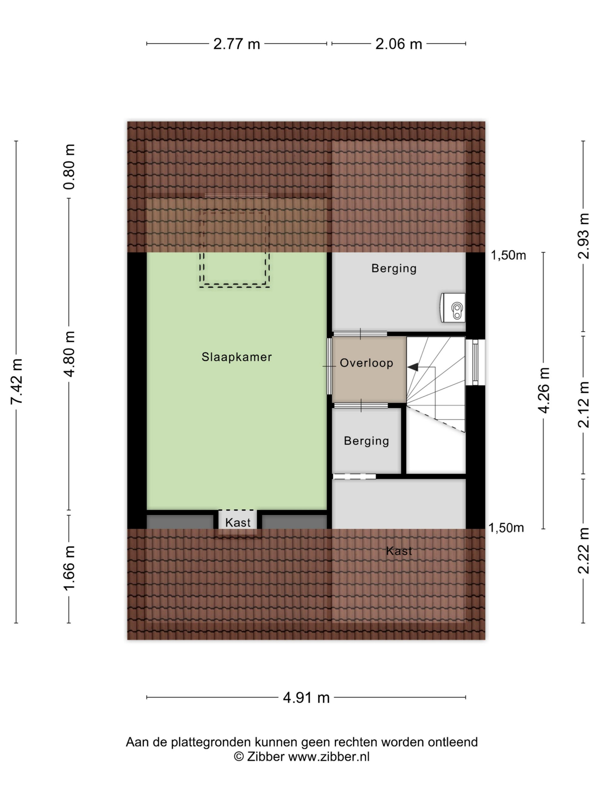 Zolder: 3e slaapkamer en bergruimte met cv-installatie.