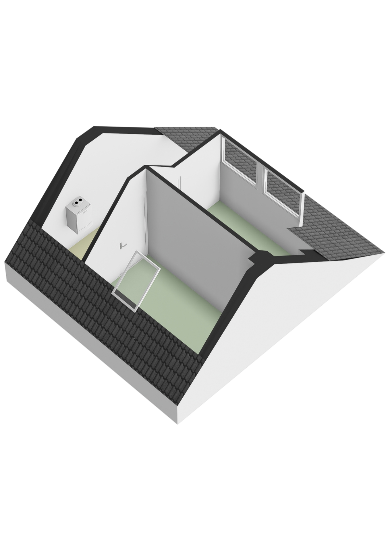 Middels vaste trap te bereiken zolderverdieping. De overloop biedt toegang tot slaapkamer III & VI tevens is hier de cv-ketel gesitueerd.