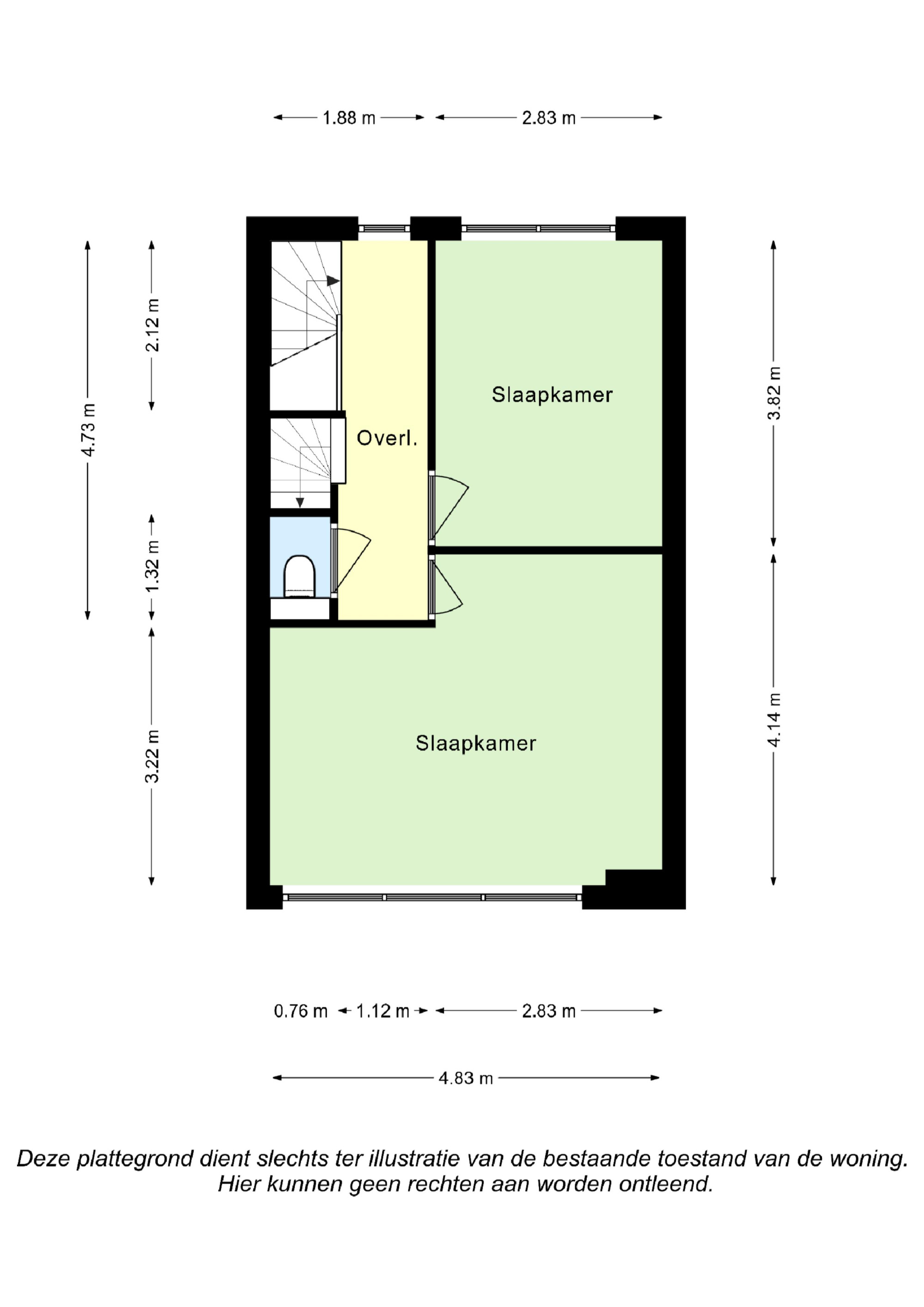 Middels trapopgang te bereiken overloop. De overloop biedt toegang tot twee ruime slaapkamers, respectievelijke groot: