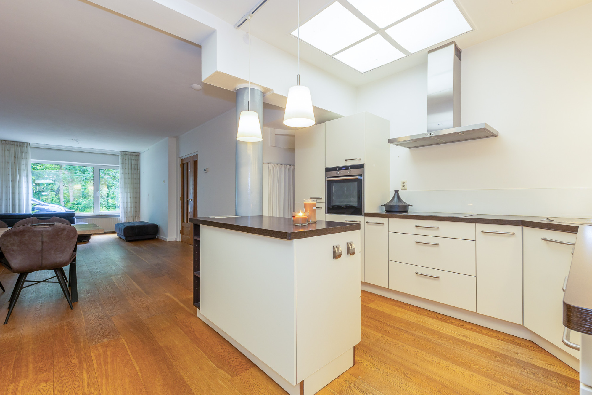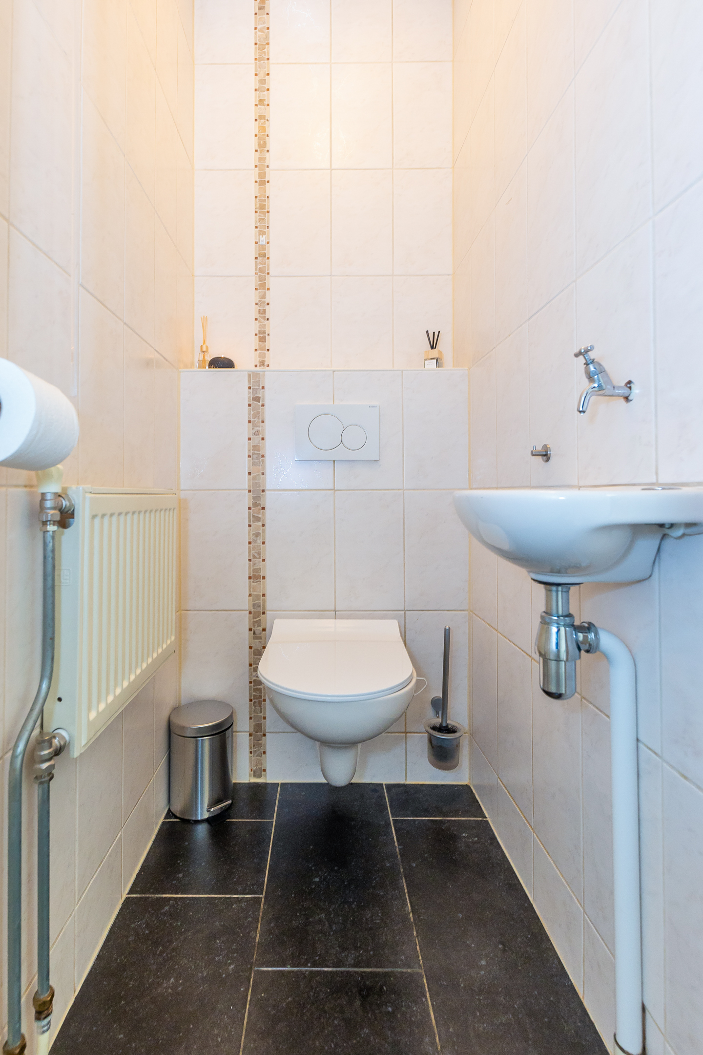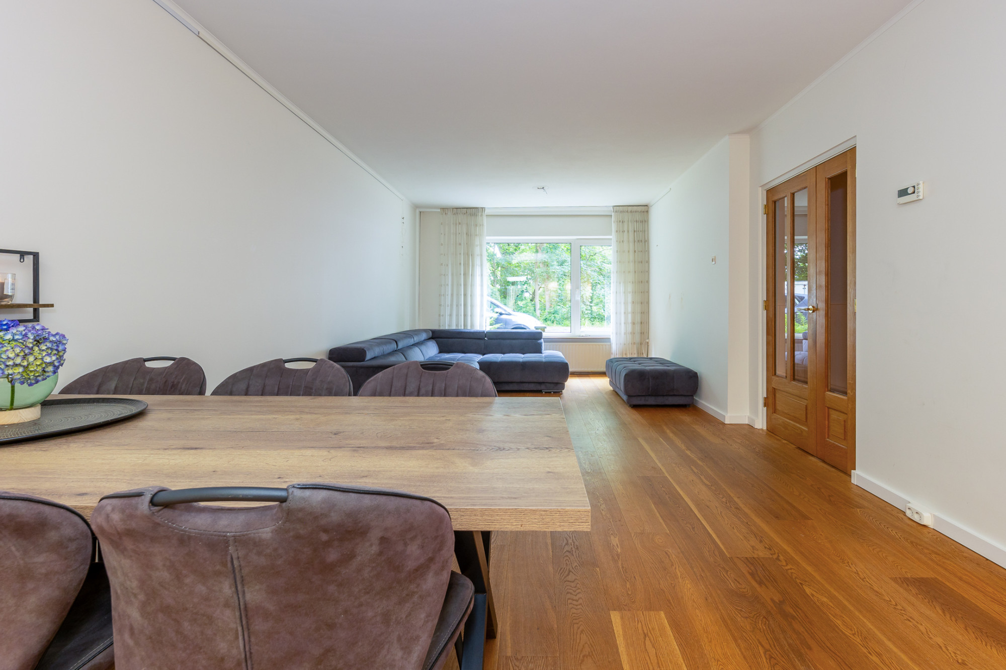 Vanuit voortuin te bereiken entree/ hal. De hal is v.v. een parketvloer en biedt toegang tot meterkast, living en trap naar verdieping. Middels hardhouten deuren toegang tot riante living (6,96 m x 3,77 m/ 3,55 m) v.v. parketvloer, bergkast en open verbinding naar ruime leefkeuken. De leefkeuken (4,49 m x 4,02 m) v.v. een dubbele lichtkoepel en navolgende installatie en apparatuur t.w.: oven, 4-pits inductiekookplaat (2022), vaatwasser en koel-vriescombinatie (2023). Vanuit de keuken heeft men toegang tot hal/bijkeuken, alwaar aansluitpunten wasapparatuur, toegang tot verdeelhal en dubbele openslaande deuren naar tuin. Middels verdeelhal te bereiken badkamer (2,16 m x 1,60 m) v.v. wastafel met meubel en ruime douche. Tevens heeft men vanuit de verheel toegang betegelde toiletruimte voorzien van zwevend closet en fonteintje.