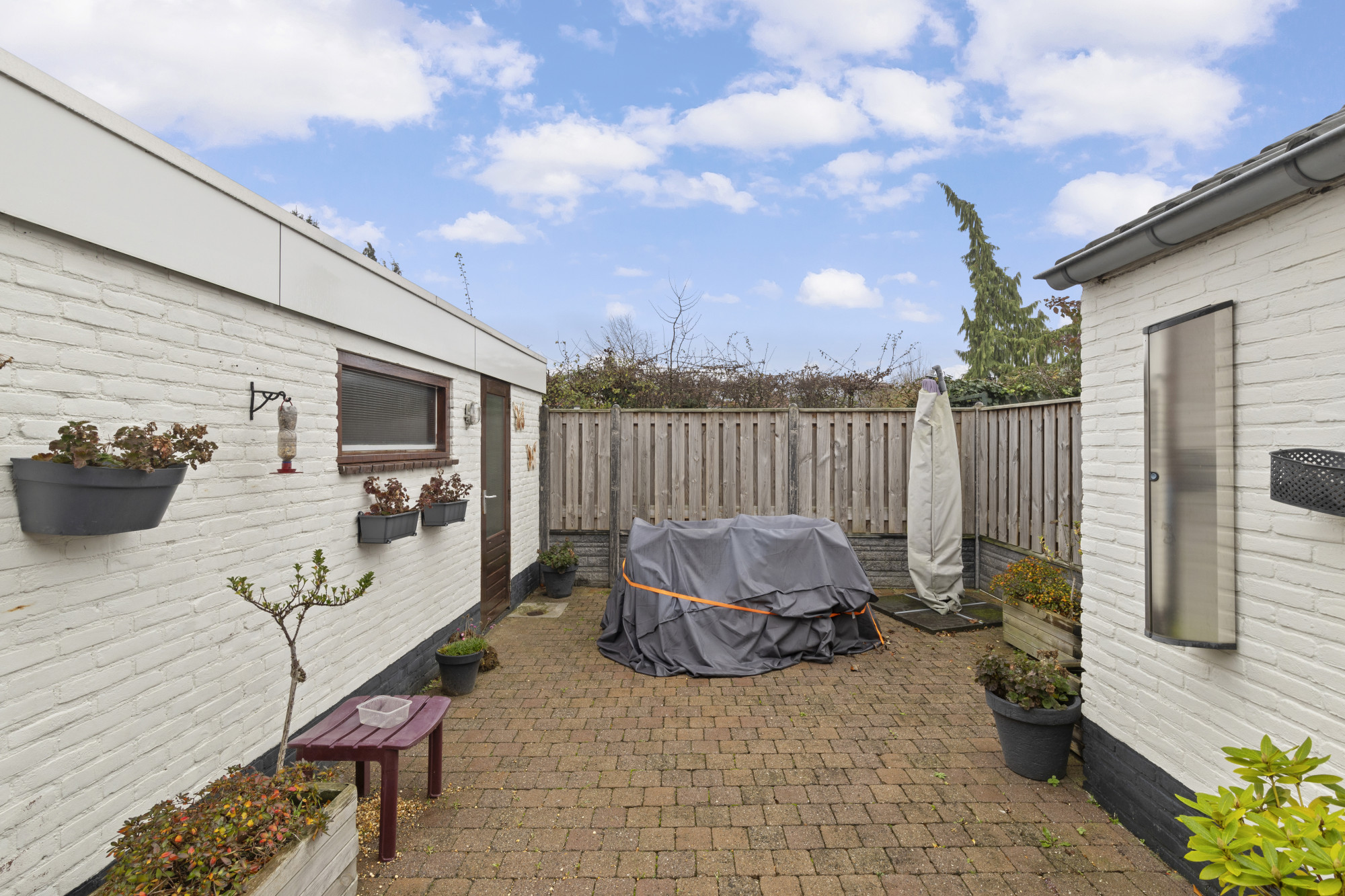 De onderhoudsvriendelijke achtertuin is volledig betegeld en beschikt over een kleine border voor wat groen. De tuin biedt veel privacy en is voorzien van een praktische buitenberging.