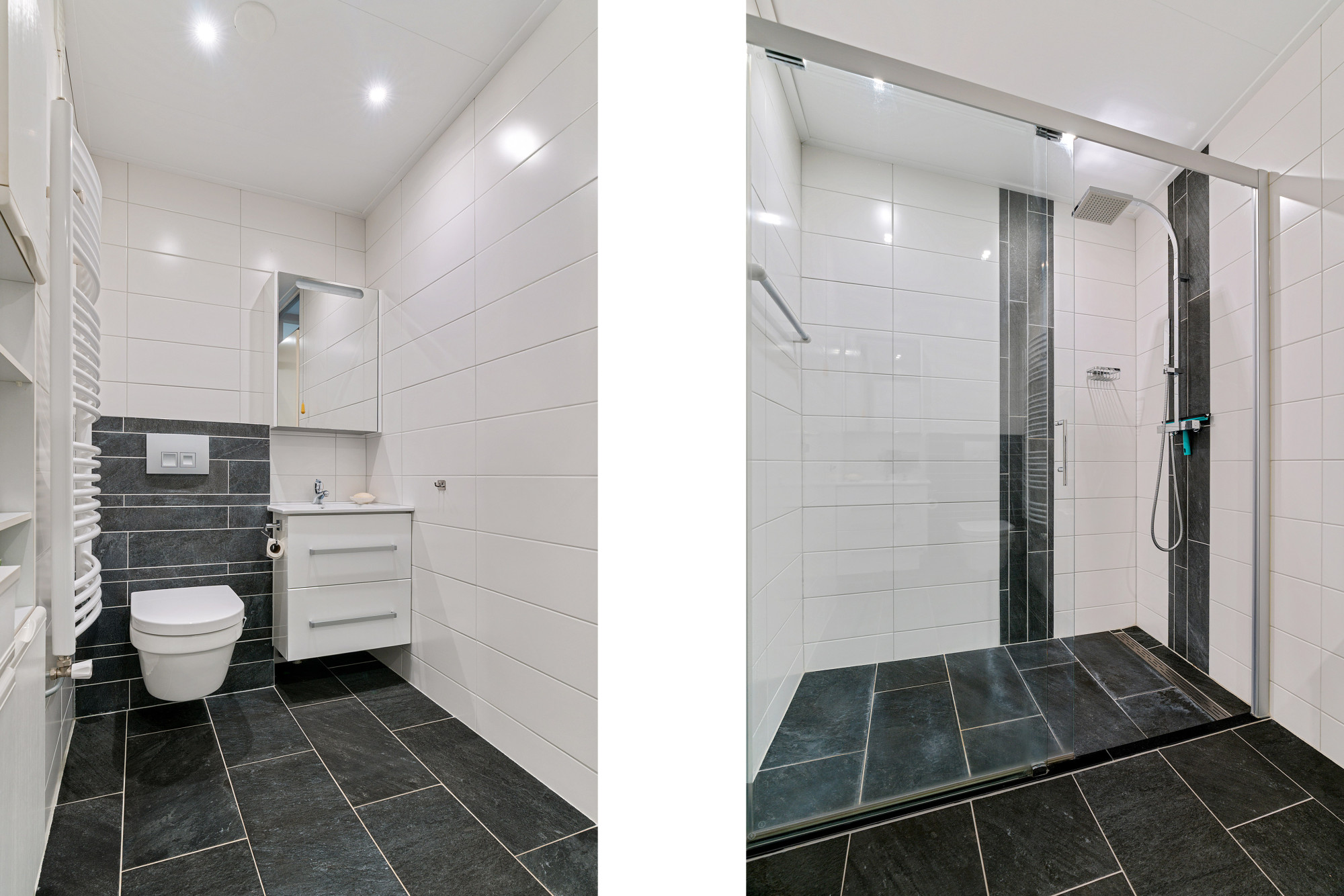 De luxe badkamer, vernieuwd in 2019, is voorzien van een inloopdouche, toilet, modern badmeubel en designradiator. Dankzij de kunststof kozijnen en grotendeels elektrisch bedienbare rolluiken (met horren) is ook deze verdieping comfortabel en onderhoudsvriendelijk.