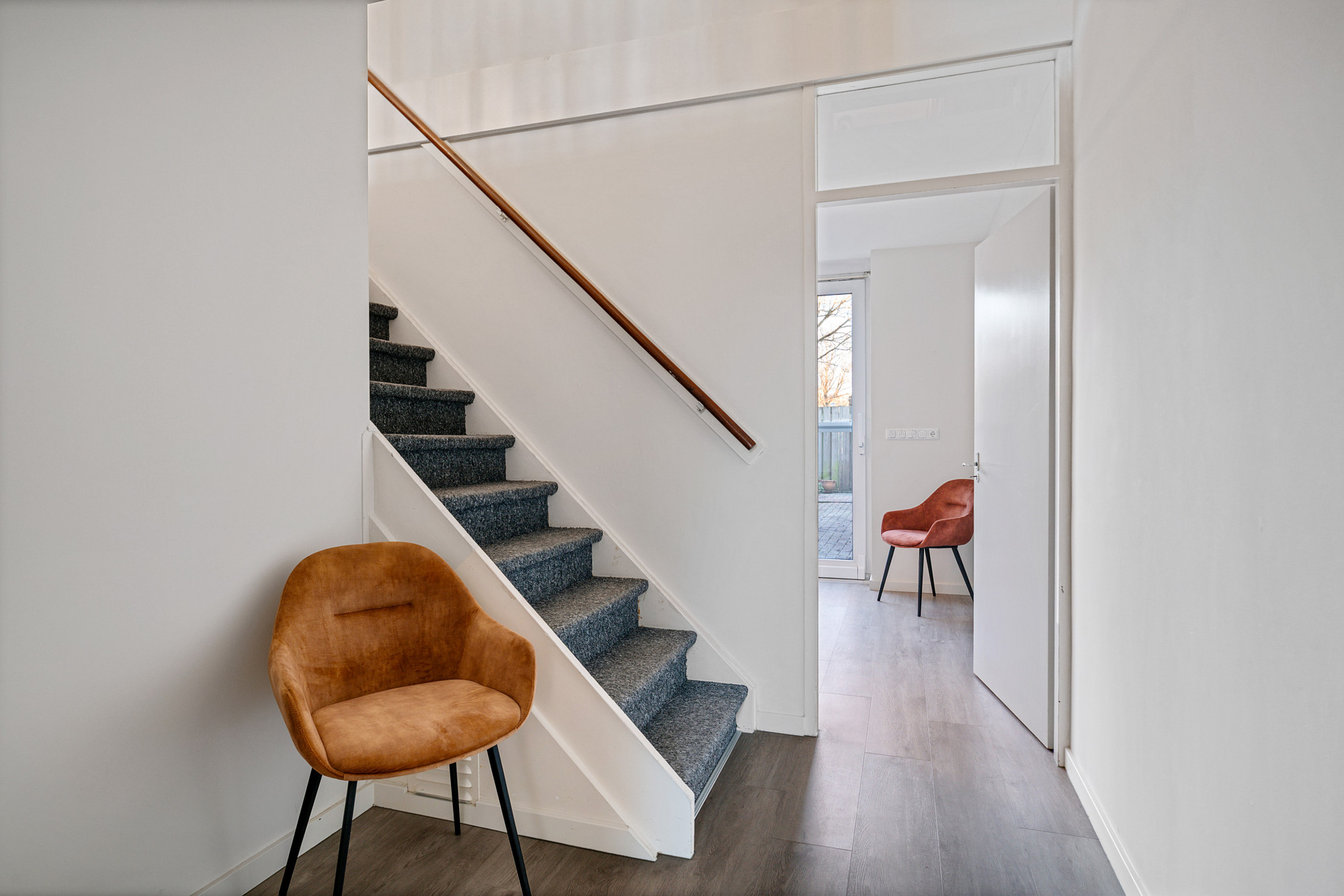 Via de nette voortuin en eigen oprit bereik je de woning. In de ontvangsthal tref je de meterkast en een modern toilet met zwevend closet en fonteintje. Vanuit hier is de inpandige garage bereikbaar, voorzien van witgoedaansluitingen en extra bergruimte.