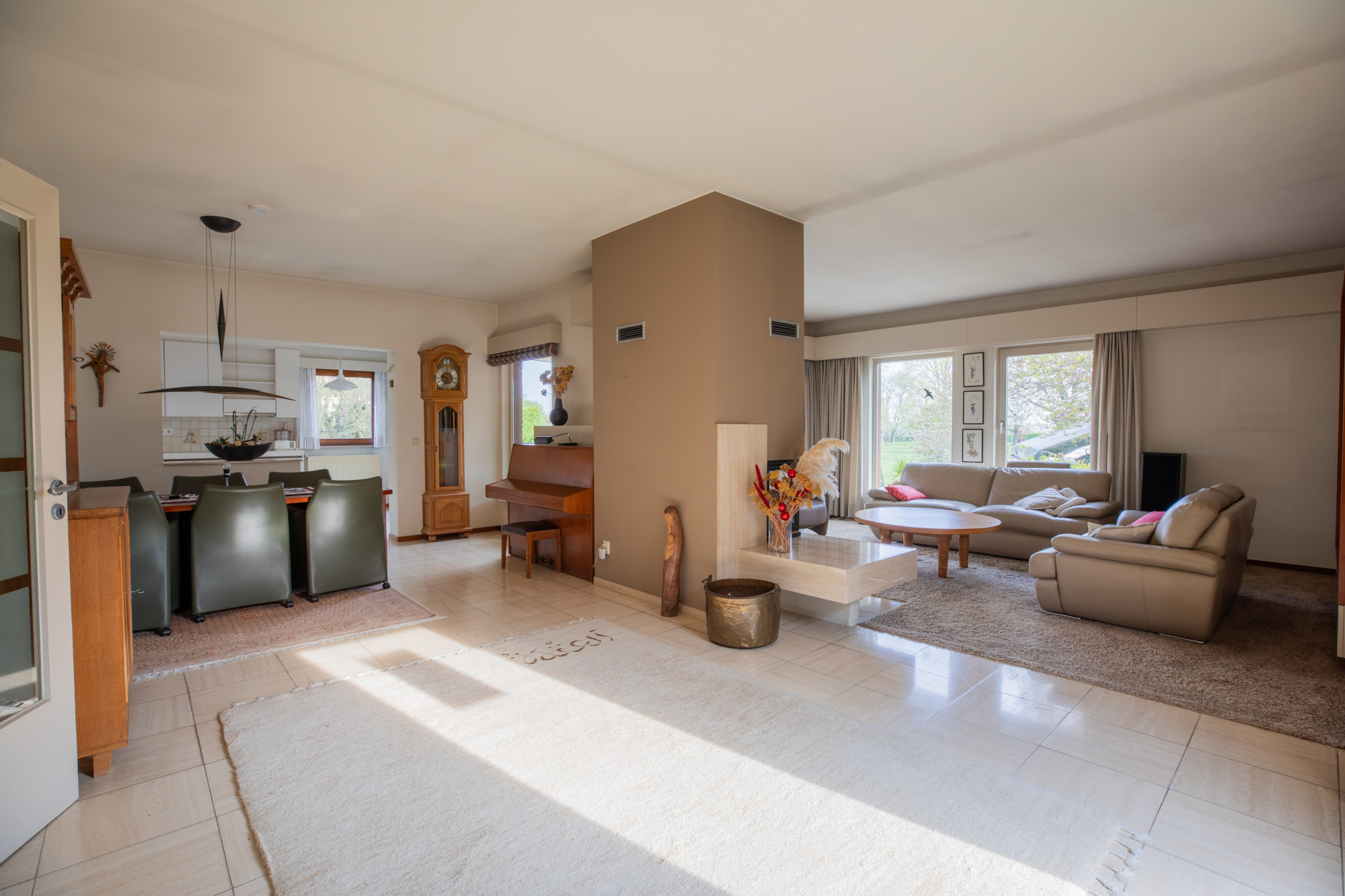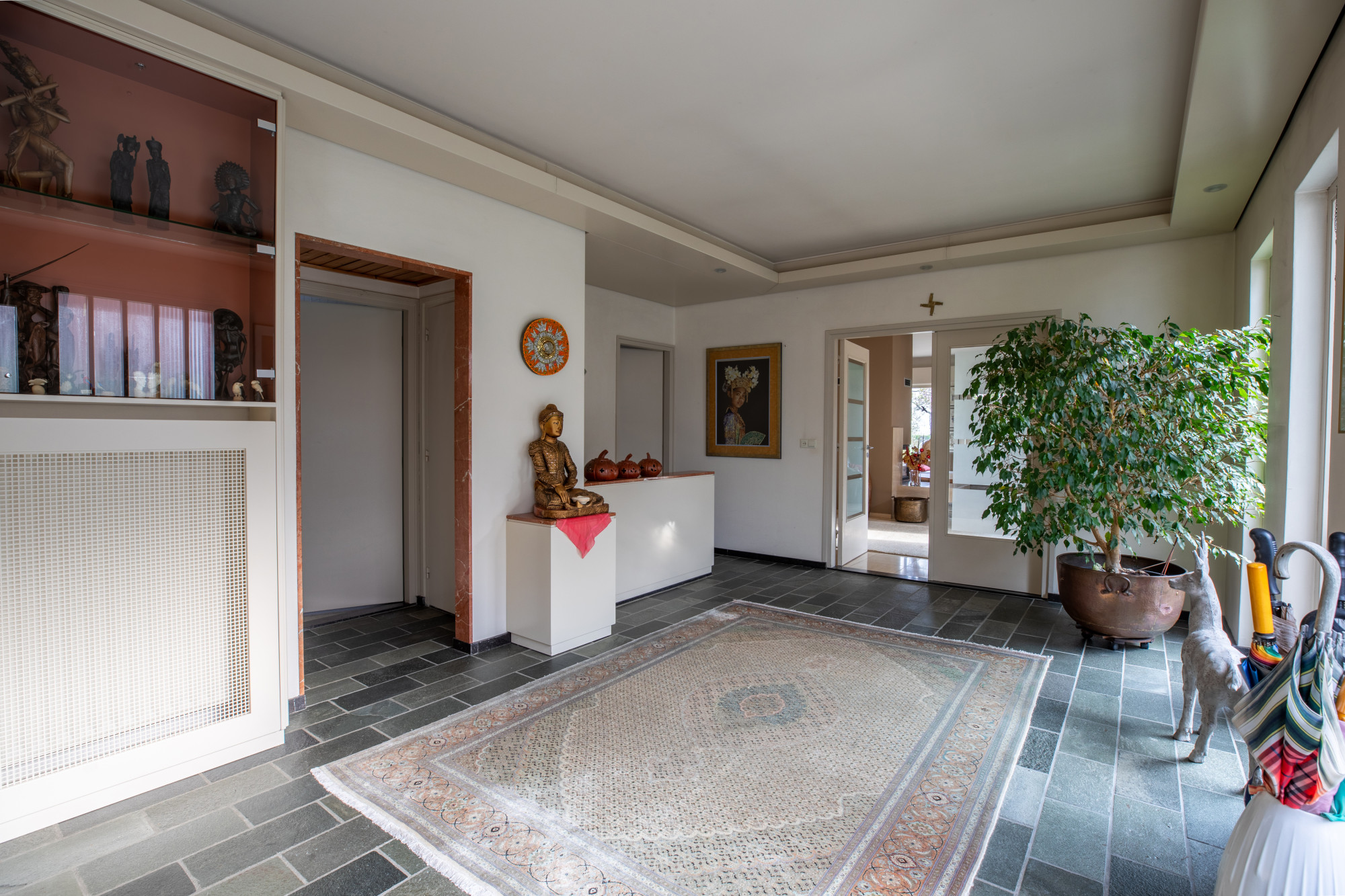 - Royale ontvangsthal met toegang tot de slaapvertrekken aan de voorzijde en de woonkamer en keuken aan de achterzijde.