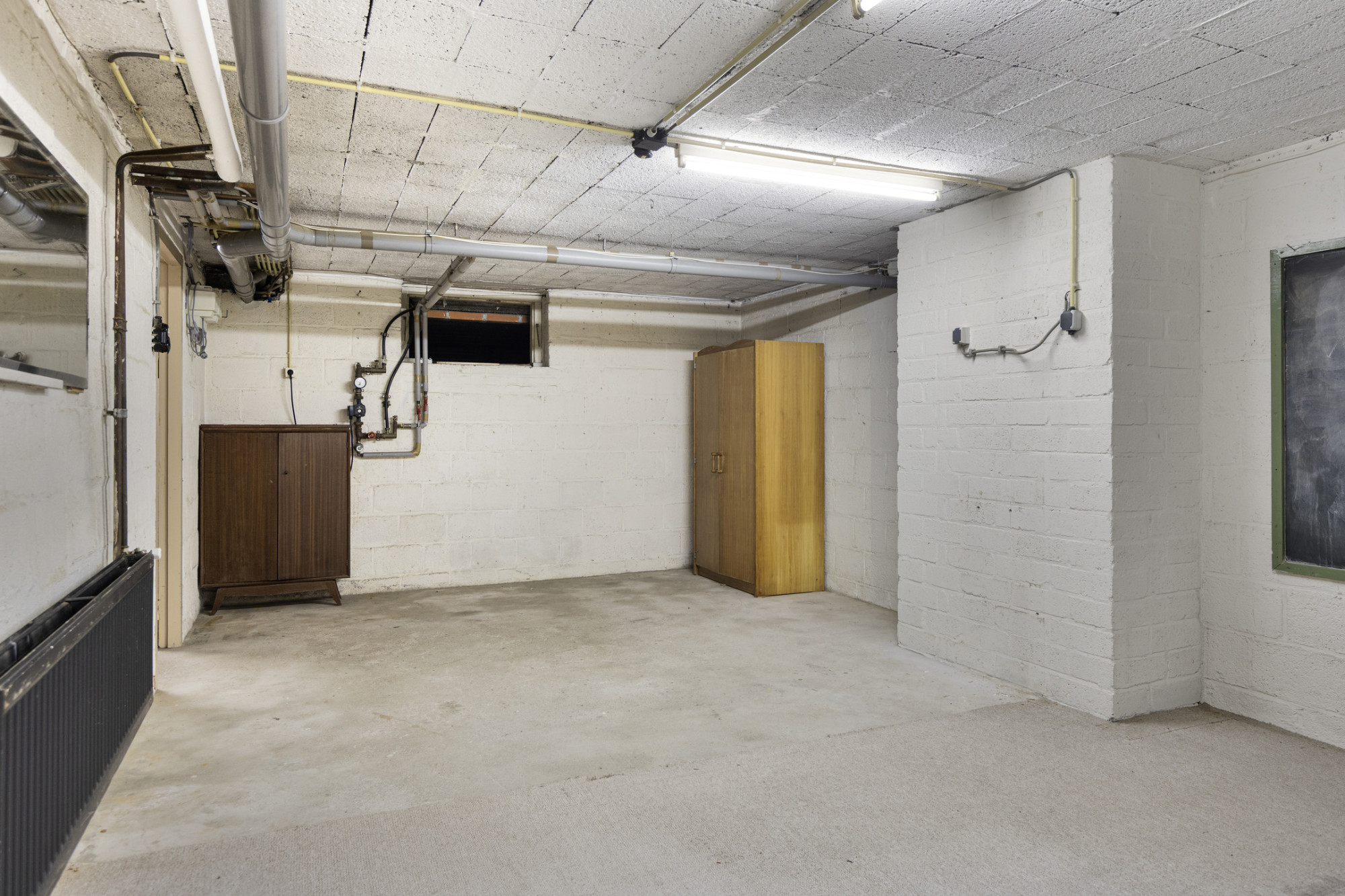 - Het souterrain met verwarming is bereikbaar vanuit de ontvangsthal en is ingedeeld in vijf functionele ruimtes met ramen waarvan 1 heeft gediend als speelkamer en 1 als hobby/werkkamer.
