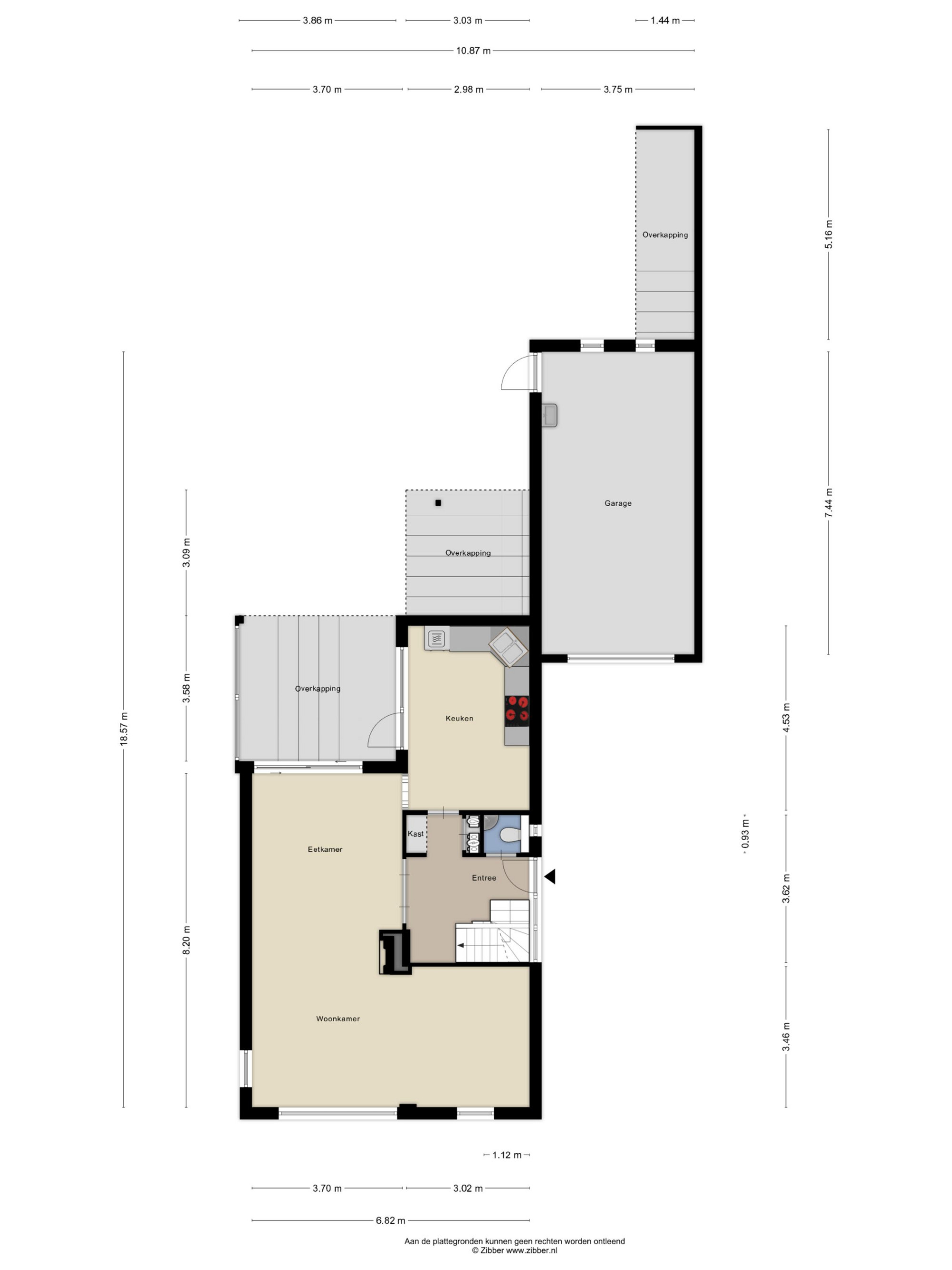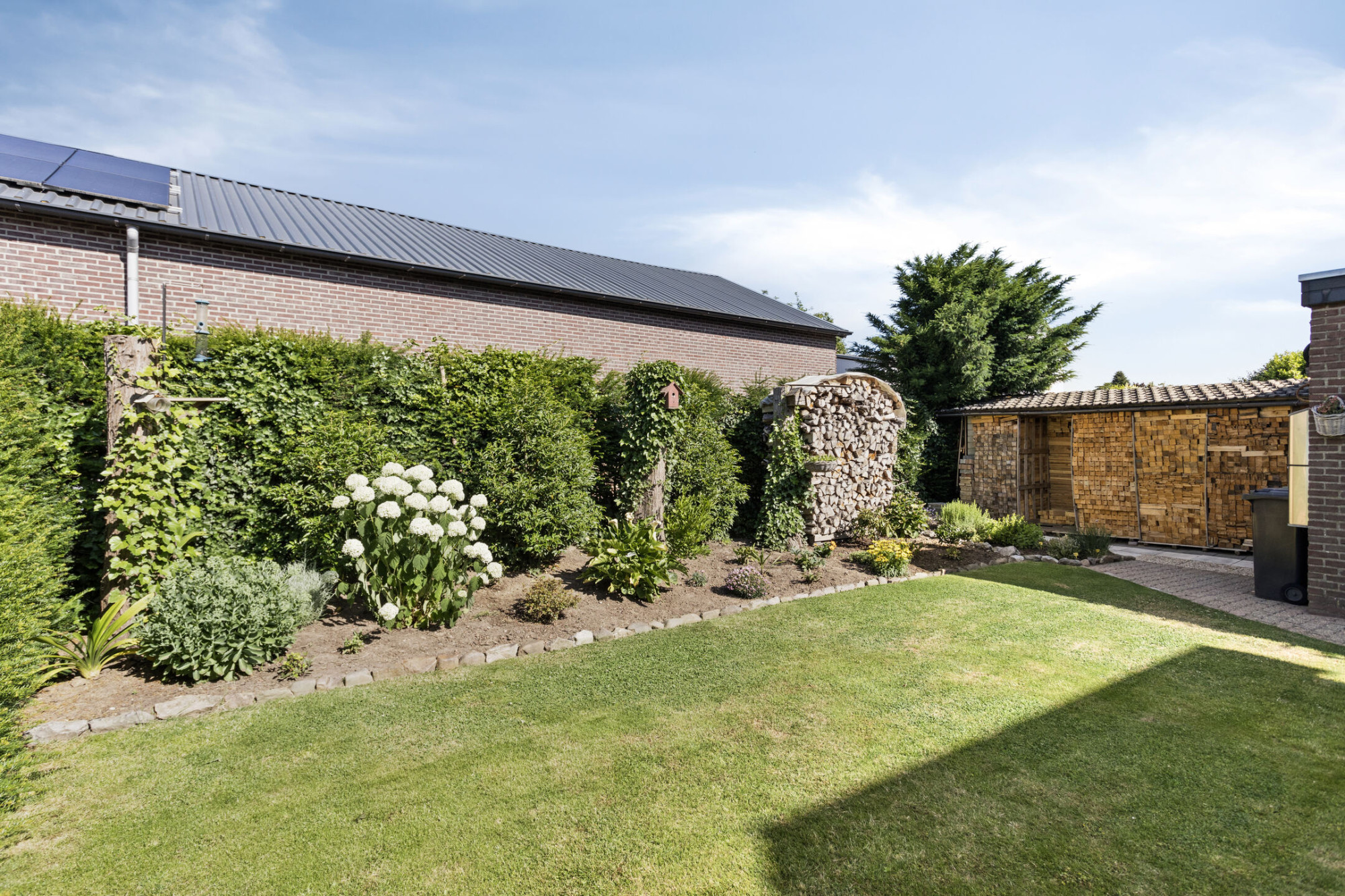 De aangebouwde garage is voorzien van een elektrisch bedienbare sectionaalpoort en uitstortgootsteen.