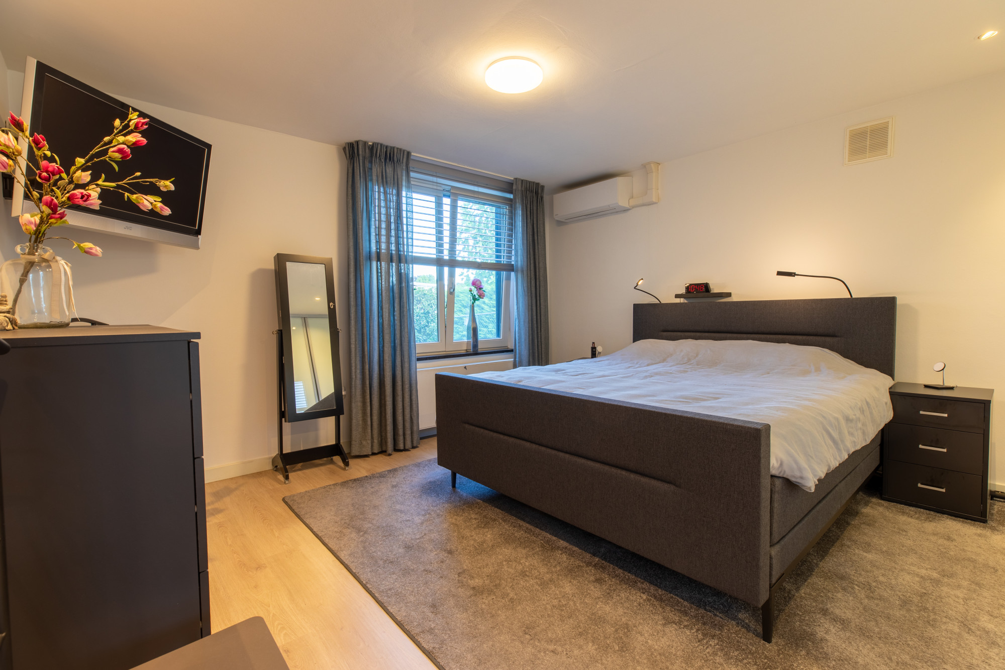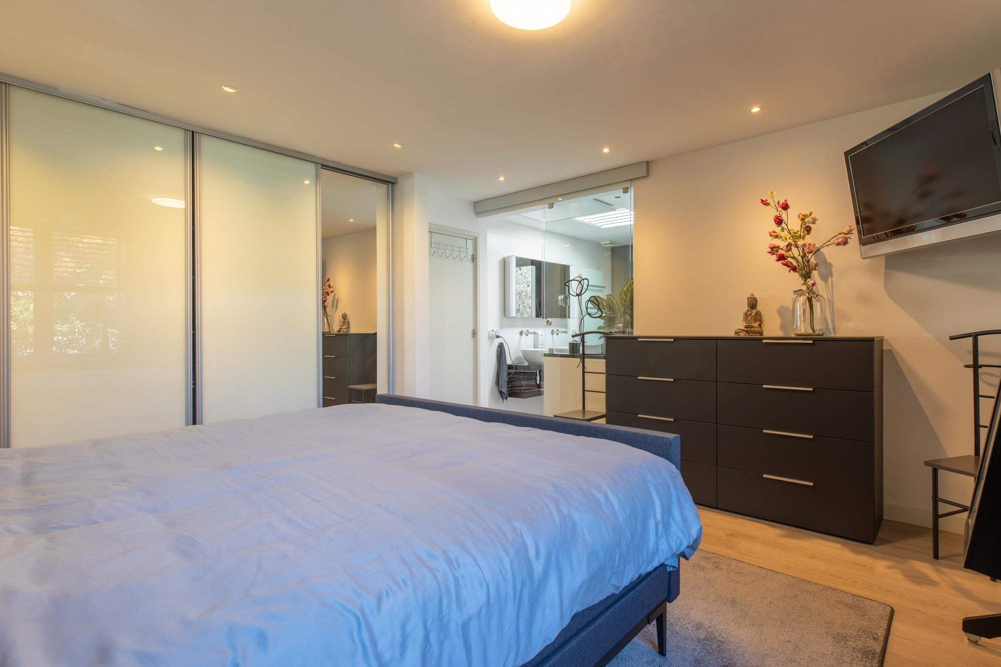 De bungalow beschikt over vier ruime slaapkamers op de begane grond. De grootste slaapkamer van 18 m² is voorzien van airconditioning, stijlvolle inbouwspots en geeft u exclusieve toegang tot de en-suite badkamer. Deze moderne badkamer is van alle gemakken voorzien, met een dubbele wastafel, ligbad, aparte douche en toilet. Daarnaast vindt u in de hal een tweede badkamer met douche en wastafel, ideaal voor de overige slaapkamers of voor gasten. Eén van de kamers is ingericht als functioneel washok met witgoedaansluiting, waardoor hier eenvoudig de wasmachine en droger kunnen worden geplaatst. De overige slaapkamers zijn ruim en uitstekend geschikt als slaap-, werk- of hobbykamer.