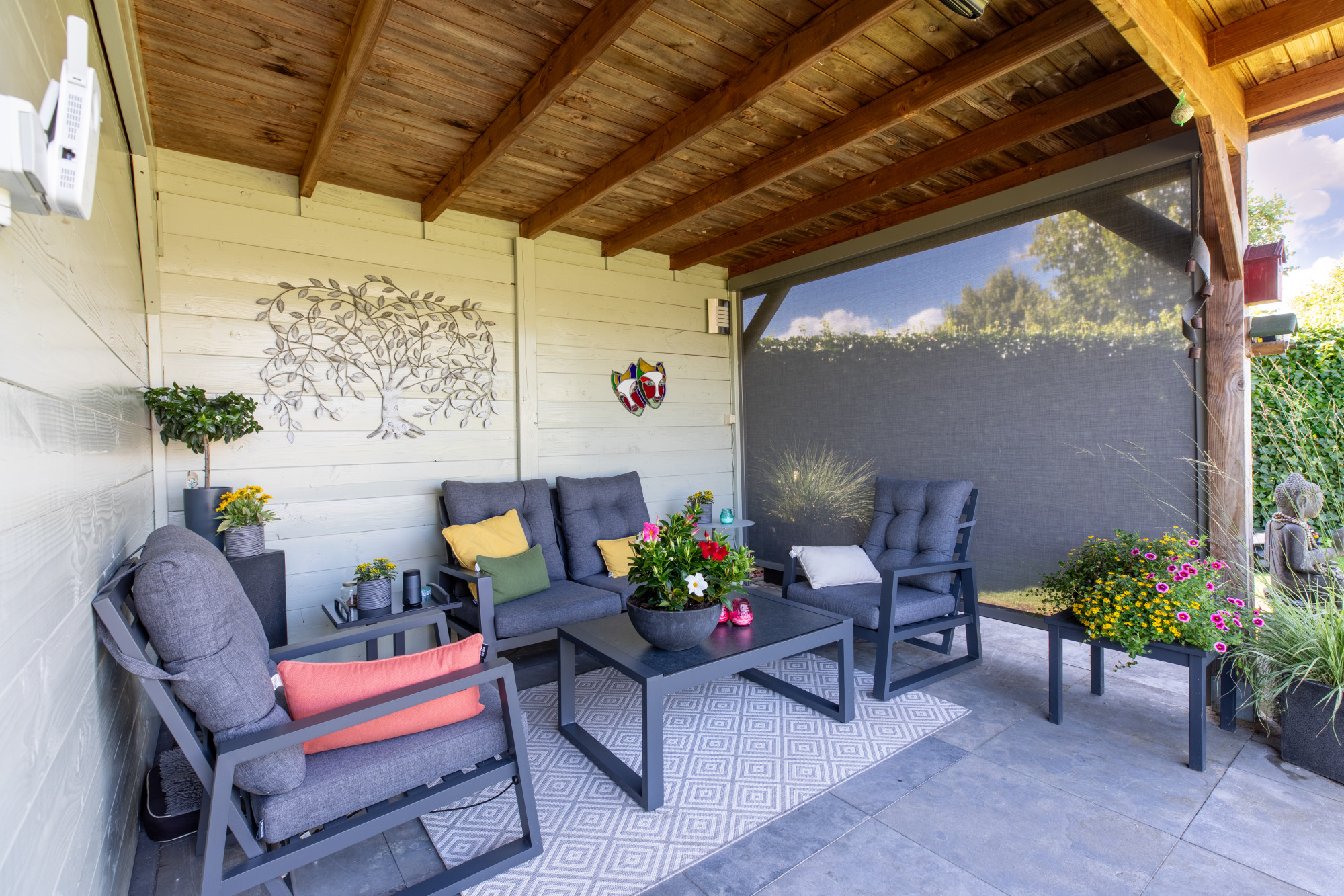 De woning beschikt over een riante tuin van maar liefst 659 m², gelegen op het zuidoosten. Hierdoor kunt u optimaal genieten van de zon. Het betegelde zitgedeelte is voorzien van een automatisch zonnescherm, ideaal voor gezellige momenten buiten. Achter in de tuin vindt u een klein schuurtje met overkapping, dat uitstekend kan dienen als tweede buitenlounge. De tuin biedt volop mogelijkheden voor ontspanning, speelruimte of diverse tuinactiviteiten.