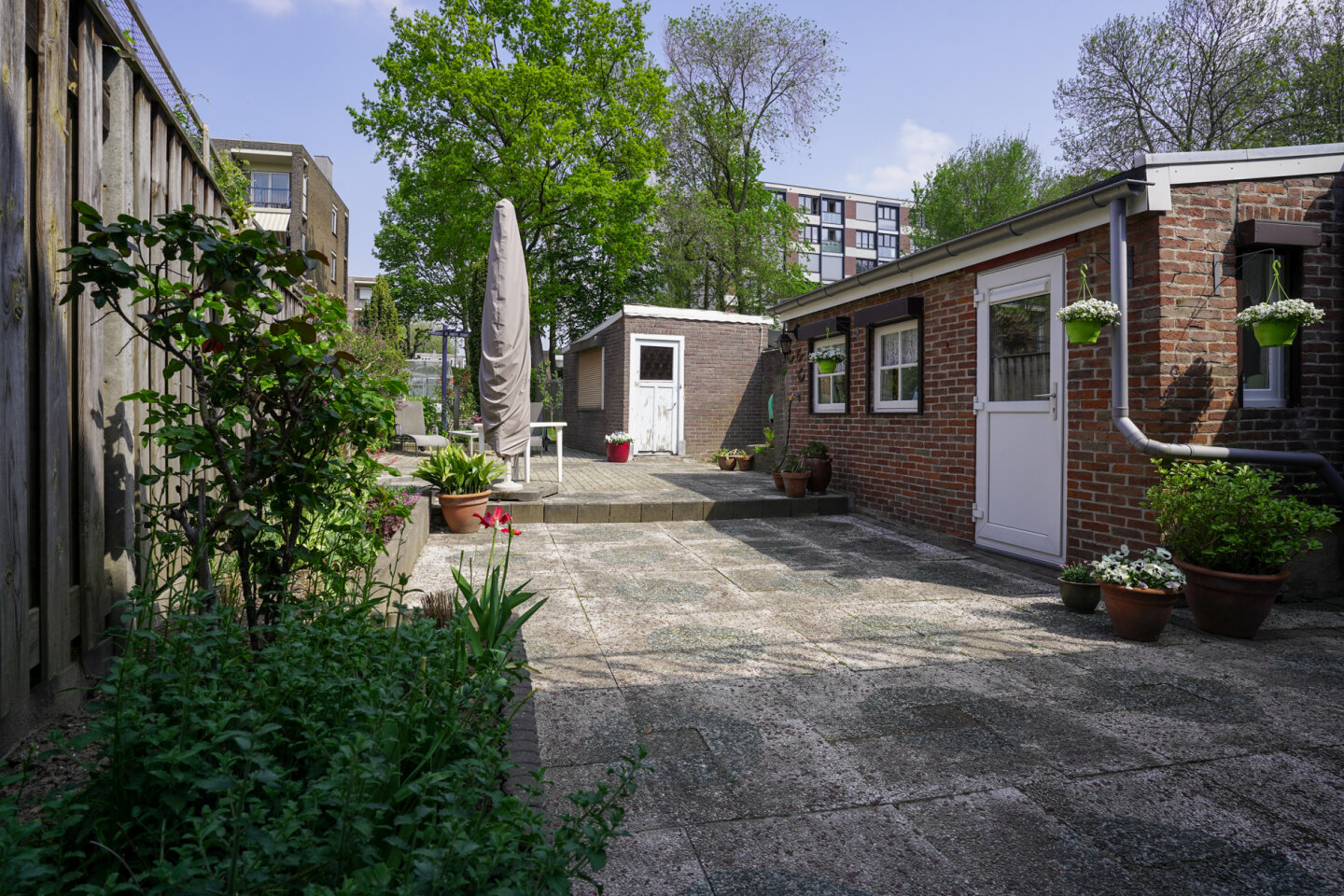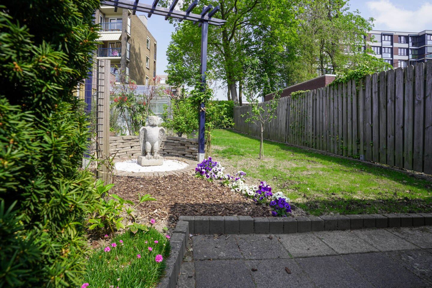 Fraaie royale achtertuin gelegen op het Noordwesten. Met een achterom langs de woning.