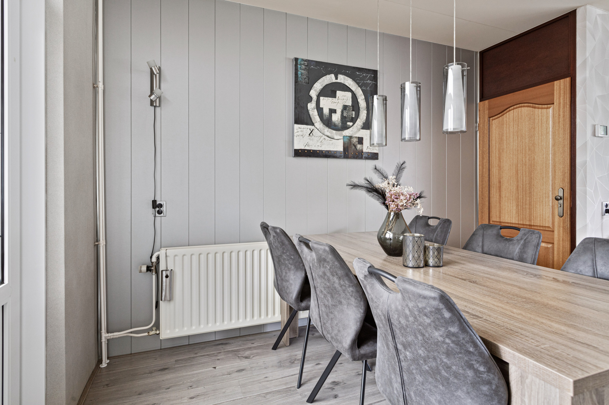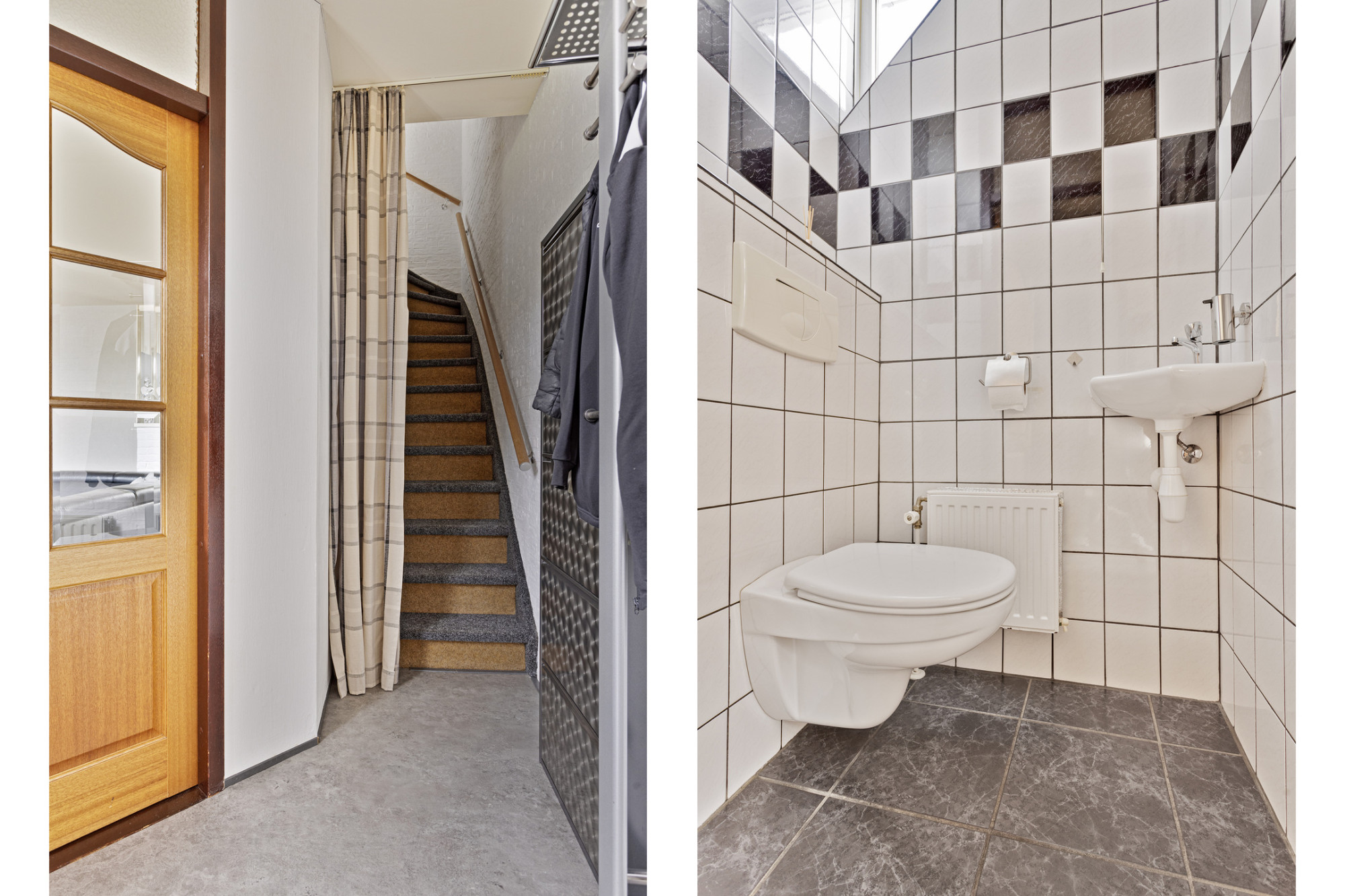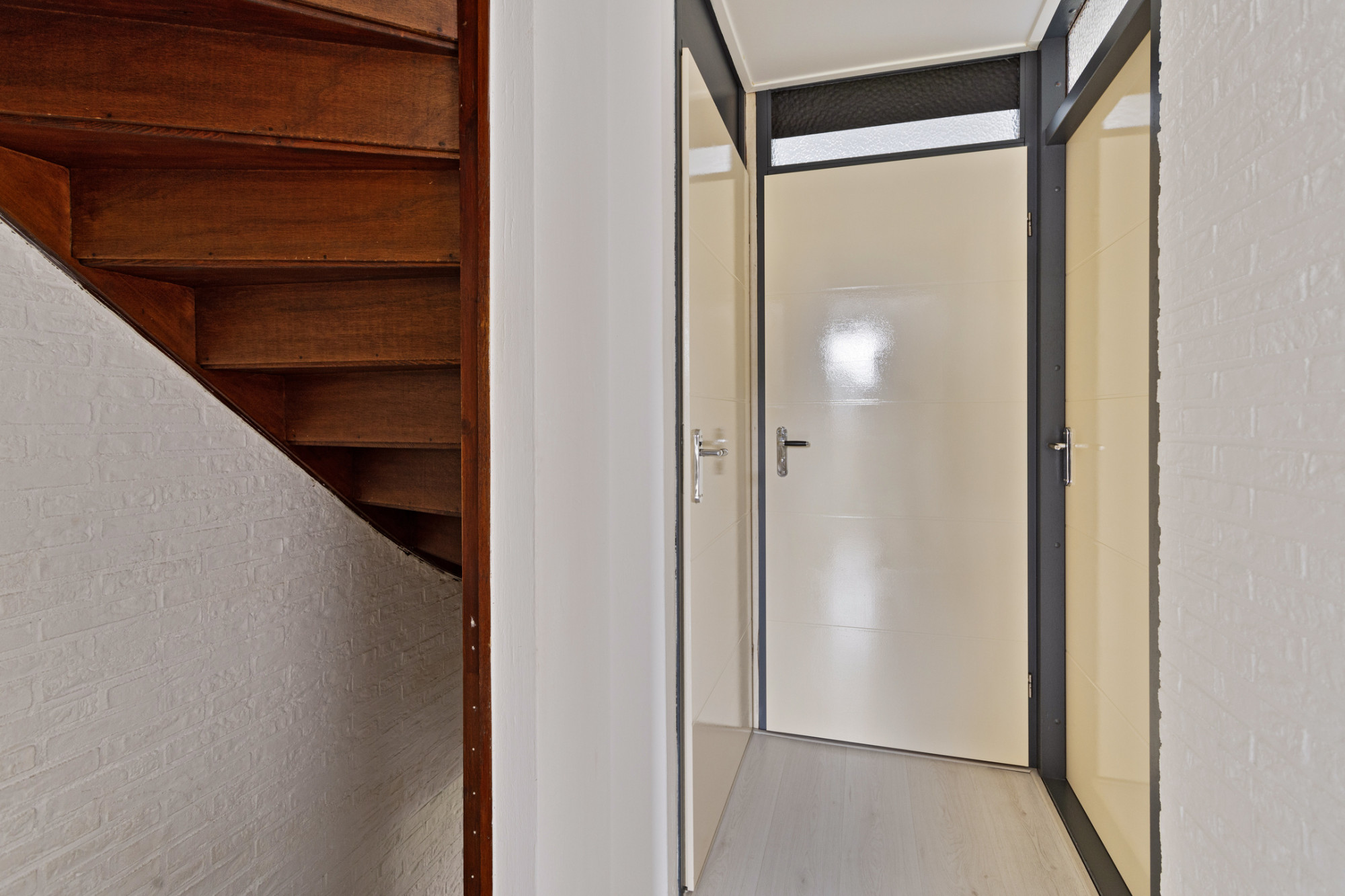 Ontvangsthal met (in 2021 vernieuwde) meterkast en trap naar eerste verdieping.