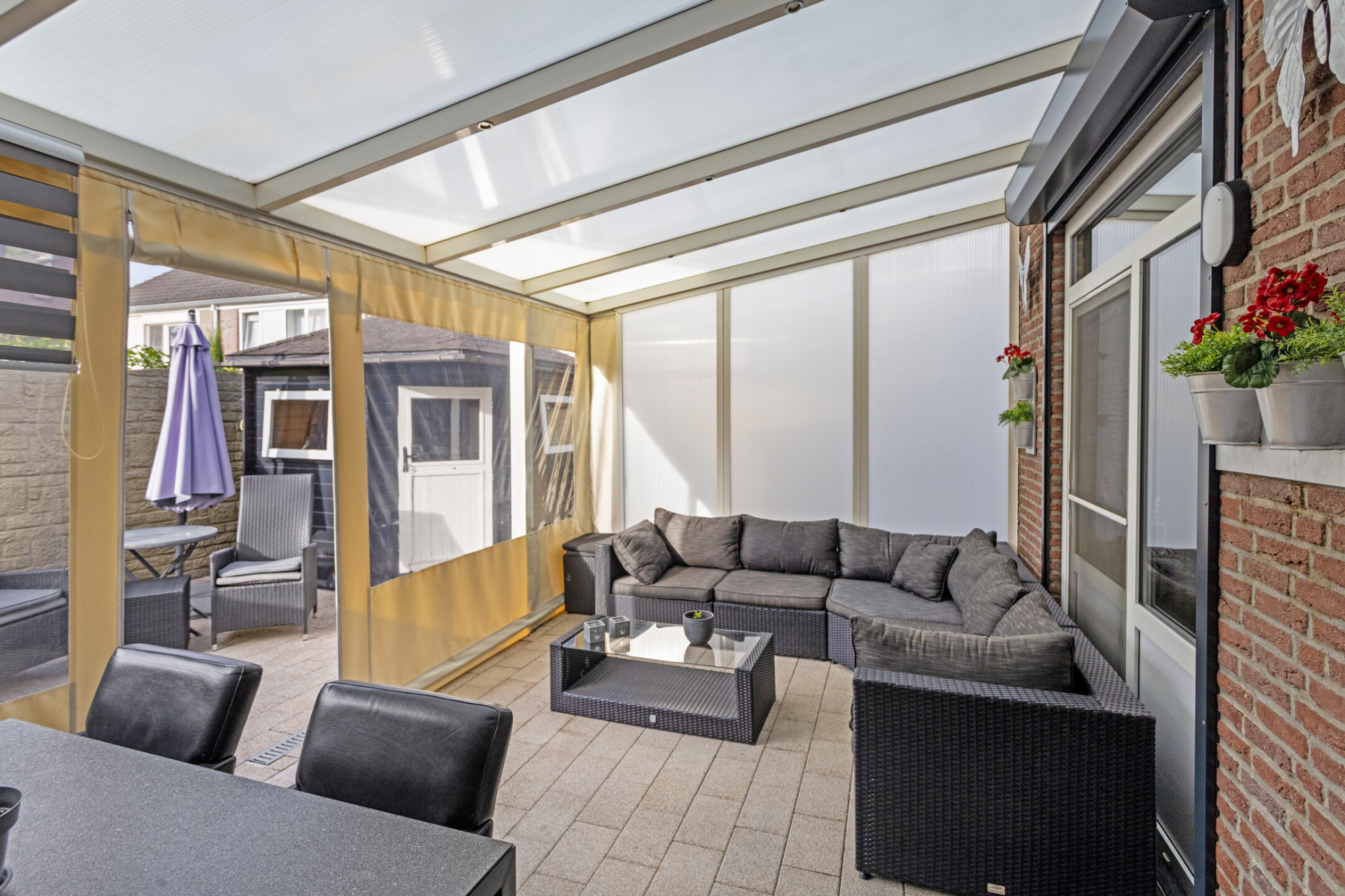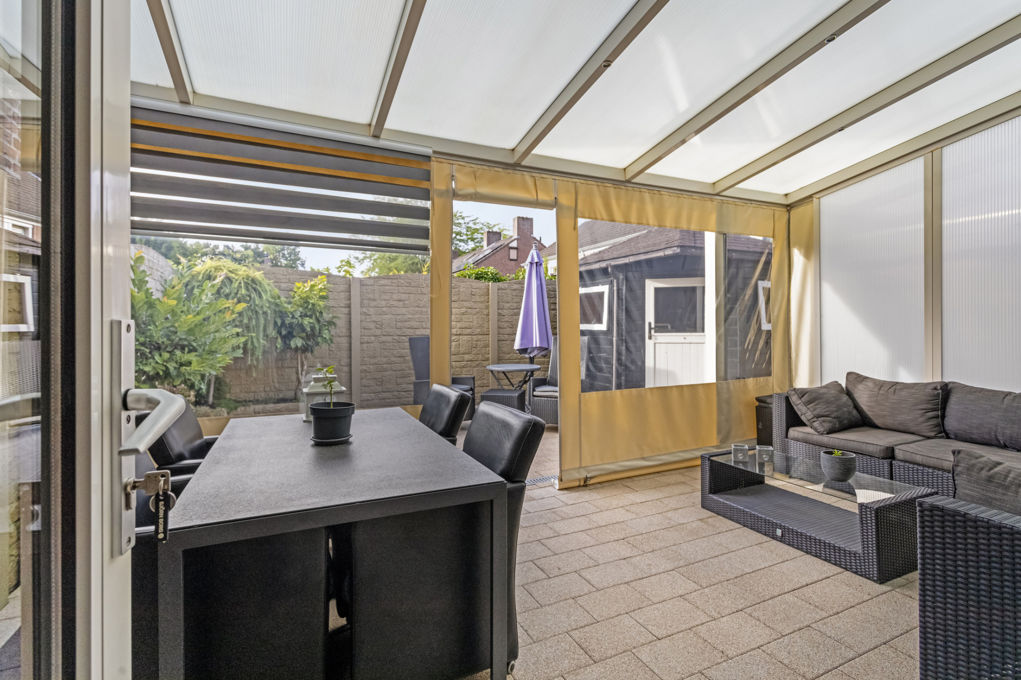 Voorzien van rolluiken deels elektrisch bediend.