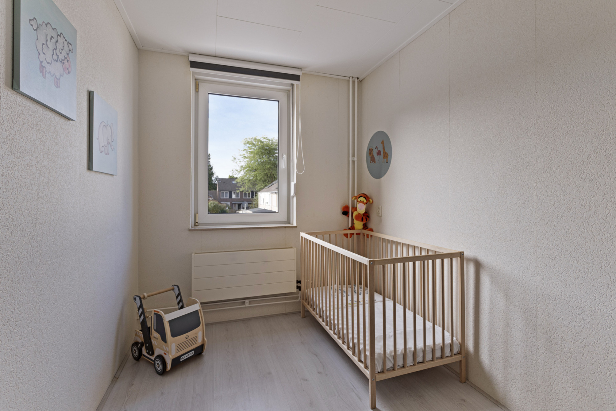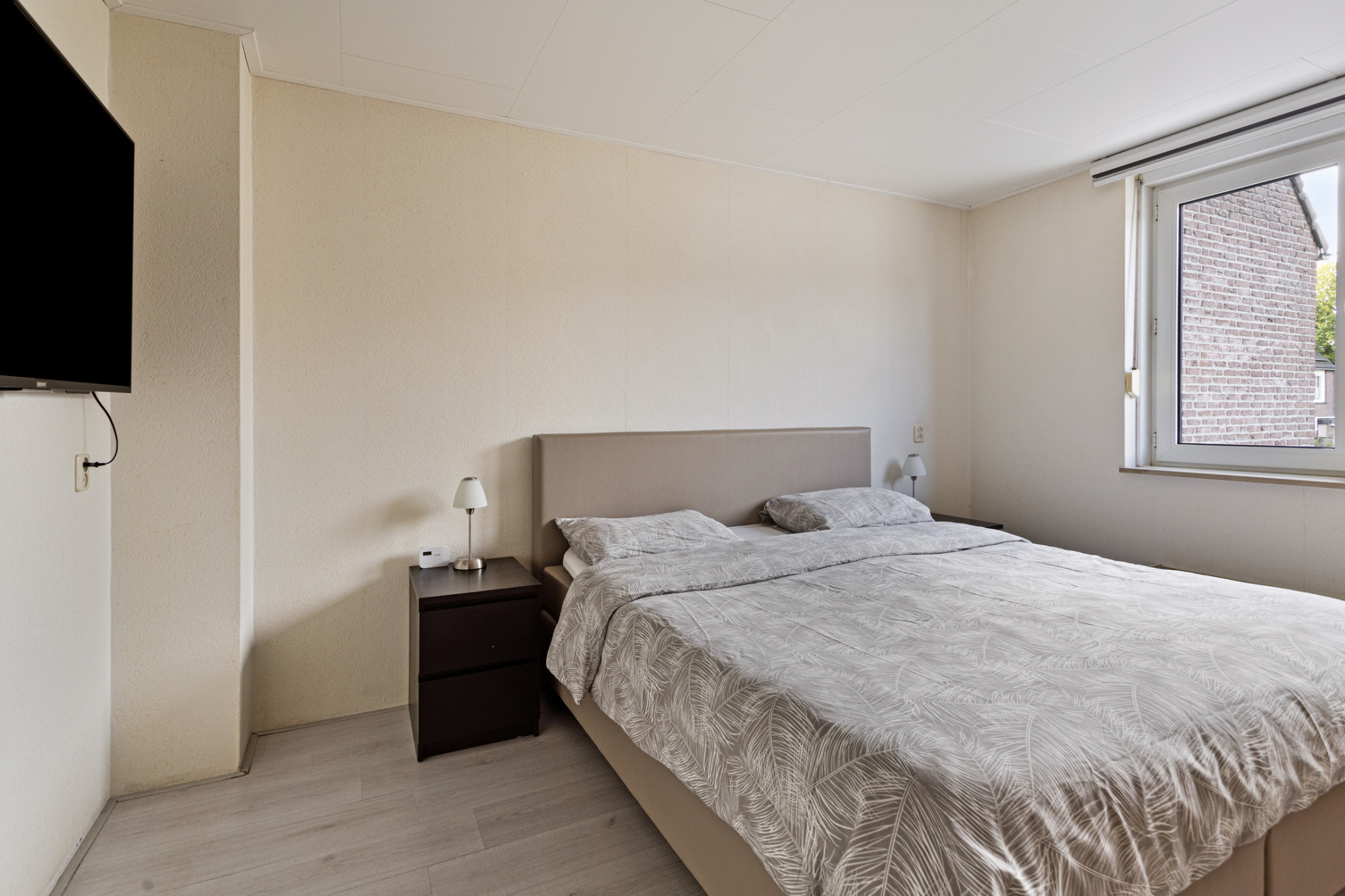 Slaapkamer 2 (3.57 x 3.33 m) voorzien van laminaatvloer.