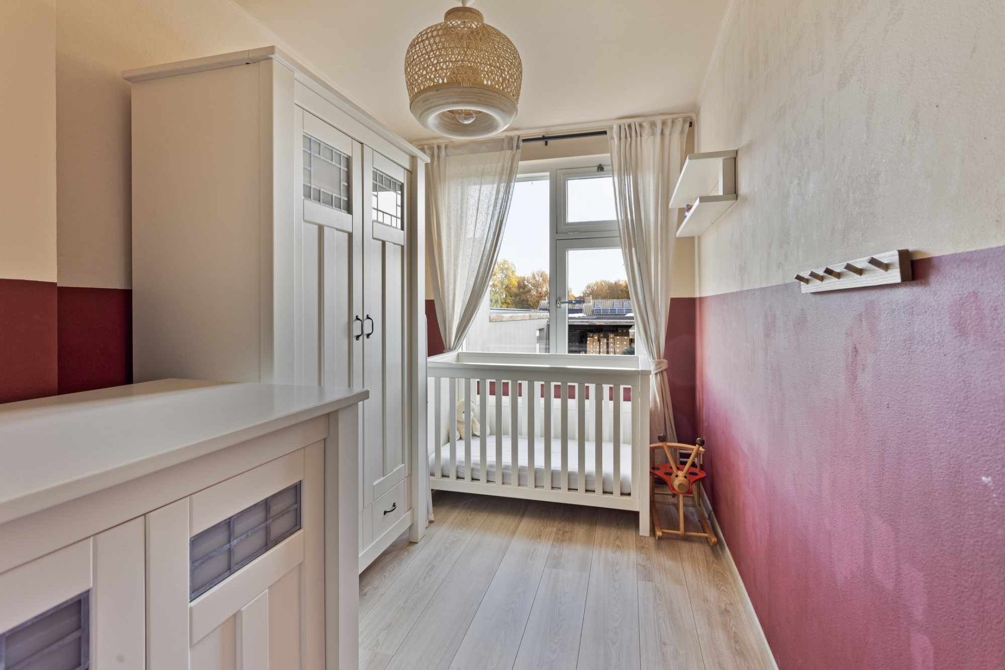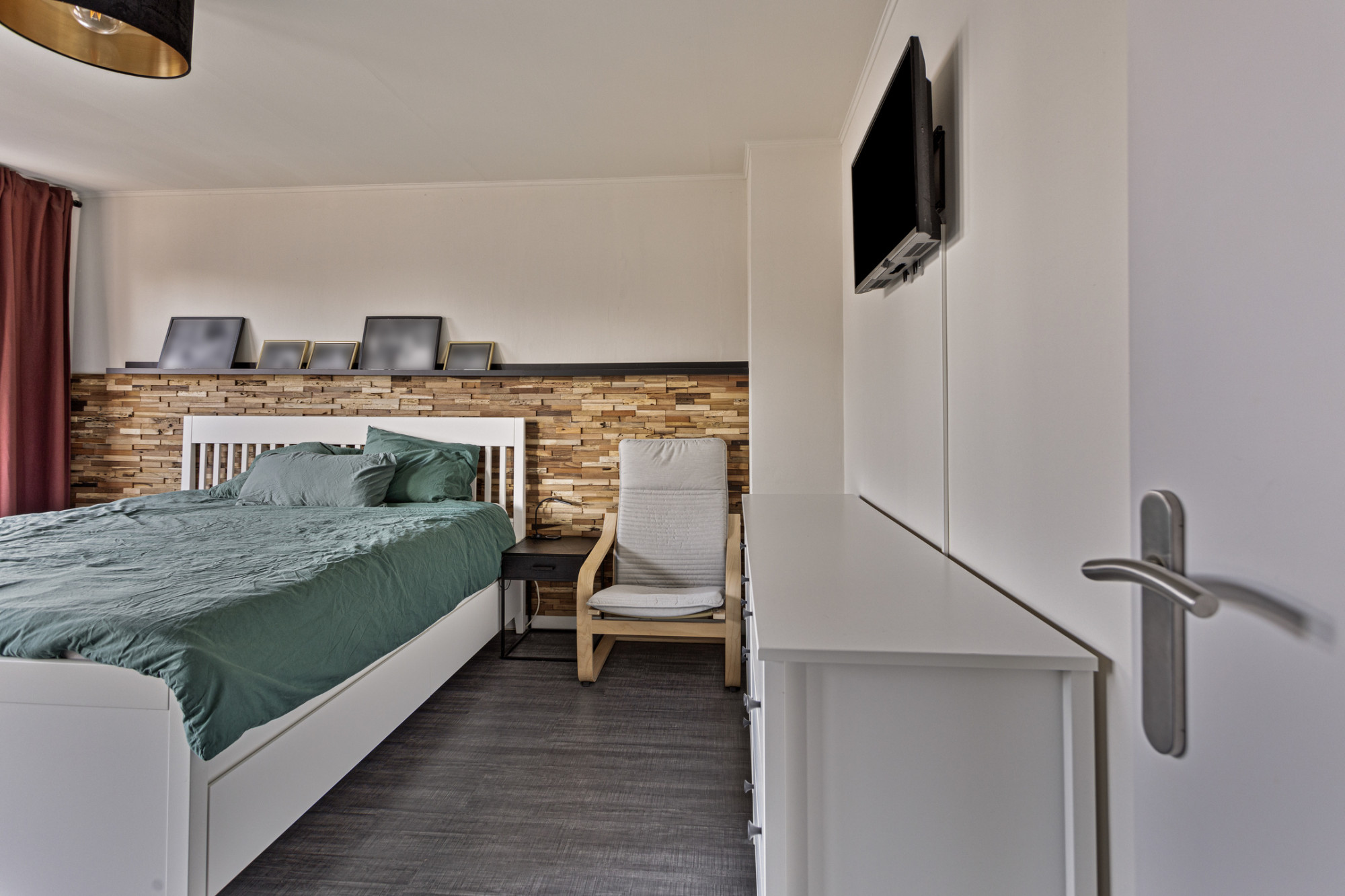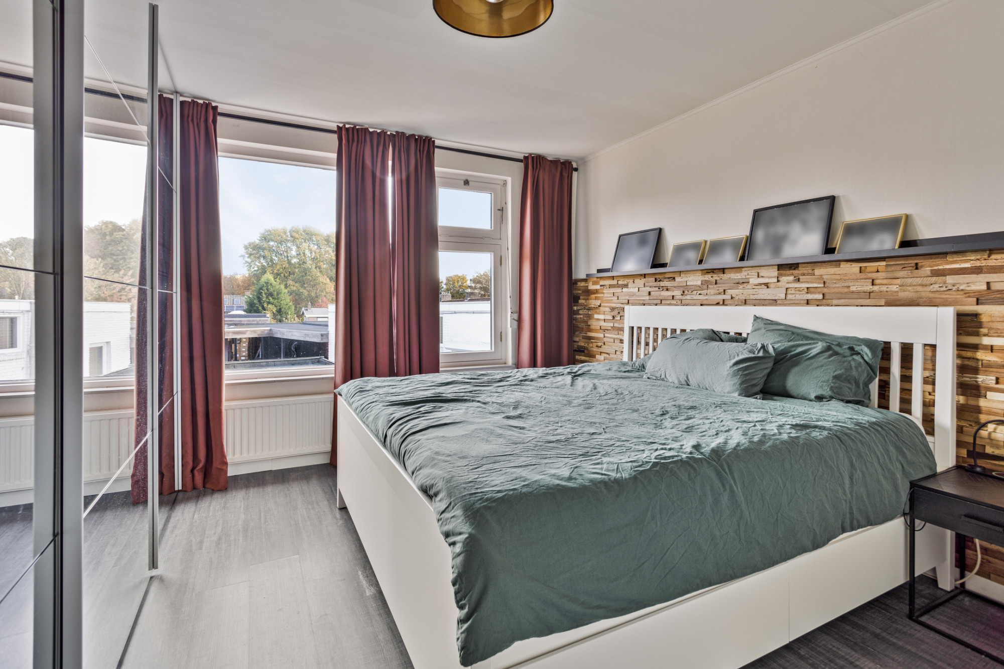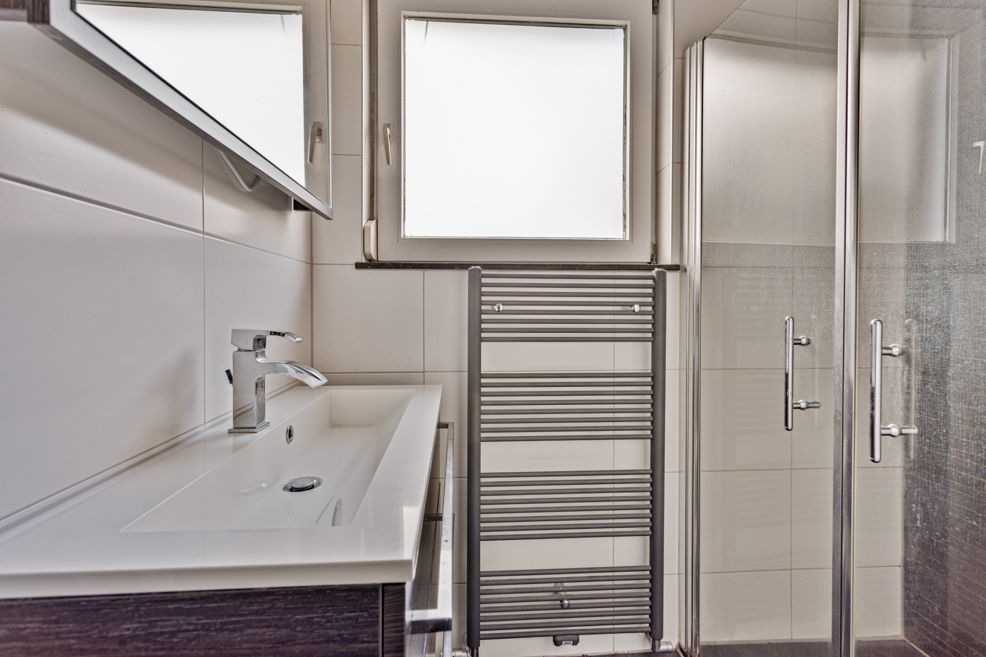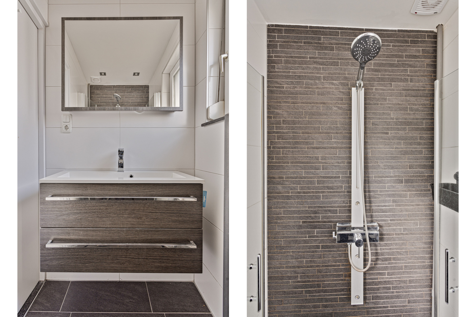 Overloop met toegang naar 3 slaapkamers. Alle slaapkamers zijn voorzien van laminaatvloer. Badkamer met inloopdouche, wastafelmeubel en plafond met inbouwverlichting.
