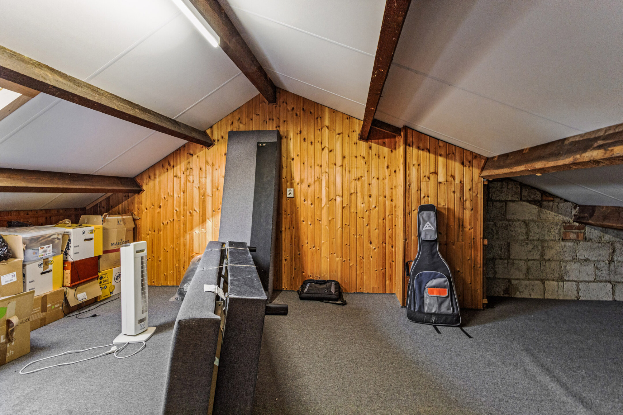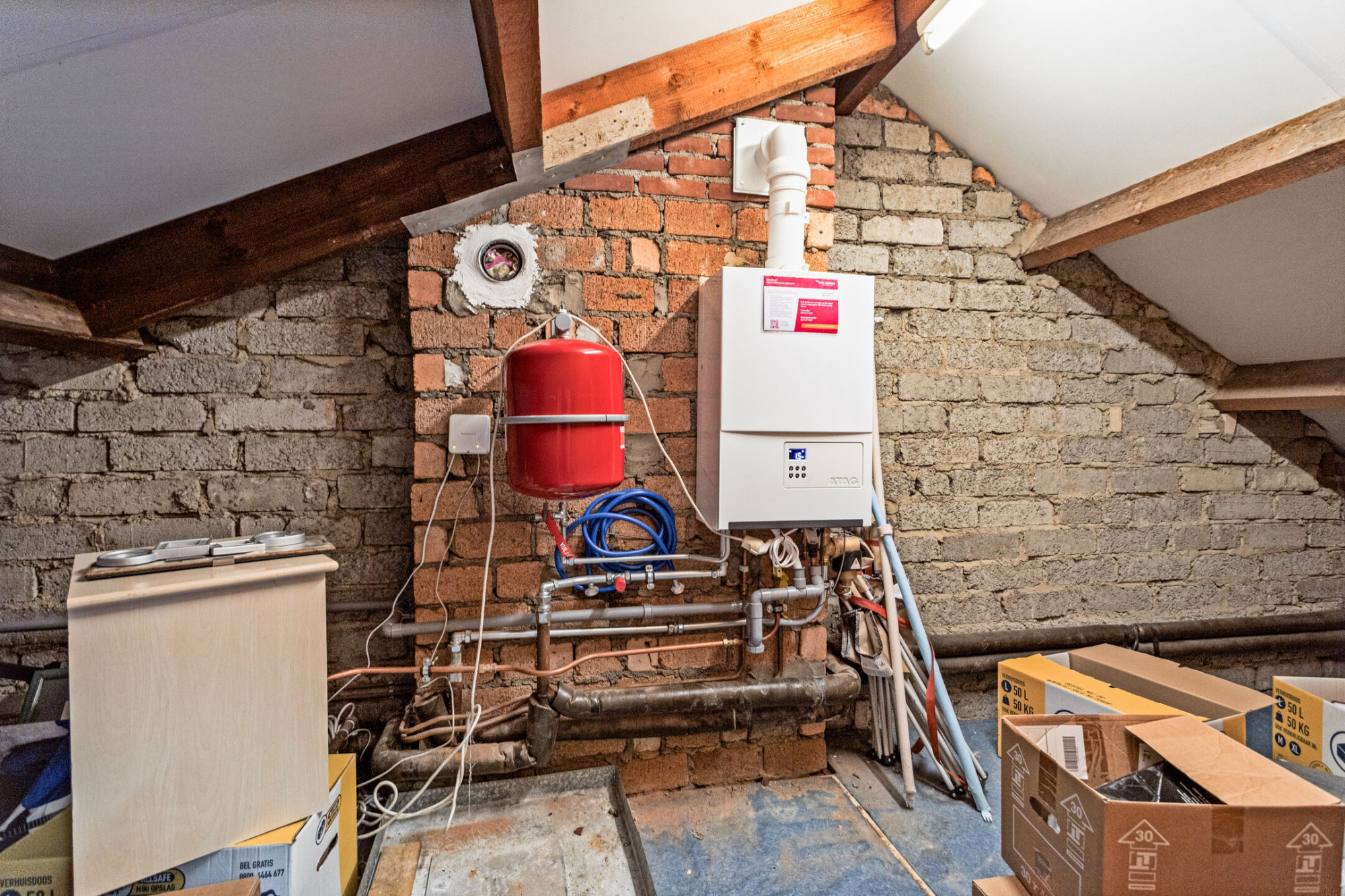 Via een vlizo trap is de ruime bergzolder te bereiken. Hier bevindt zich de combi cv installatie (Atag, 2022, huurtoestel)