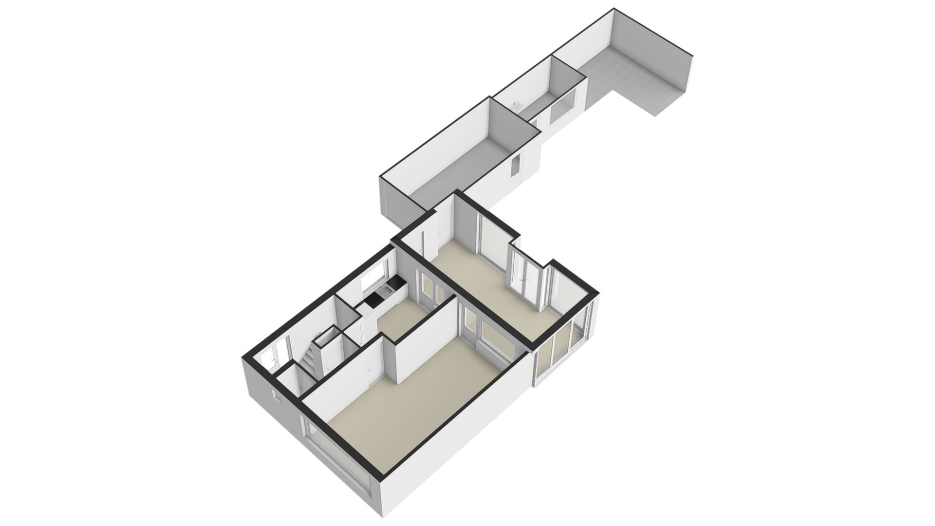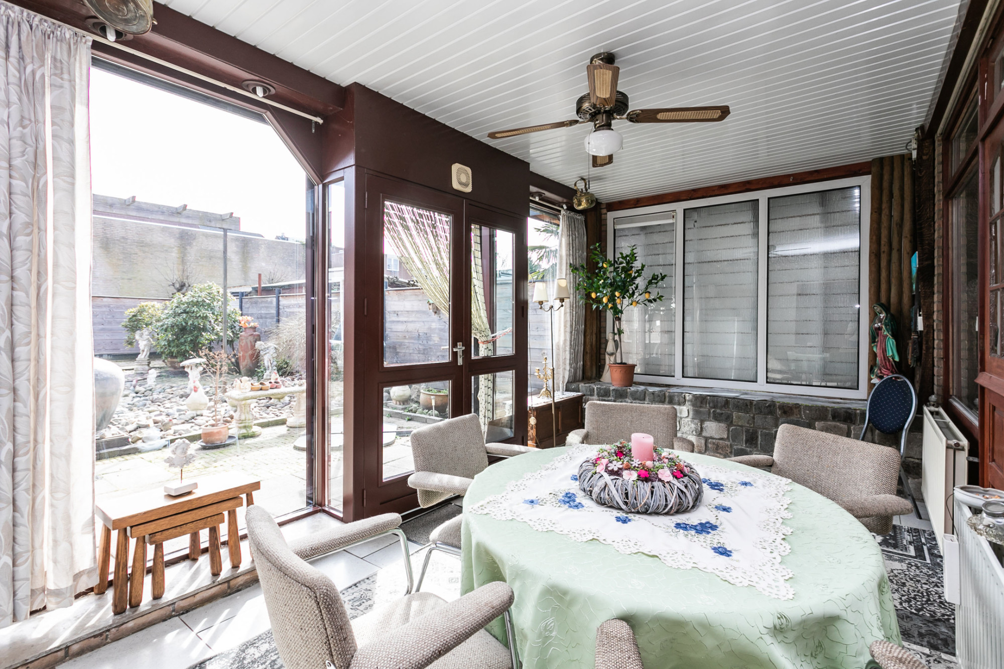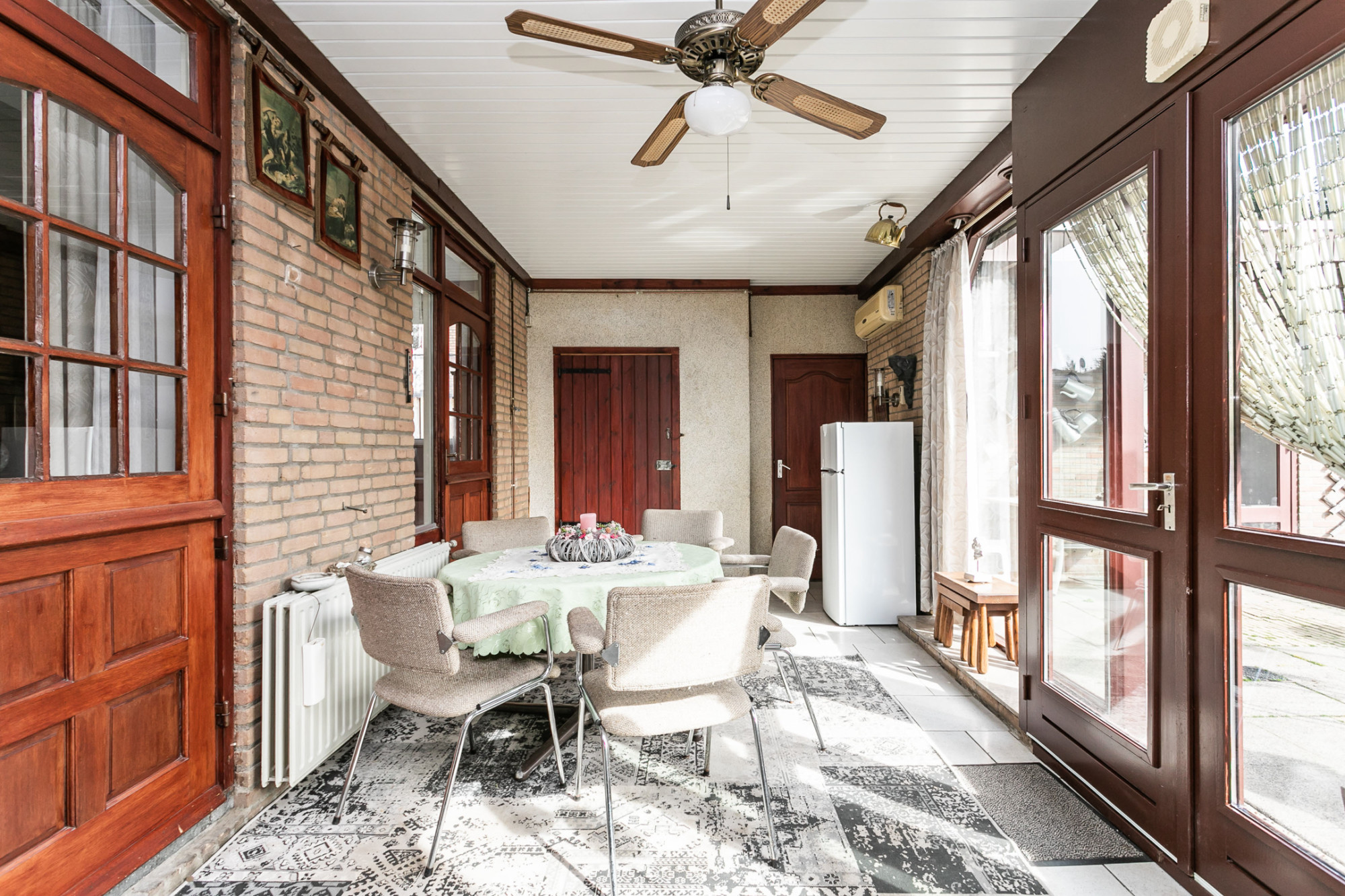 Achtergelegen serre voorzien van airconditioning en grote raampartijen met veel daglicht, doorgang naar de naastgelegen oprit en dubbele openslaande tuindeuren naar het terras aan de achterzijde.