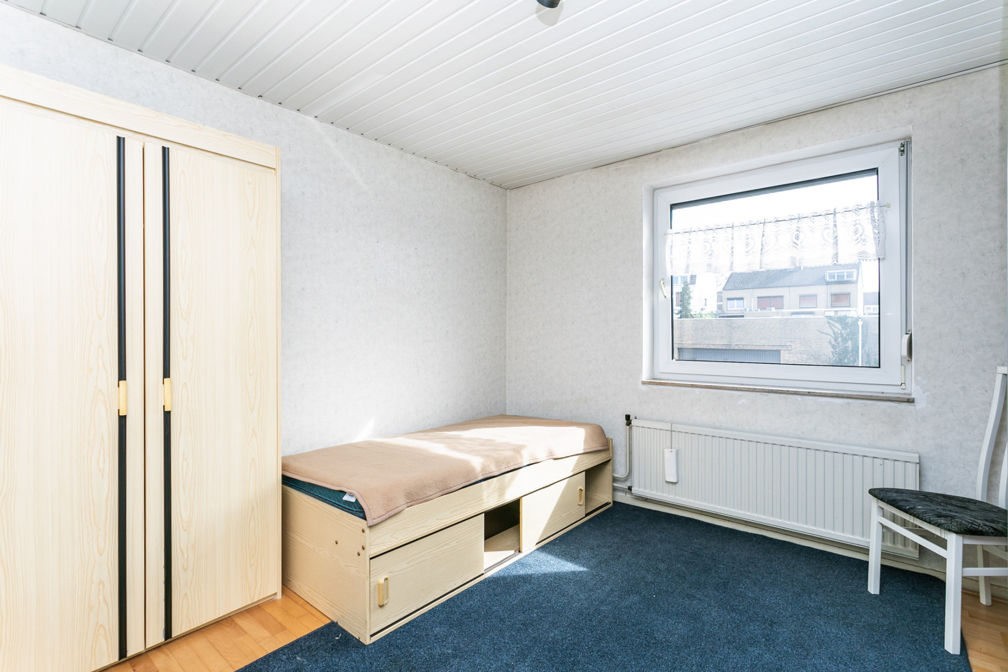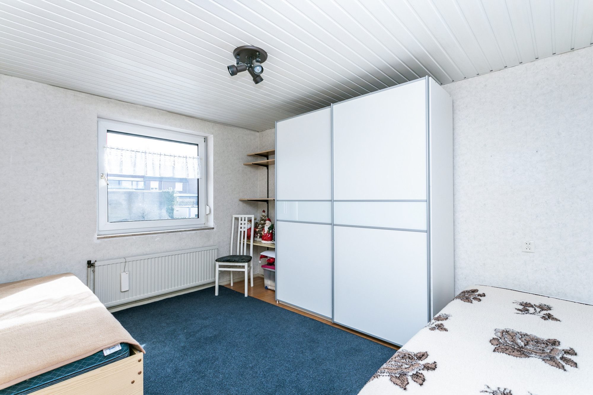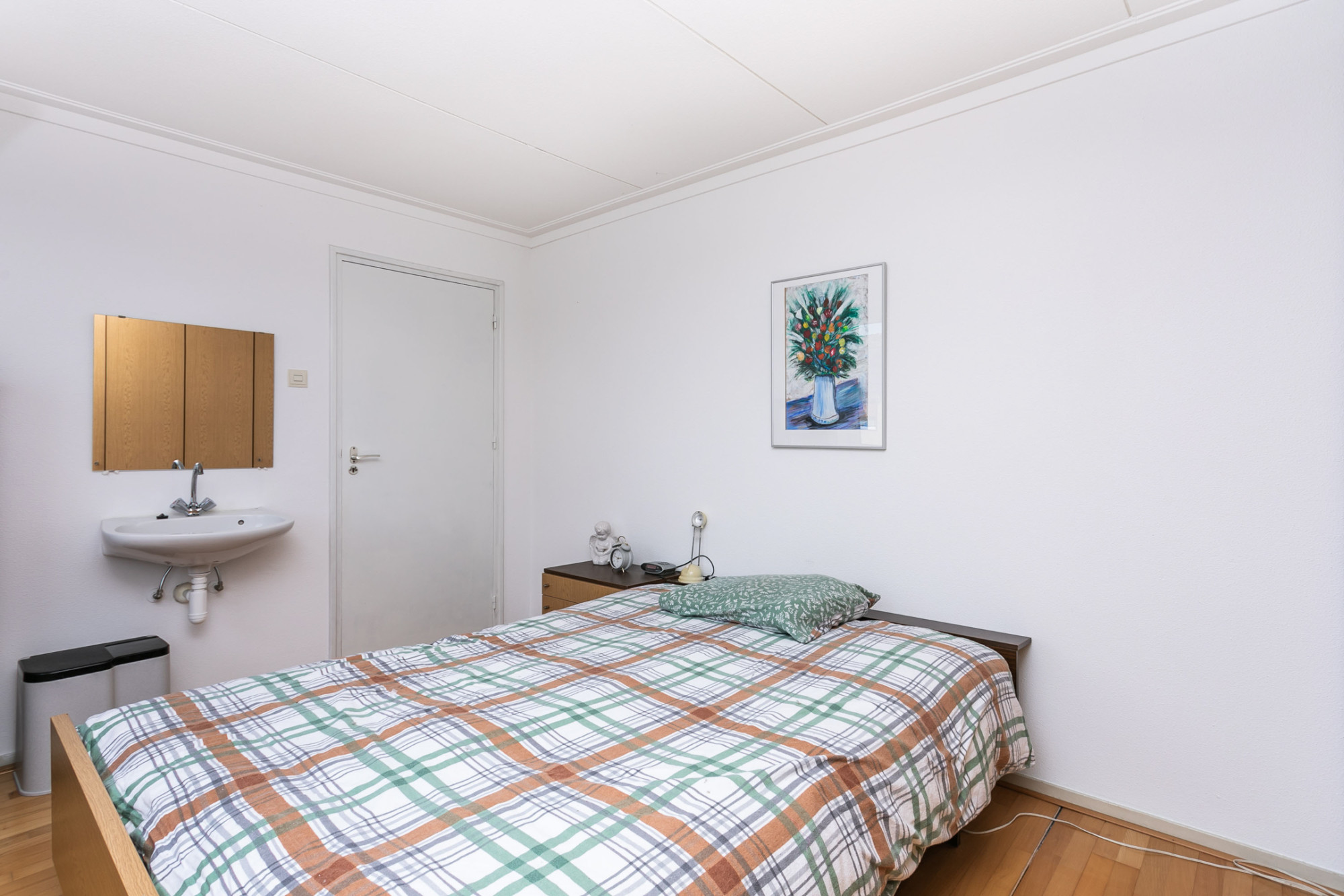 De derde slaapkamer ligt aan de rechter voorzijde en heeft een vaste wastafel.