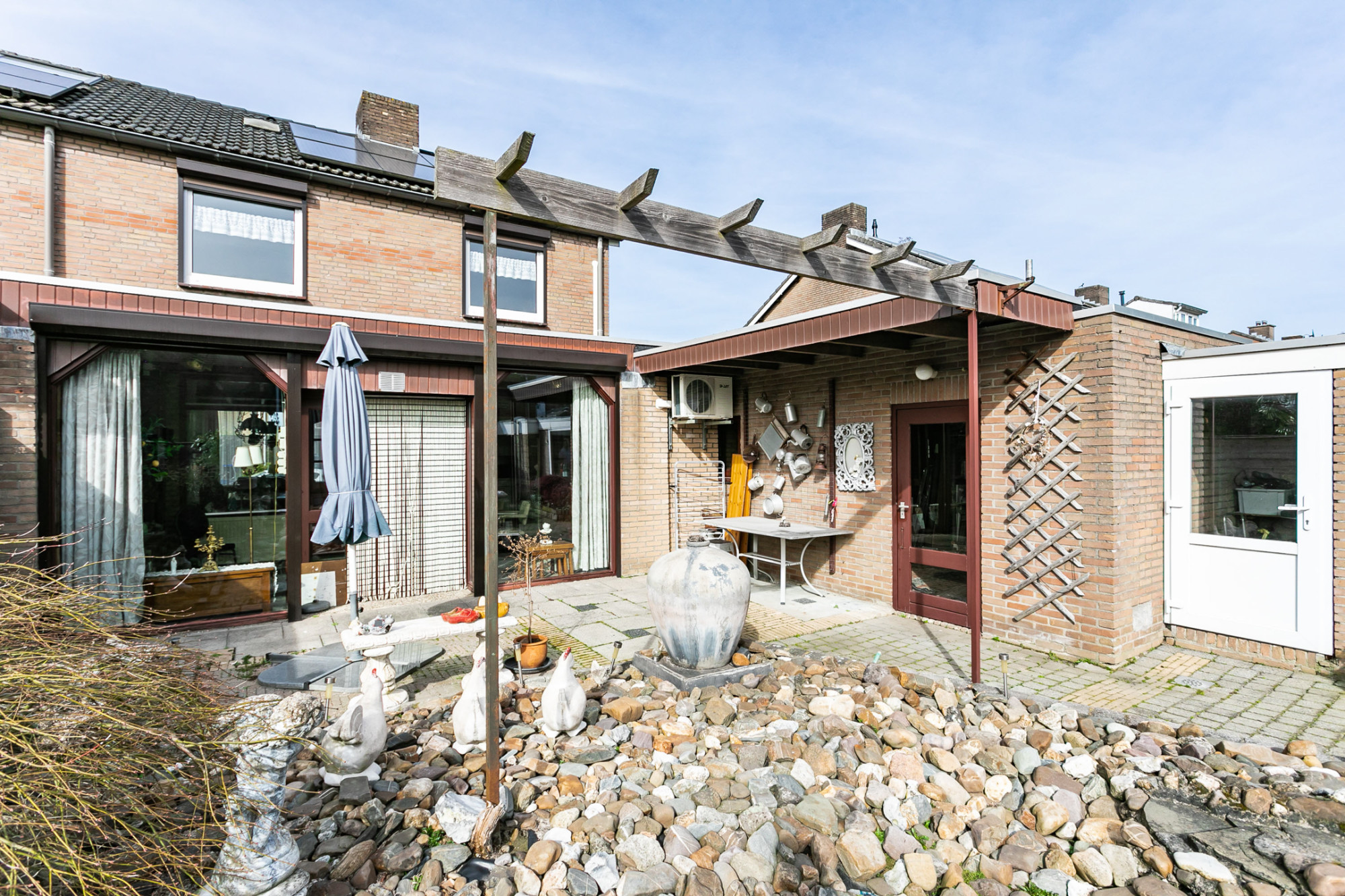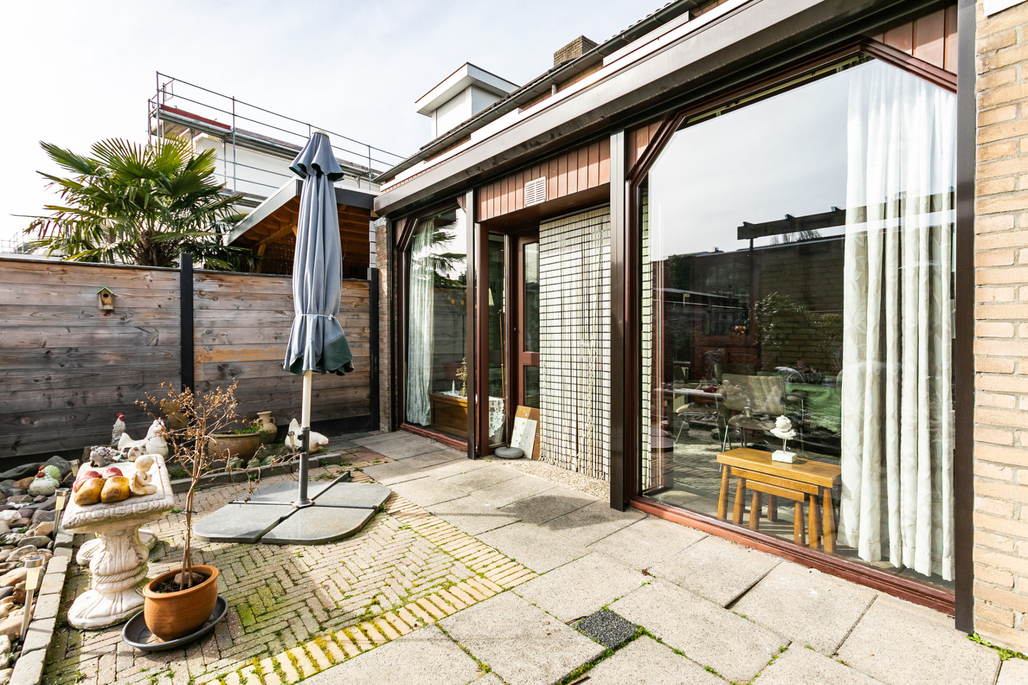 De onderhoudsvrije, op het zuiden gelegen achtertuin is een oase van rust en privacy. Geniet van meerdere terrassen, een overdekte zithoek en een praktische tuinberging.