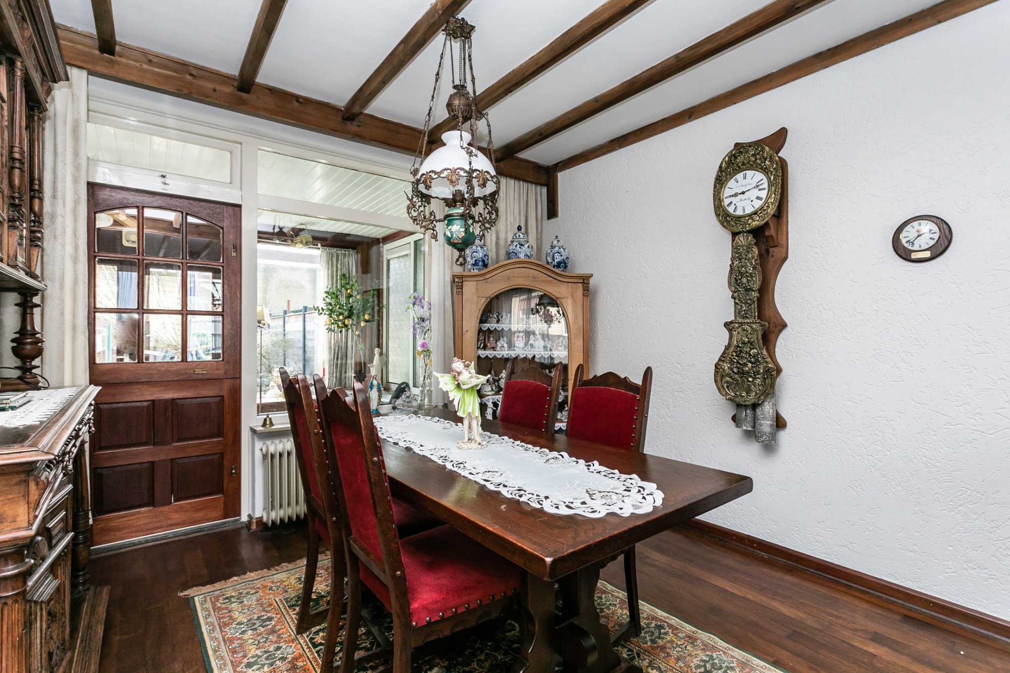 Ruime klassieke en sfeervolle woonkamer voorzien van een voorgelegen zithoek met audio-/visuele-aansluitingen en eetkamer aan de achterzijde met loopdeur naar de serre.