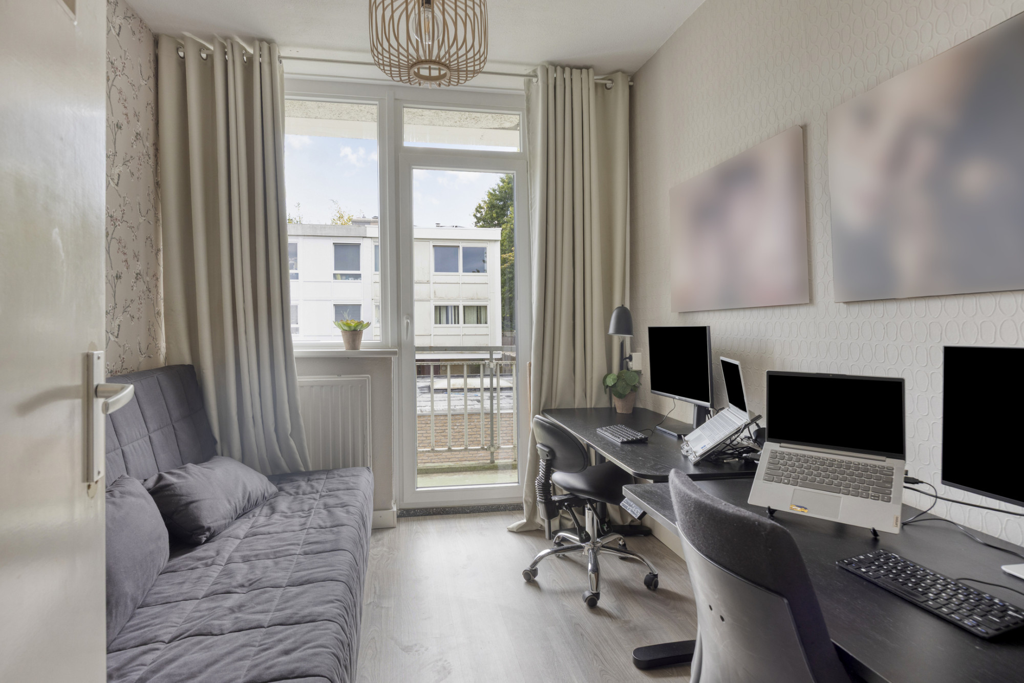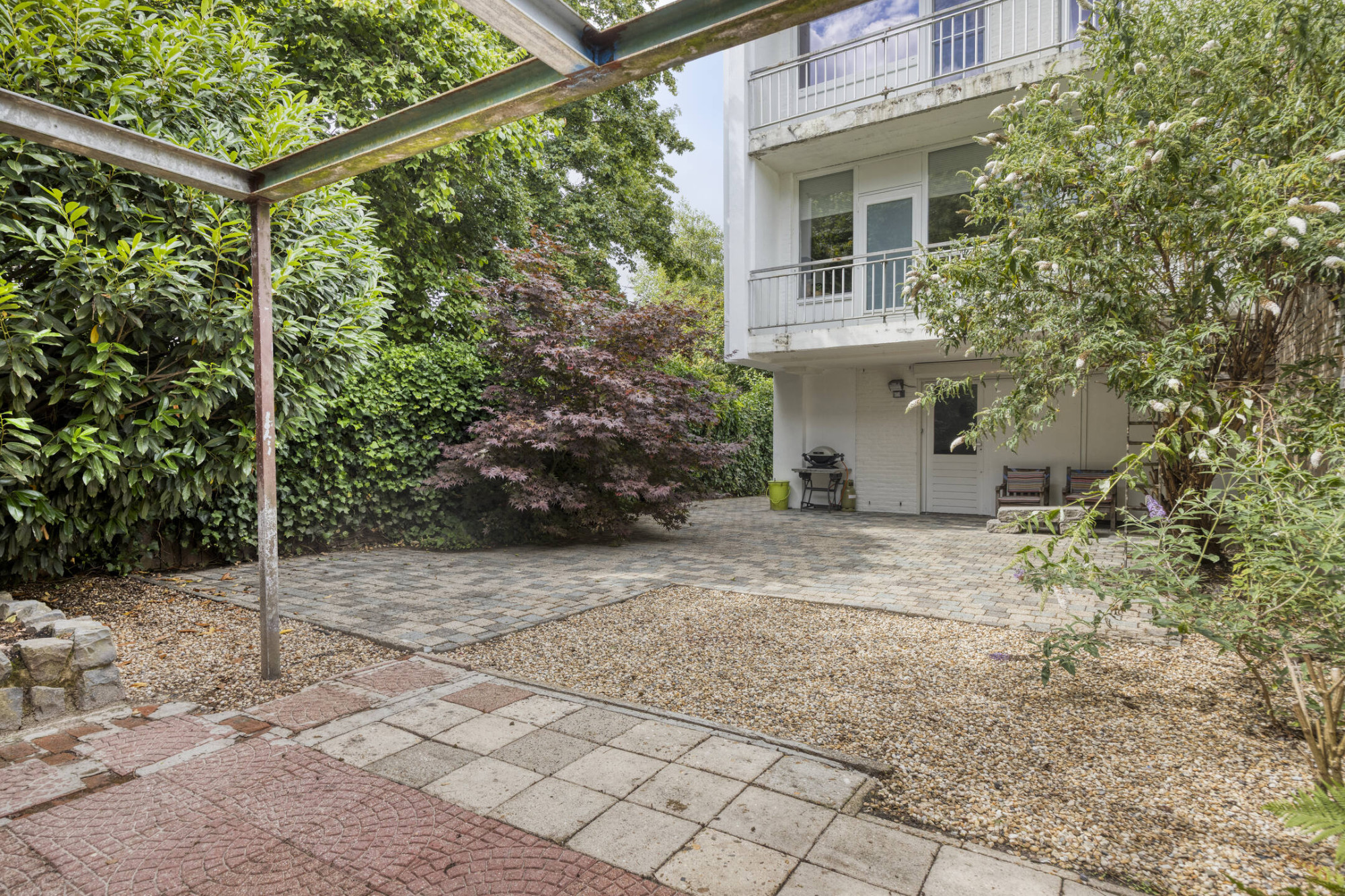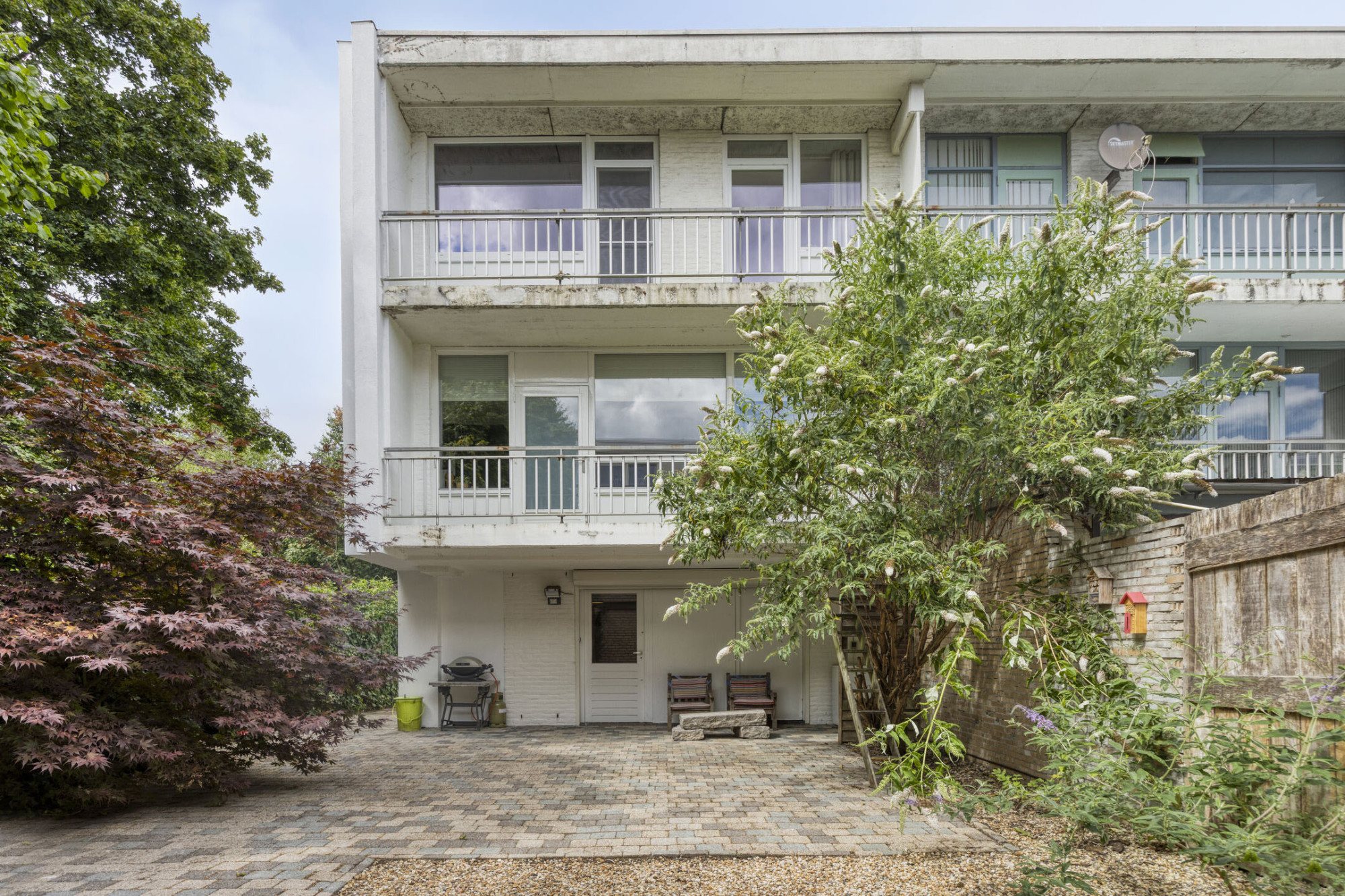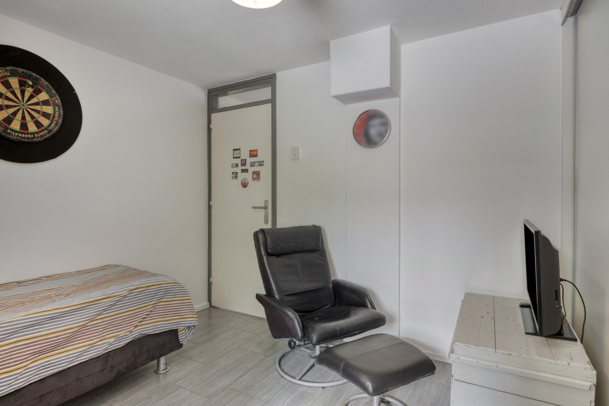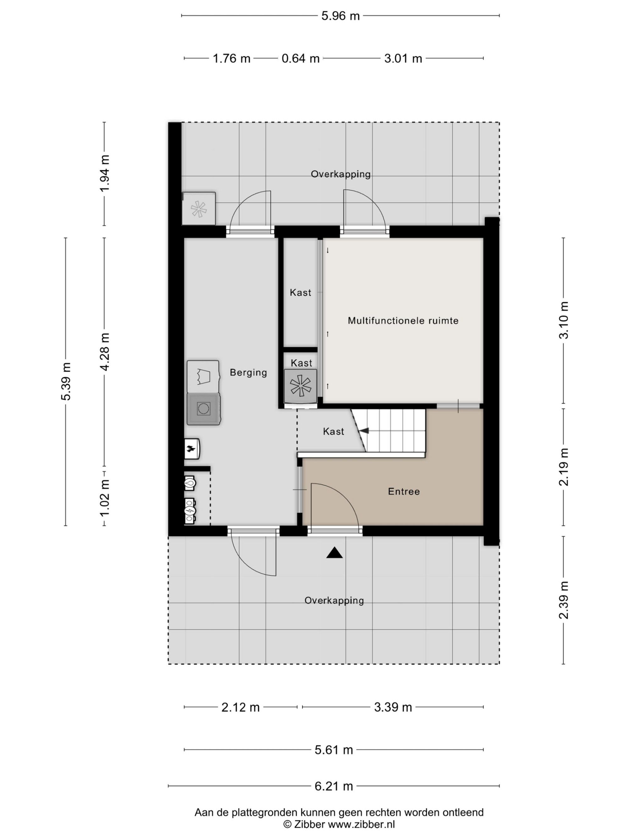 Overdekte entree. Hal met verdiepingstrap. Bergruimte met opstelplaats cv installatie (Nefit HR, 2018 eigendom) en wasapparatuur. Werk/logeerkamer met inbouwkastenwand en toegangsdeur naar de achtertuin. De achtertuin is nagenoeg geheel betegeld en beschikt over een terras en een zij-ingang naar de voorzijde van de woning.