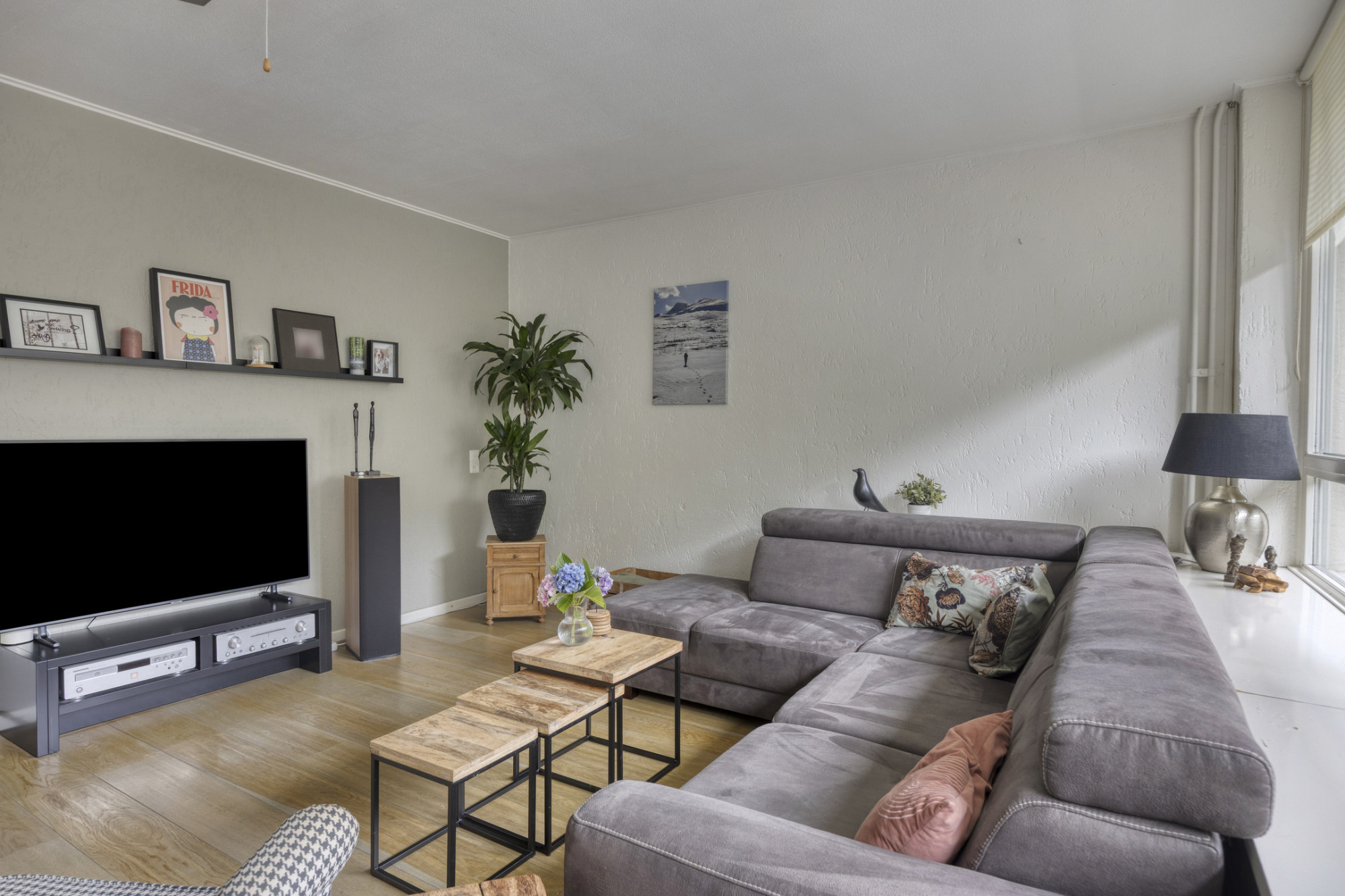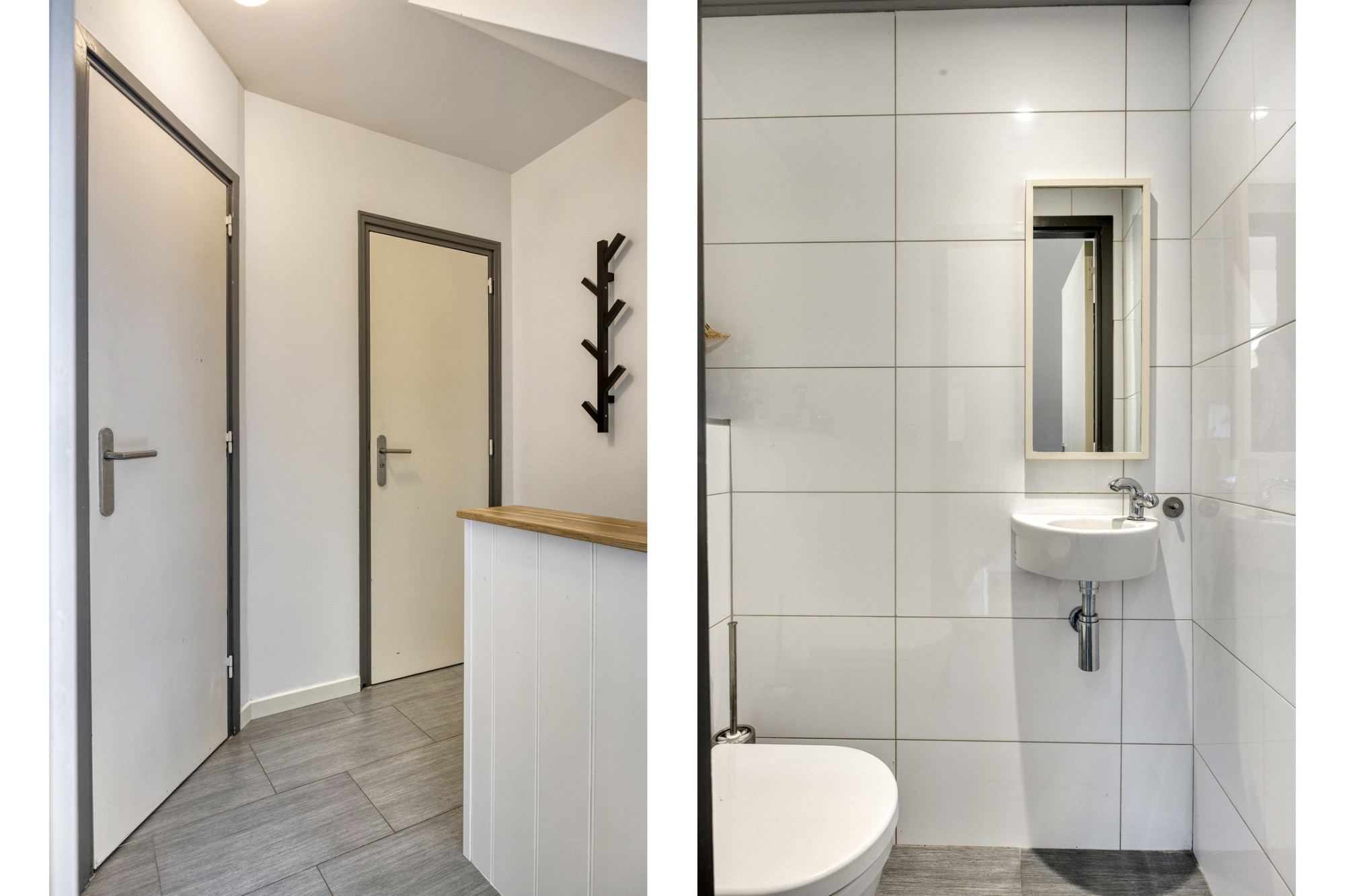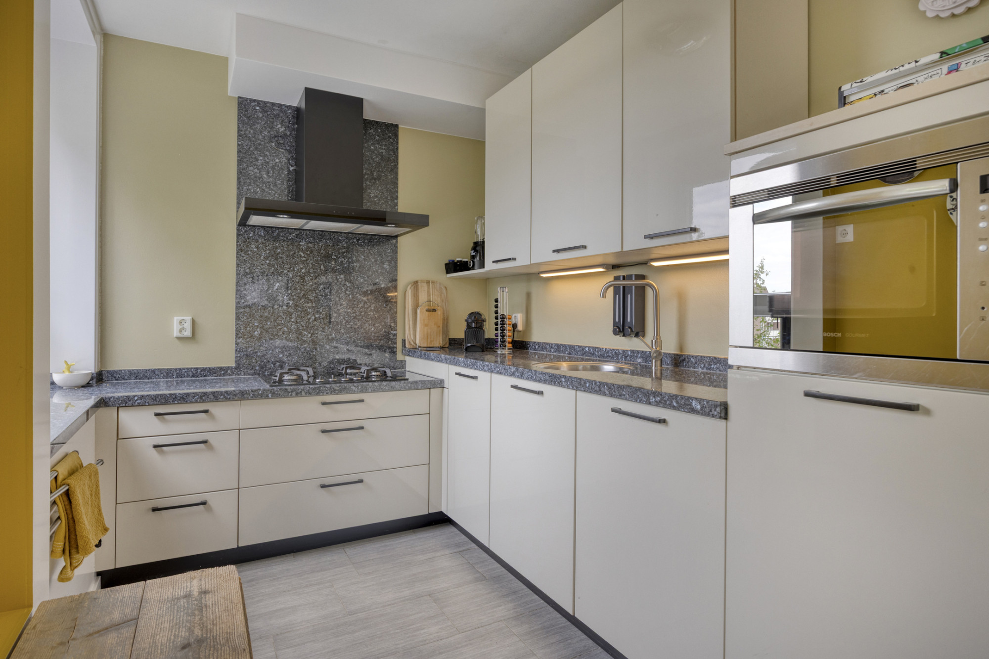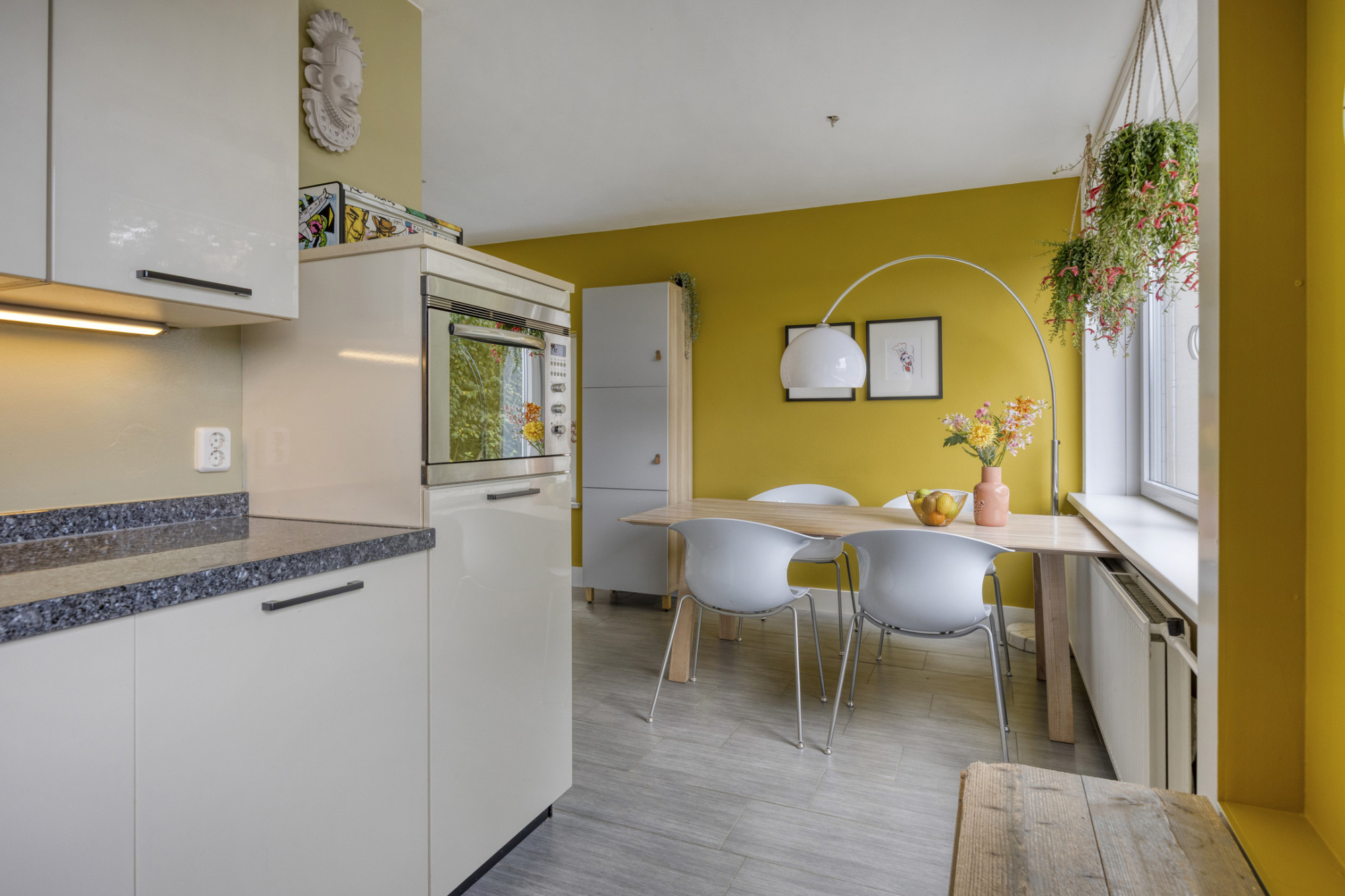 Overloop. Toiletruimte met zwevend toilet en fonteintje. Ruime eetkeuken voorzien van een moderne keukeninstallatie in hoekopstelling met diverse inbouwapparatuur. Woonkamer met toegang naar balkon.