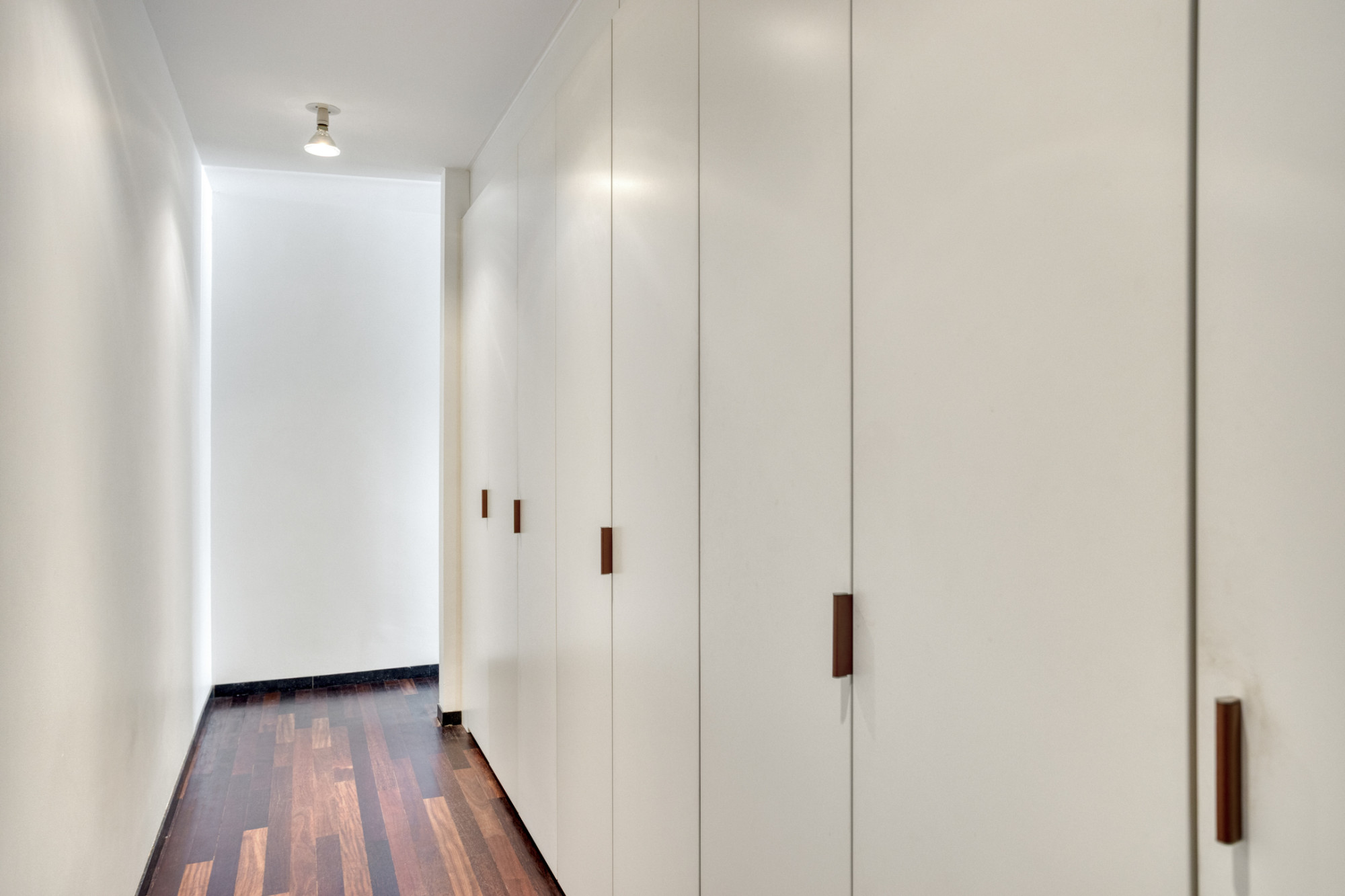 Slaapkamer 1 (5.87 x 5.75 m) met walk-in closet met vaste kastenwand.