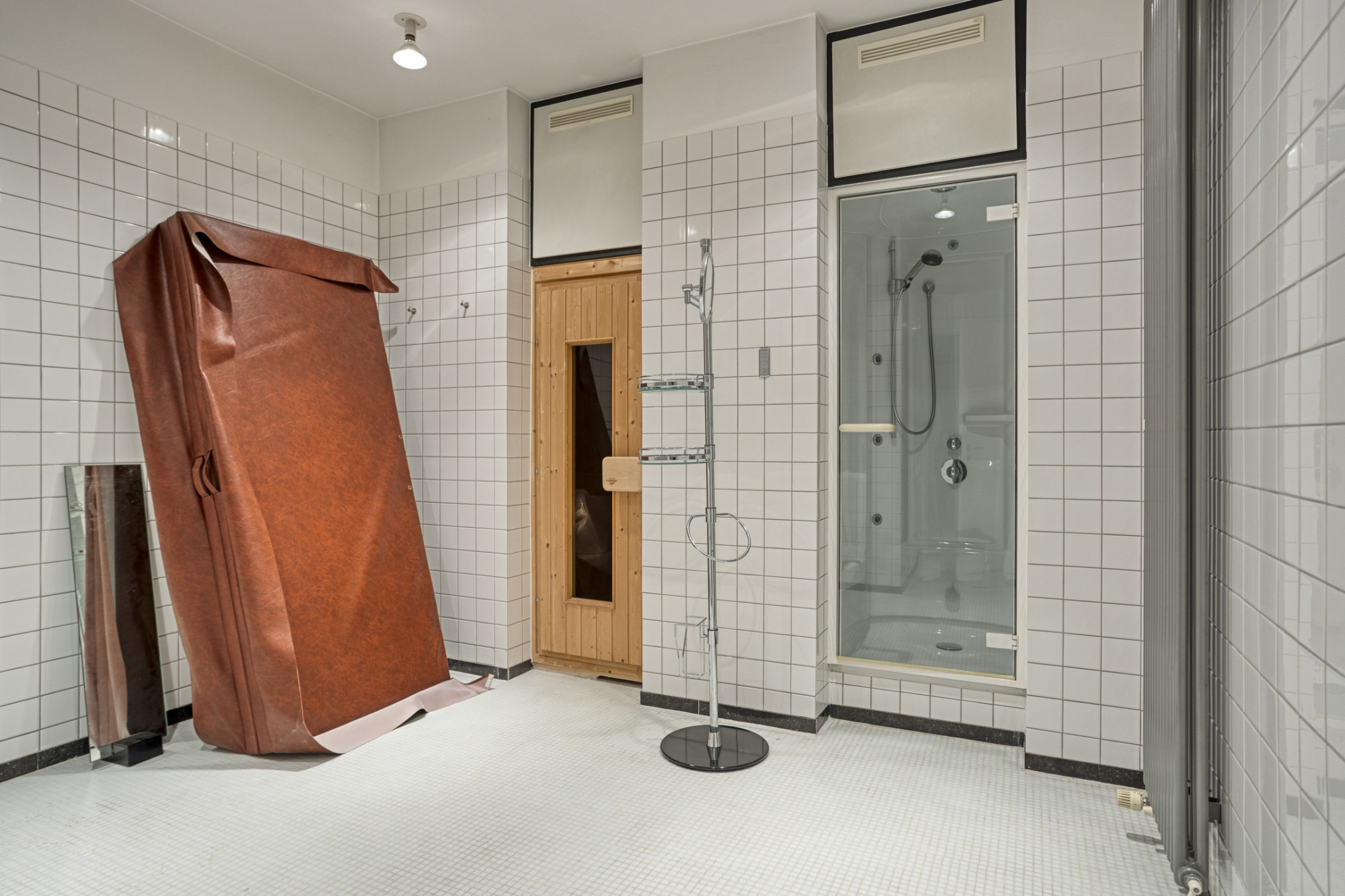 Complete professionele wellness ruimte (5.87 x 3.42 m) voorzien van sauna, stoom-douche en ruime jacuzzi met zit en liggedeelte.