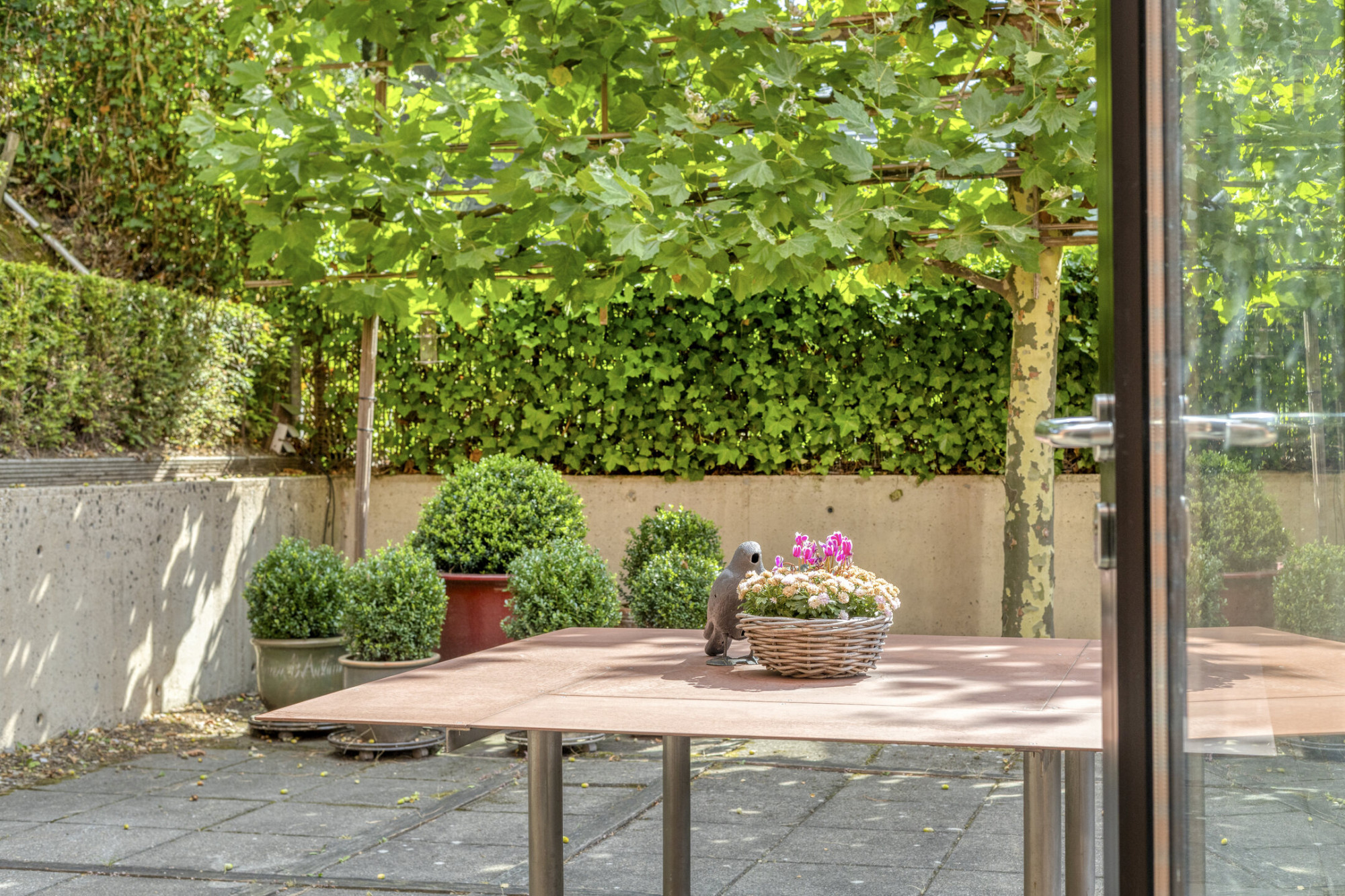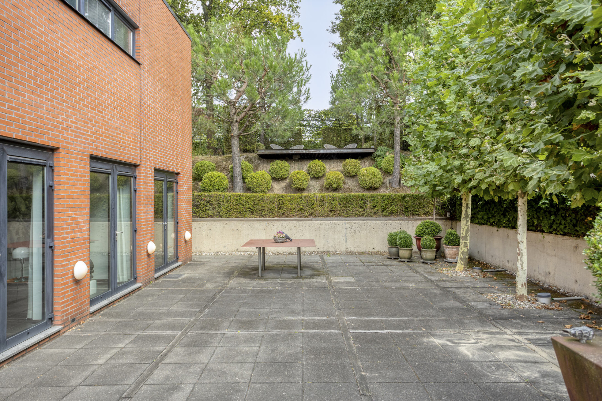 De woning biedt een prachtig samenspel tussen privacy en openheid. Het strak aangelegde perceel met groene accenten sluit naadloos aan bij de architectuur van het huis en zorgt voor een rustige, private leefomgeving.