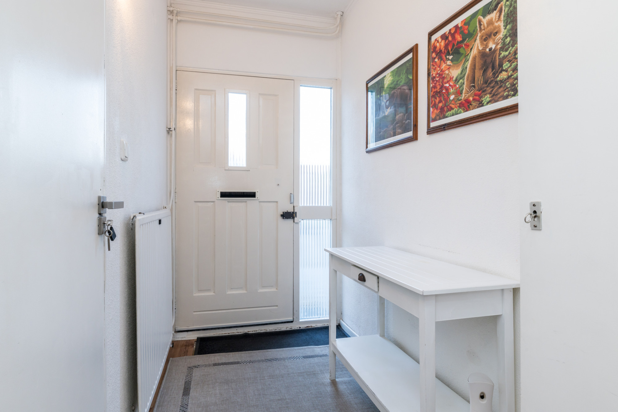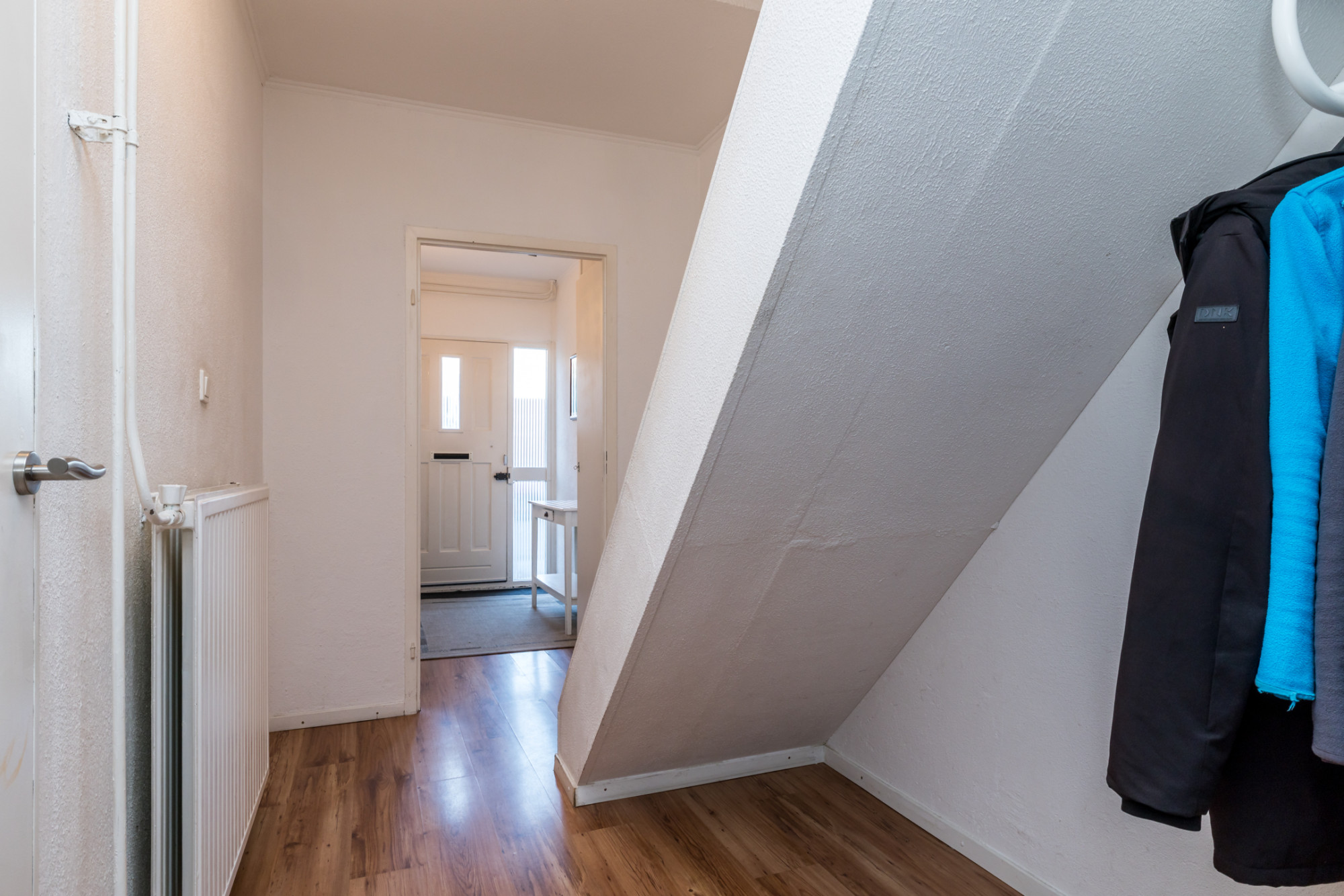 Middels oprit te bereiken entree. De entree biedt toegang tot inpandige garage (5,23 m x 2,87 m), meterkast en hal. Vanuit de hal heeft men toegang tot berging (alwaar aansluiting voor witgoed apparatuur en cv-ketel), toiletruimte en hobbykamer. De hobbykamer (3,29 m x 3,03 m) is voor diverse doeleinde geschikt, o.a. kantoor/ praktijk aan huis.