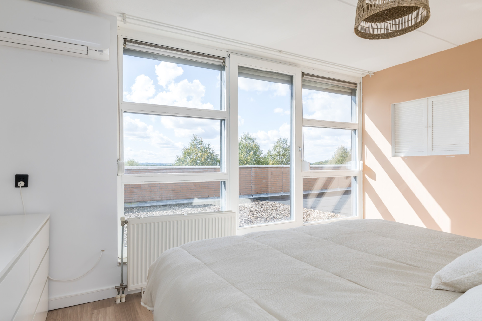 Vaste trap met toegang tot slaapkamer met airco en toegang tot dakterras achterzijde.