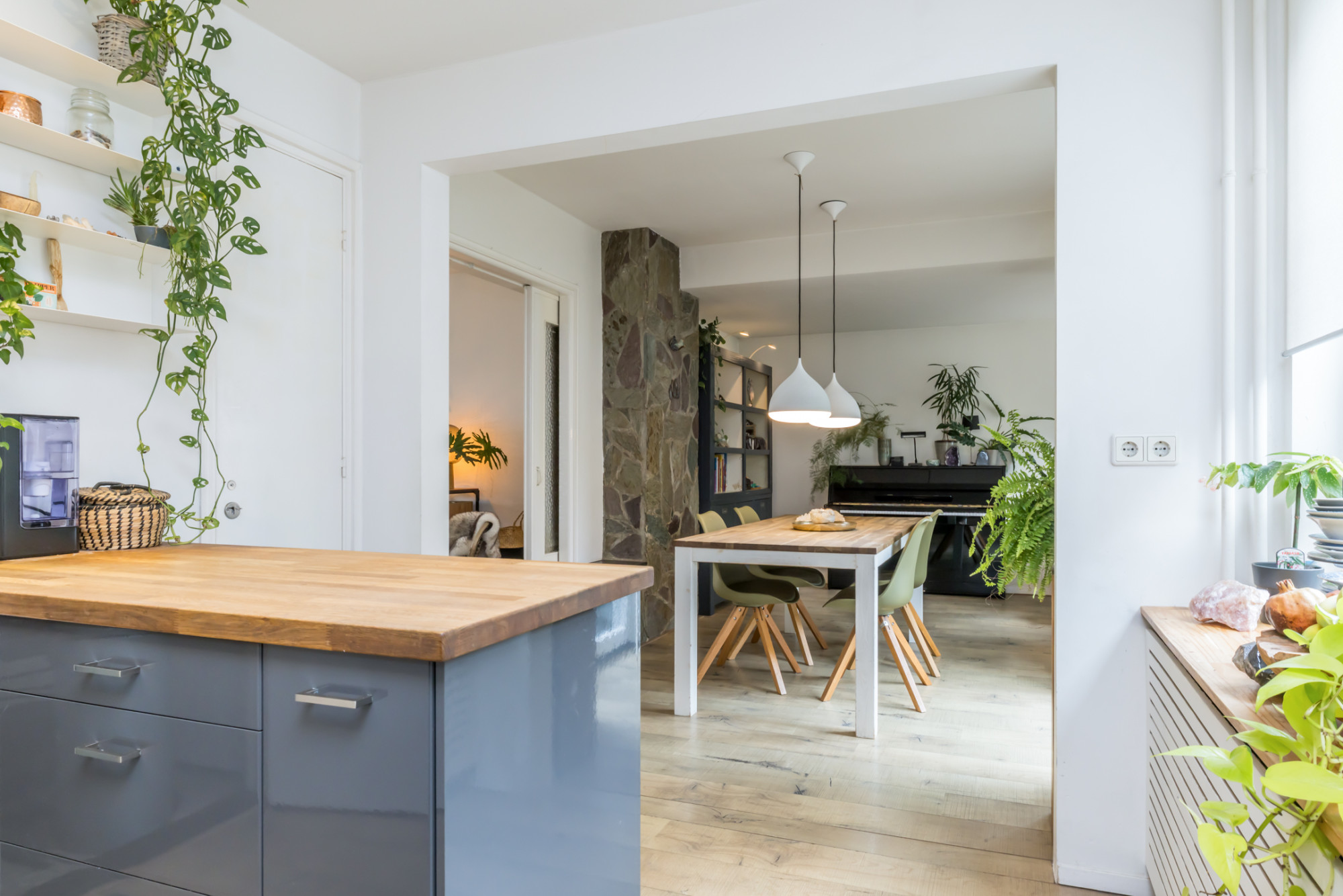 Middels voortuin te bereiken hal-entree, de hal v.v. authentieke tegelvloer biedt toegang tot woonkamer, leefkeuken en deur naar kelder. De aan de voorzijde gelegen woonkamer (4,38 m x 3,70 m) biedt middels en suite deuren toegang tot de zit/ eetkamer. De riante zit/ eetkamer heeft een open verbinding met de moderne keuken en dubbele openslaande deuren naar tuin. Open keuken (3,72 m x 2,62 m) is v.v. navolgende inbouwapparatuur: koelkast, vriezer, combi-oven, vaatwasser, 4-pits inductiekookplaat en afzuigkap. De kleine tussenhal te bereiken vanuit de keuken biedt toegang tot moderne toiletruimte, deur naar tuin en bijkeuken (3,18 m x 2,00 m) alwaar aansluitingen voor witgoedapparatuur.