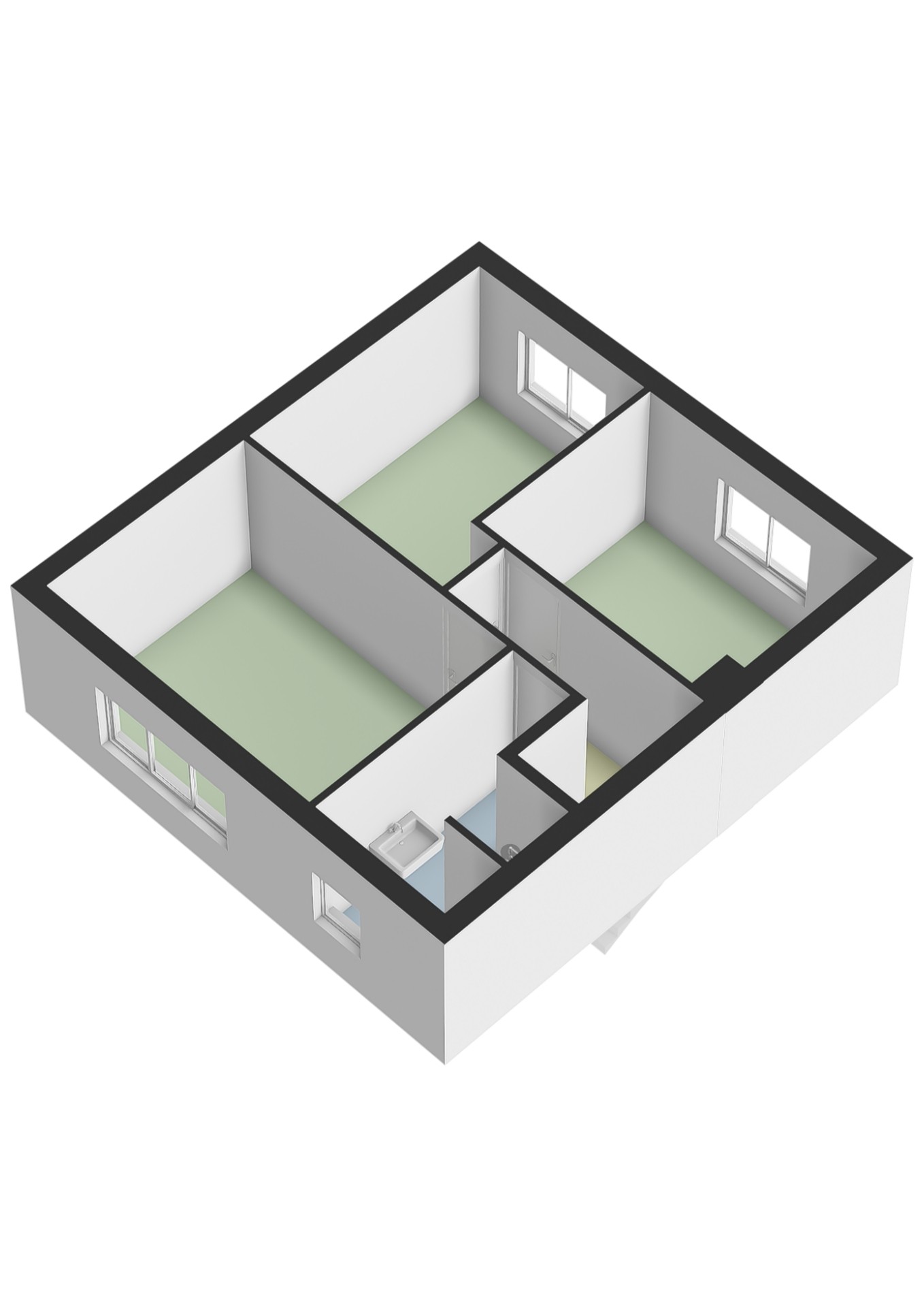 De overloop biedt toegang tot 3 slaapkamers en badkamer. Slaapkamer I (4,38 m x 3,13 m) v.v. airconditioning en vaste wastafel is aan de voorzijde gelegen. Slaapkamer II (3,86 m x 2,76 m) & slaapkamer III (3,64 m x 2,85 m) zijn beide aan de achterzijde gelegen. De badkamer (3,07 m /1,94 m x 1,97 m) is v.v. een vaste wastafel, 2e toilet en douche.
