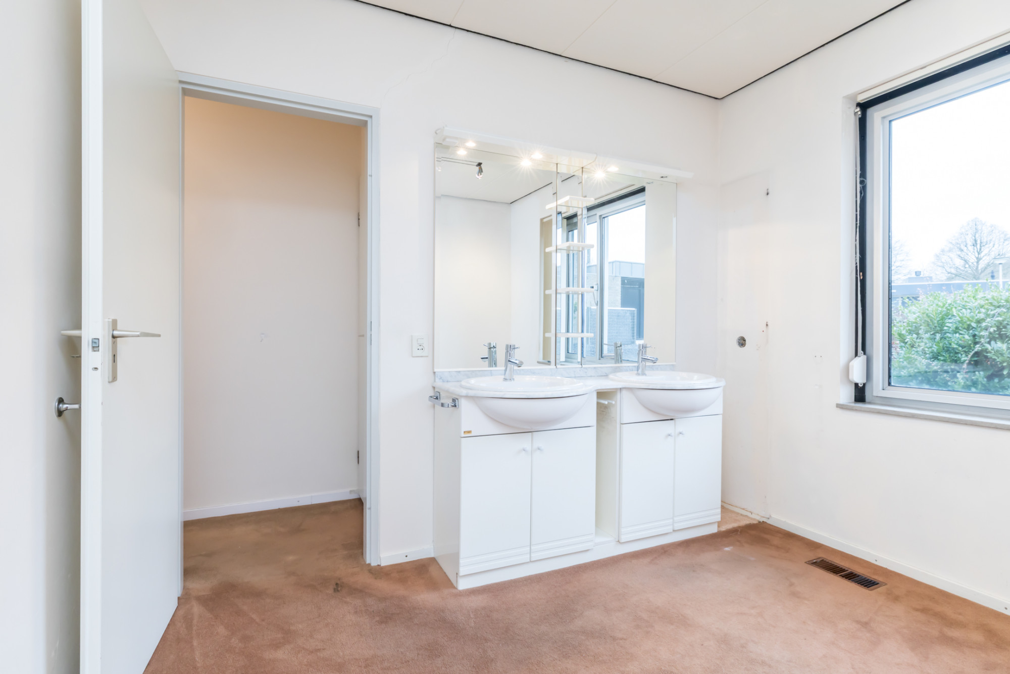Slaapkamer I (3,44 m x 3,09 m) is vanuit de hal-entree te bereiken en biedt toegang tot badkamerensuite (2,52 m x 1,71 m), v.v. ligbad en vaste wastafel.