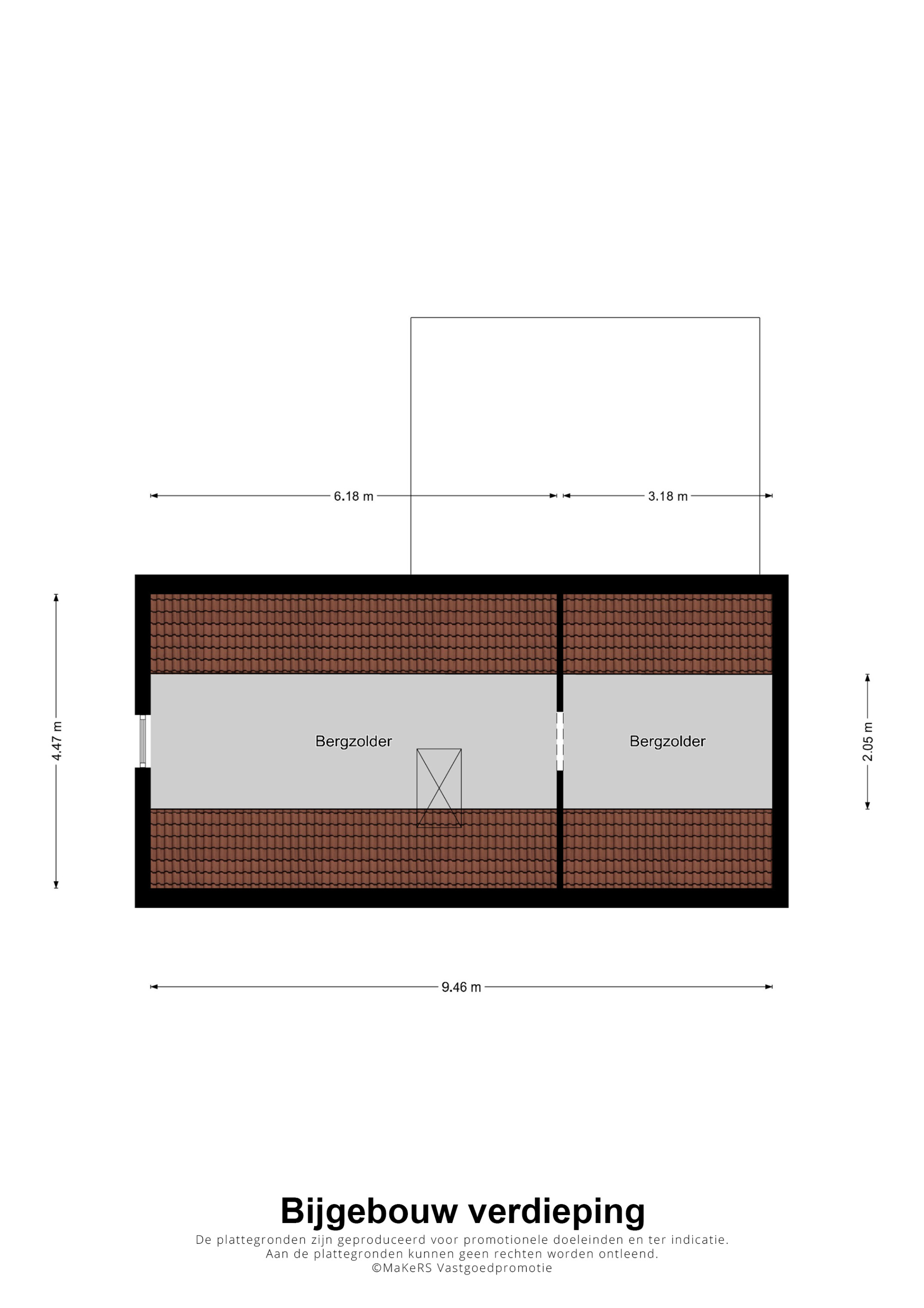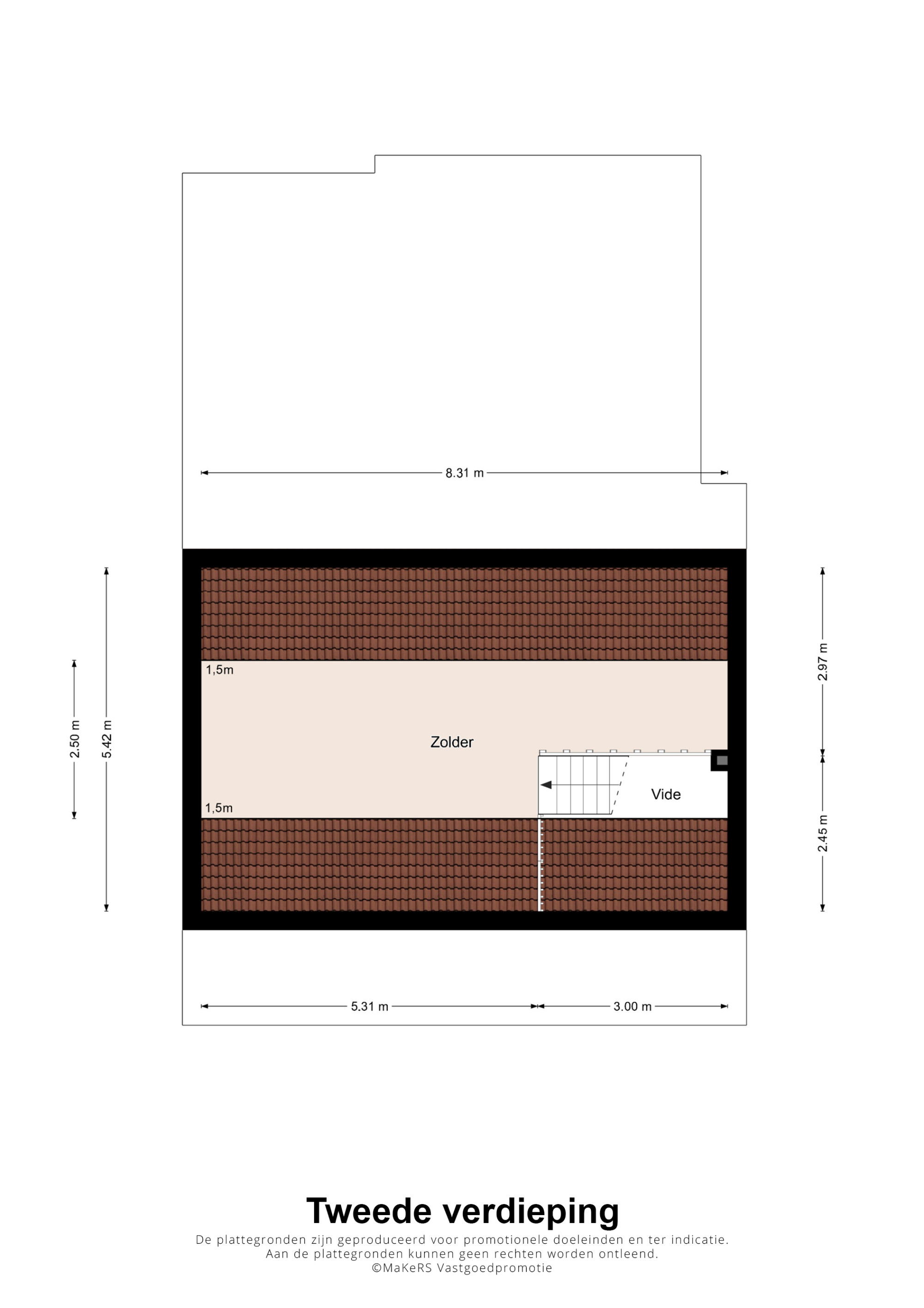 Zolderruimte met een goede nokhoogte welke te bereiken is middels een vaste trap vanuit een slaapkamer, waardoor er veel extra bergruimte beschikbaar is.