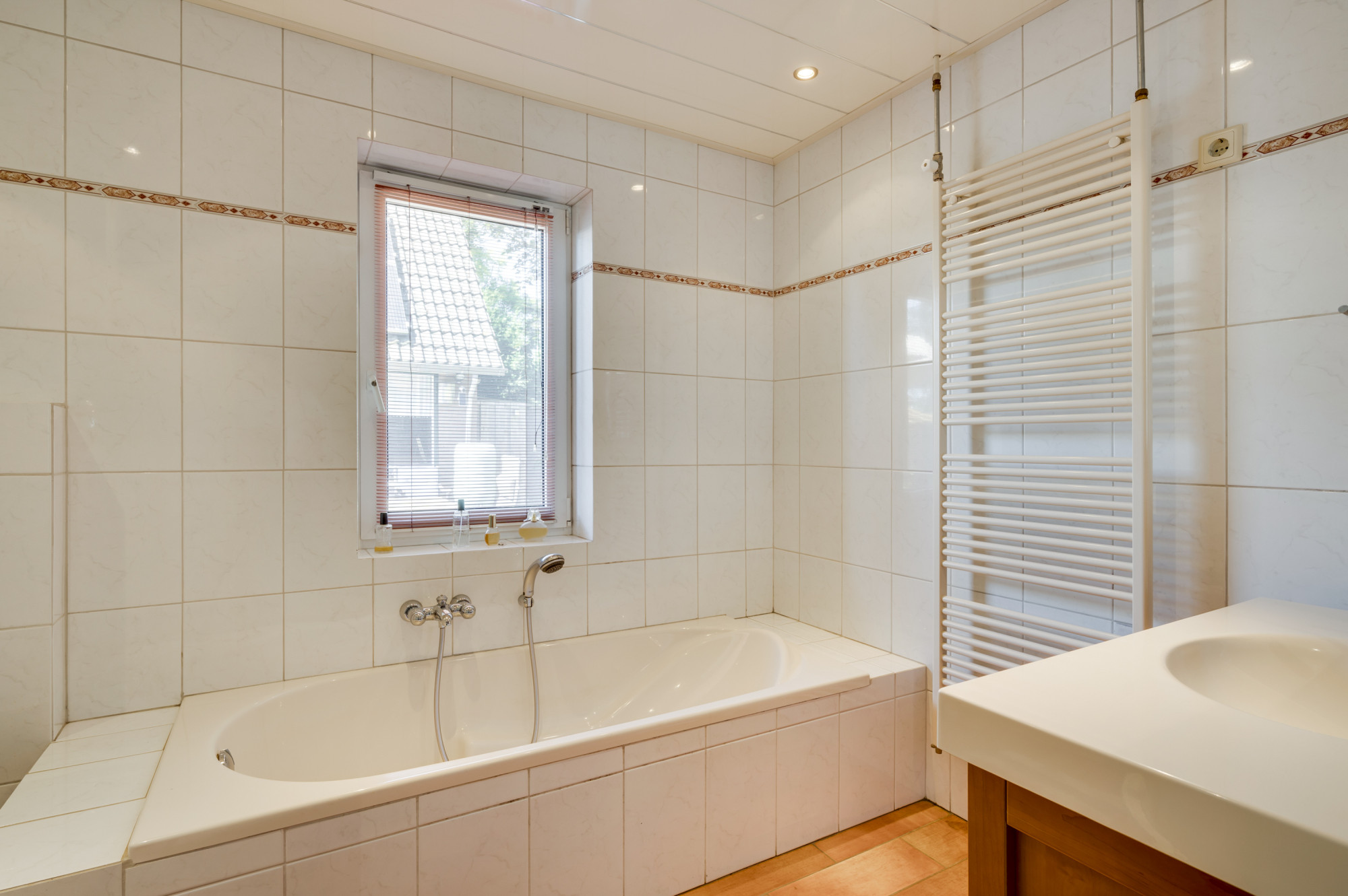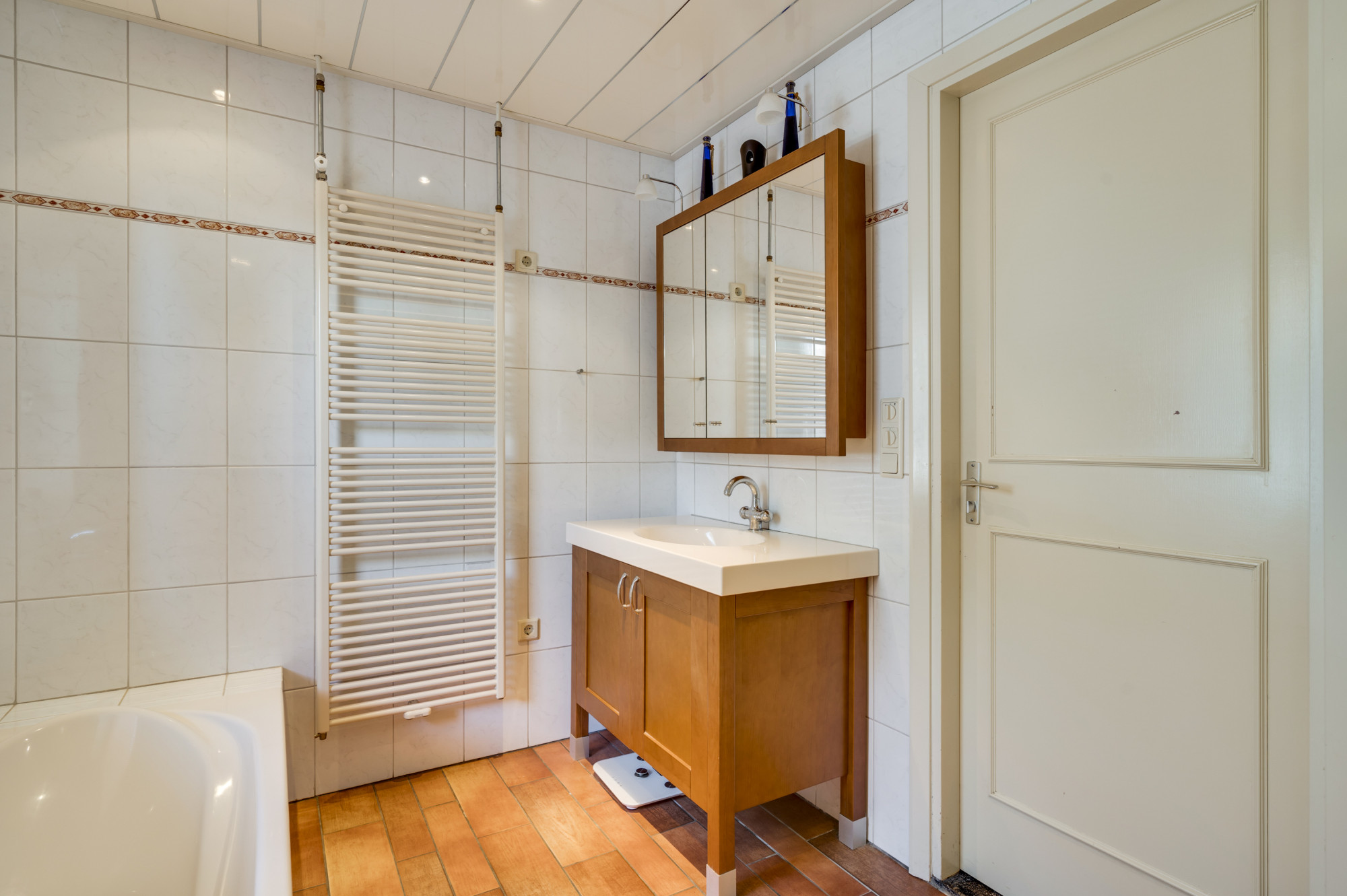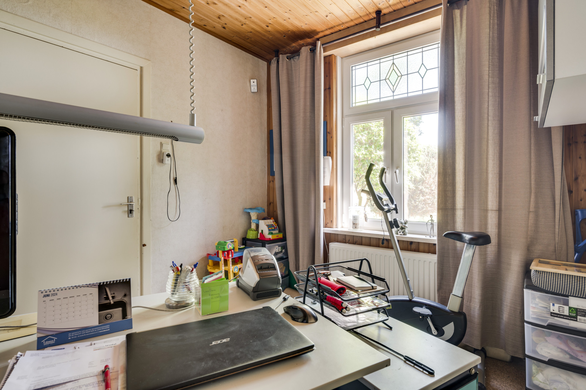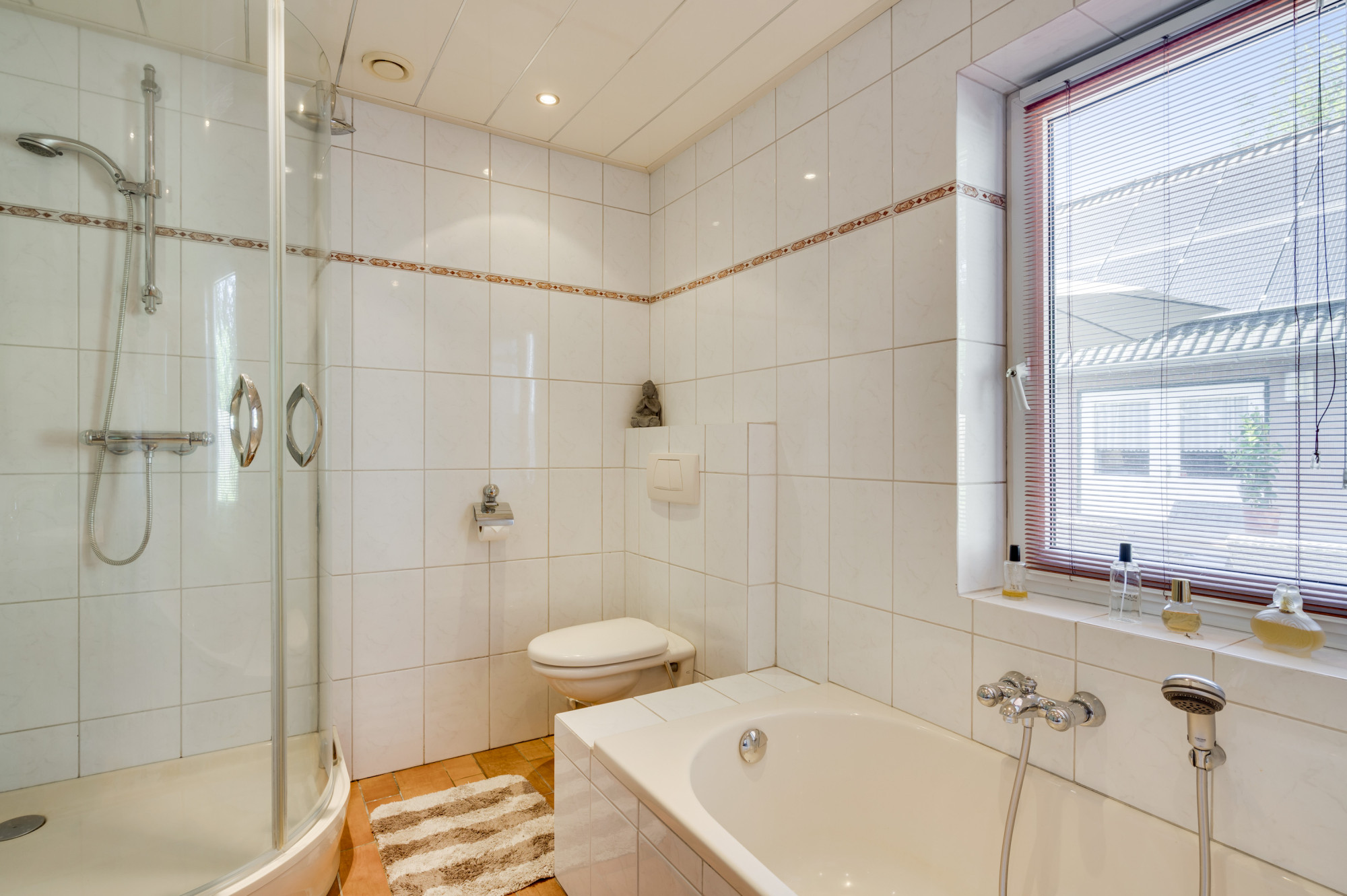 Bij binnenkomst wordt u begroet door een hal (onder de vloerbedekking ligt nog een authentieke tegelvloer). De hal biedt toegang tot de lichte woonkamer met zitkamer, waar grote ramen voor veel daglicht zorgen en een prachtige houten vloer de ruimte extra sfeer geeft. De woonkeuken is uitgerust met een combinatie in hoekopstelling met inbouwapparatuur zoals een kookplaat, afzuigkap, magnetron, oven, koelkast en een vaatwasser. De aangrenzende eetkamer biedt voldoende plek voor een royale eettafel om heerlijk te tafelen en heeft een loopdeur naar de achtertuin, waardoor binnen en buiten naadloos in elkaar overgaan. Daarnaast vindt u op de begane grond een multifunctionele extra kamer, momenteel in gebruik als kantoor maar ook ideaal als gelijkvloerse hobby/slaap/speelkamer. Een tussenhal geeft toegang tot de praktische bijkeuken met witgoedaansluitingen en de opstelling van de cv-ketel (Remeha Quinta HR, eigendom, ca. 2004). Verder is er een gelijkvloerse geheel betegelde badkamer met ligbad, douche, zwevend toilet en wastafelmeubel. Vanuit de bijkeuken bereikt u ook een gastentoilet met fonteintje en de achtertuin.
