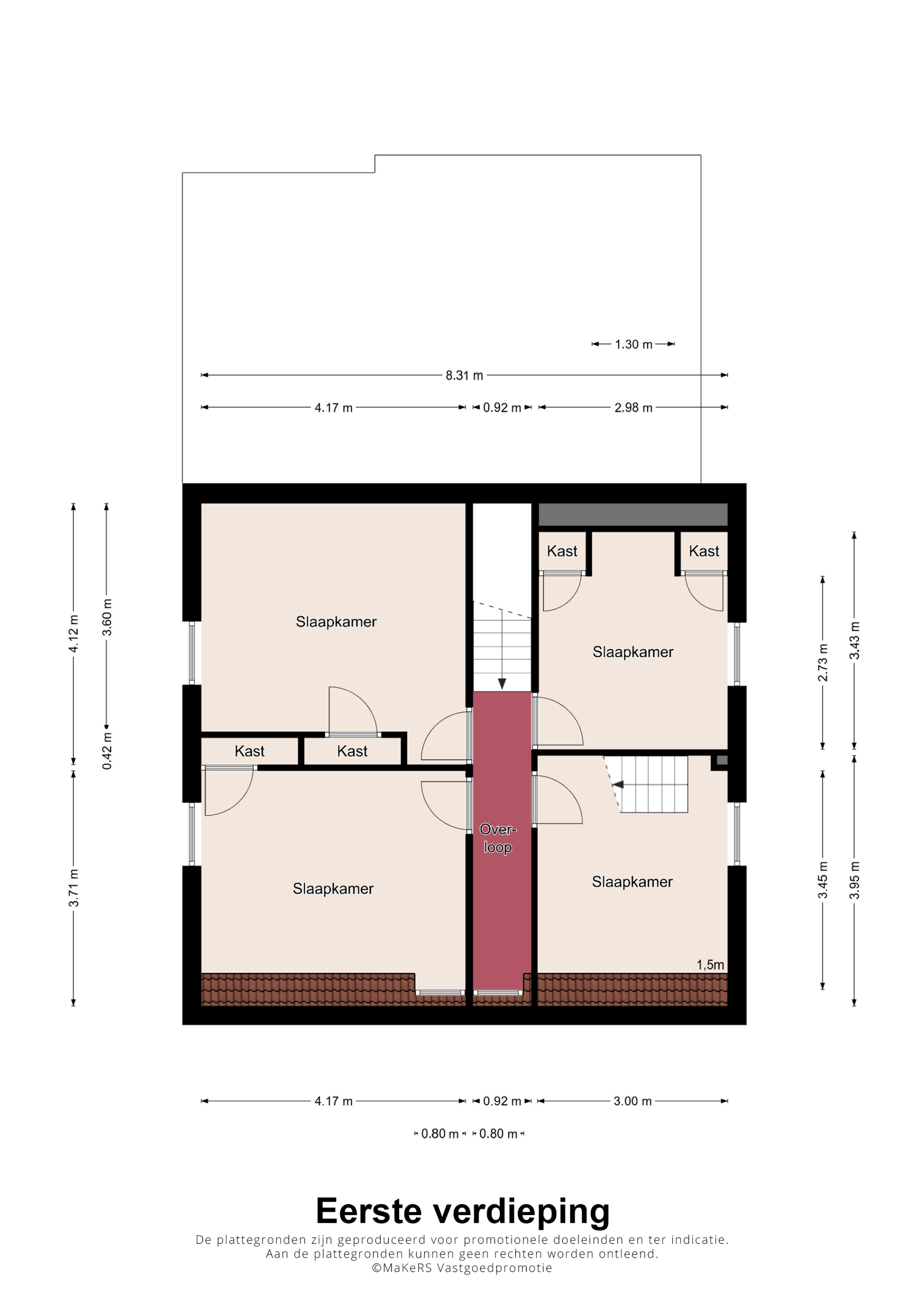 Op de eerste verdieping vindt u een overloop met toegang tot nog vier ruime slaapkamers, waarvan drie voorzien zijn van inbouwkasten.