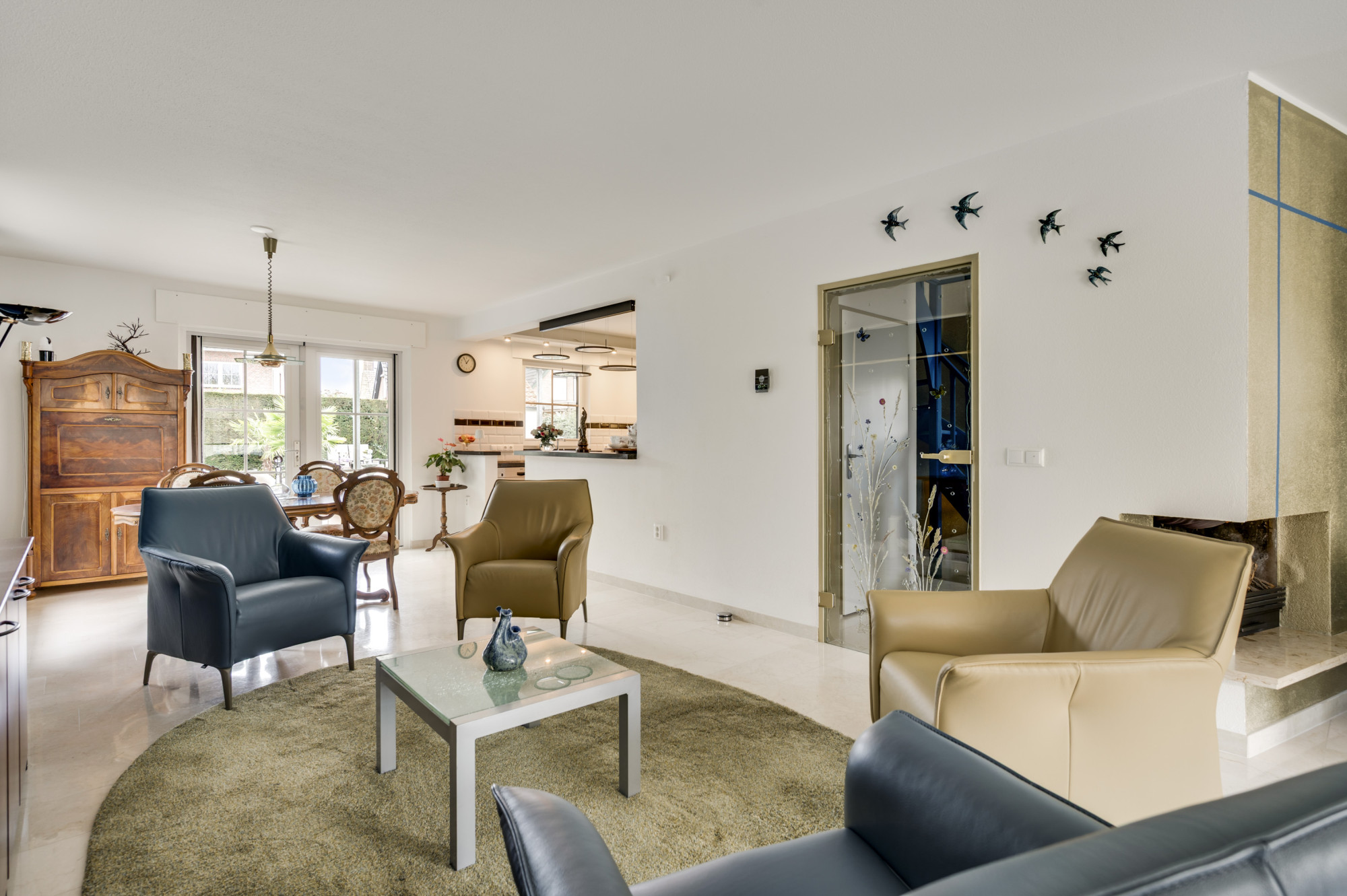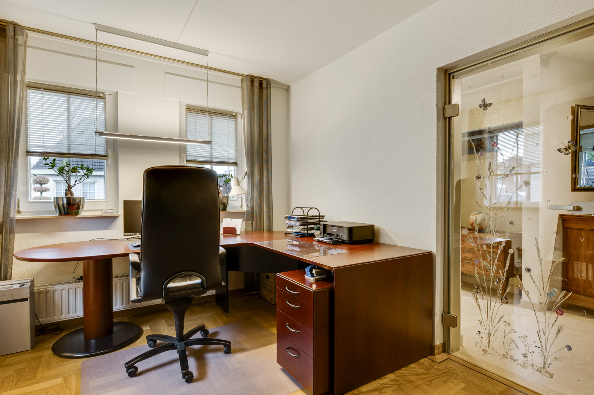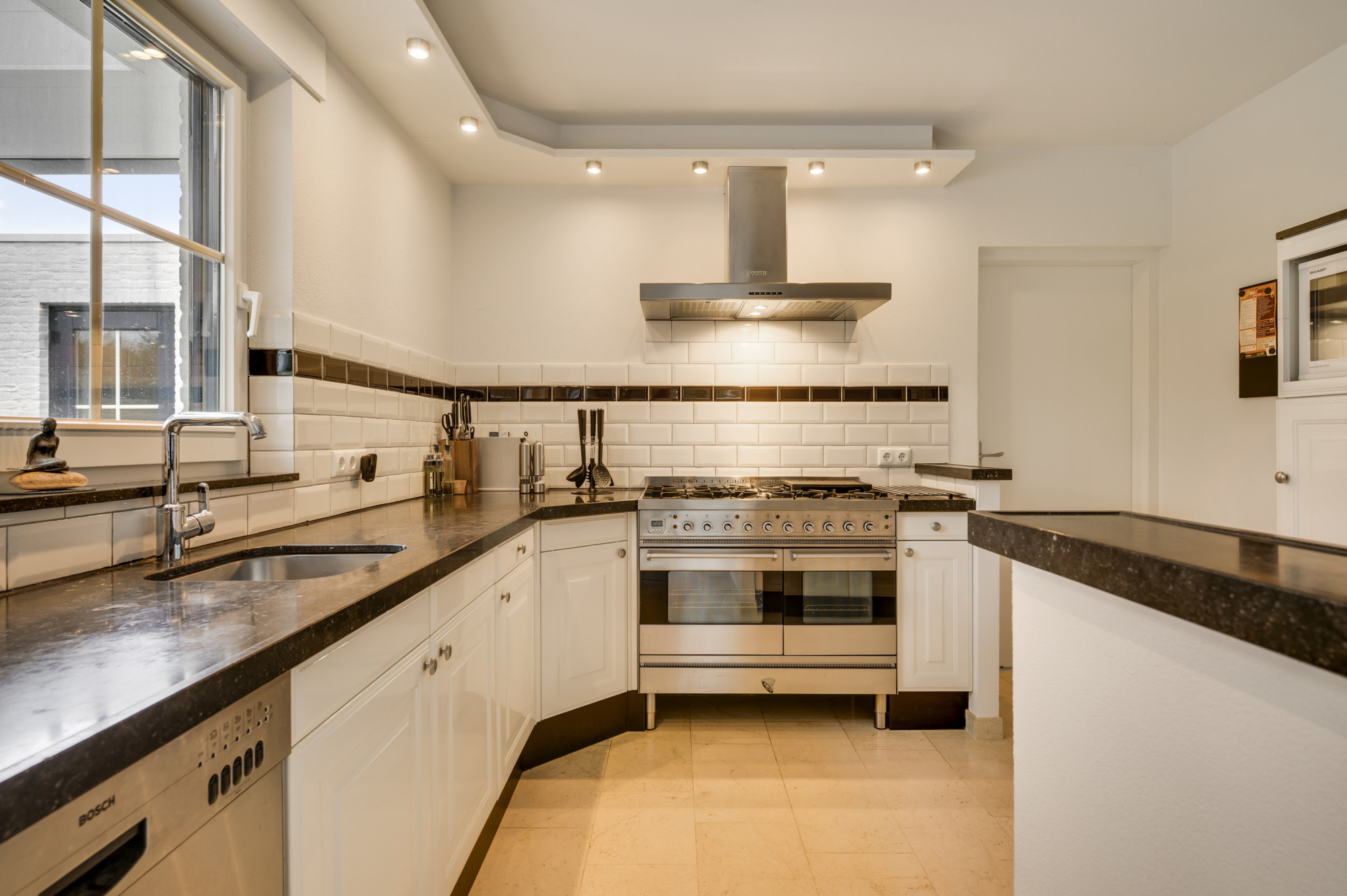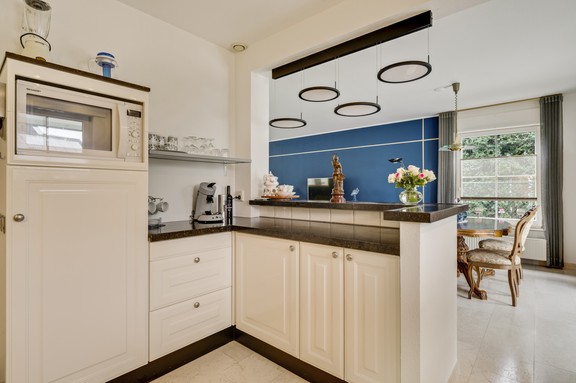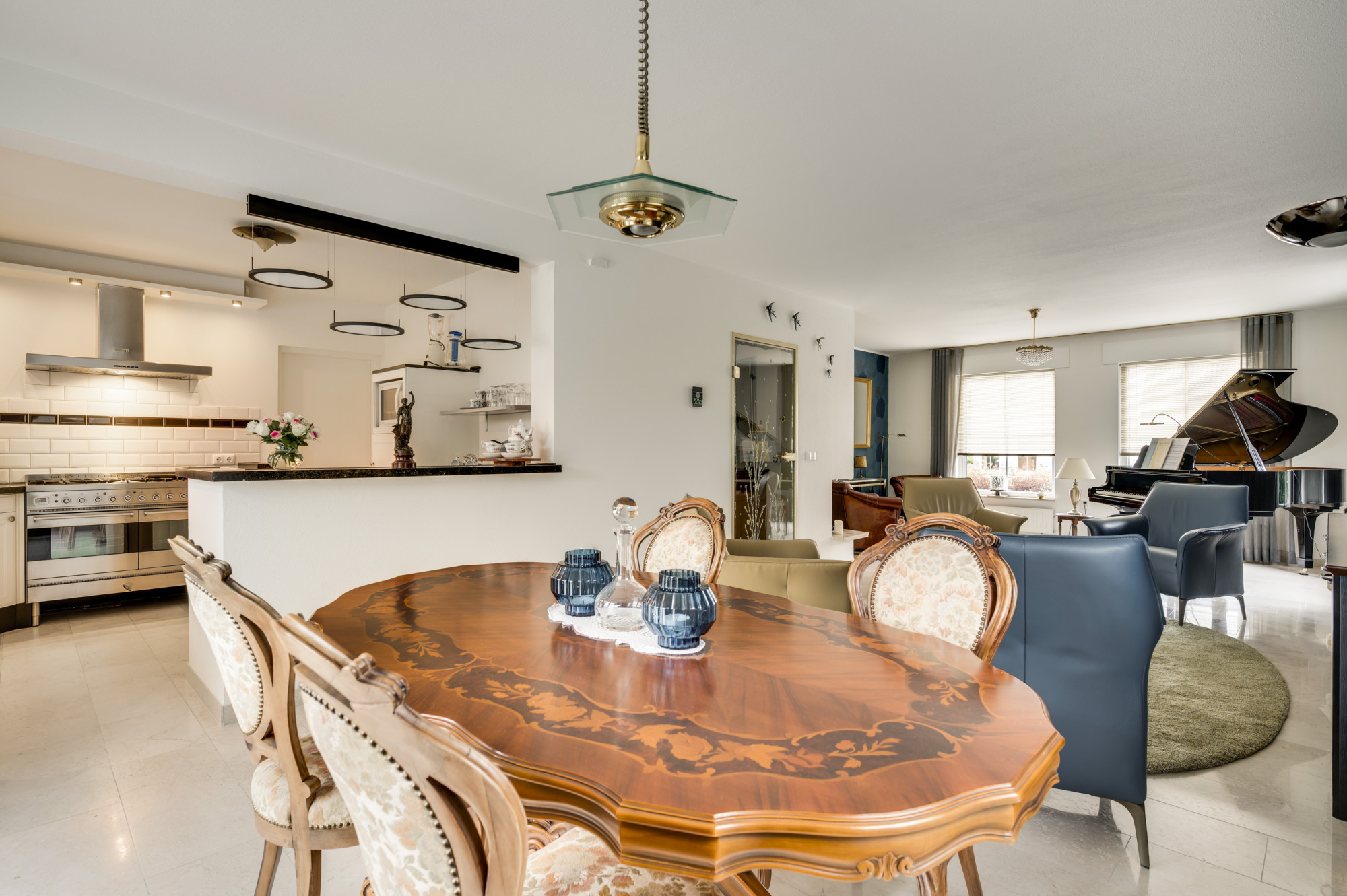Via de ruime hal met meterkast, toiletruimte met zwevend toilet en fonteintje, garderobe en trapopgang betreedt u deze prachtige woning. Aan de voorzijde bevindt zich een royale multifunctionele extra kamer met mooie parketvloer, die dankzij de grote raampartijen bijzonder licht en veelzijdig is. Deze ruimte is ideaal als gelijkvloerse slaapkamer, kantoor/praktijk/salon aan huis, speelkamer of hobbyruimte. De sfeervolle woonkamer is ruim opgezet en afgewerkt met een luxe marmeren vloer. De open haard zorgt voor extra warmte en sfeer, terwijl de openslaande deuren een directe verbinding met de tuin creëren. Aansluitend treft u de keuken, uitgevoerd in een praktische opstelling in twee delen en voorzien van hoogwaardige inbouwapparatuur, waaronder een Boretti gasfornuis, afzuigkap, oven, koelkast en een vaatwasser. Met volop werk- en kastruimte is dit een keuken waar koken echt een plezier wordt.