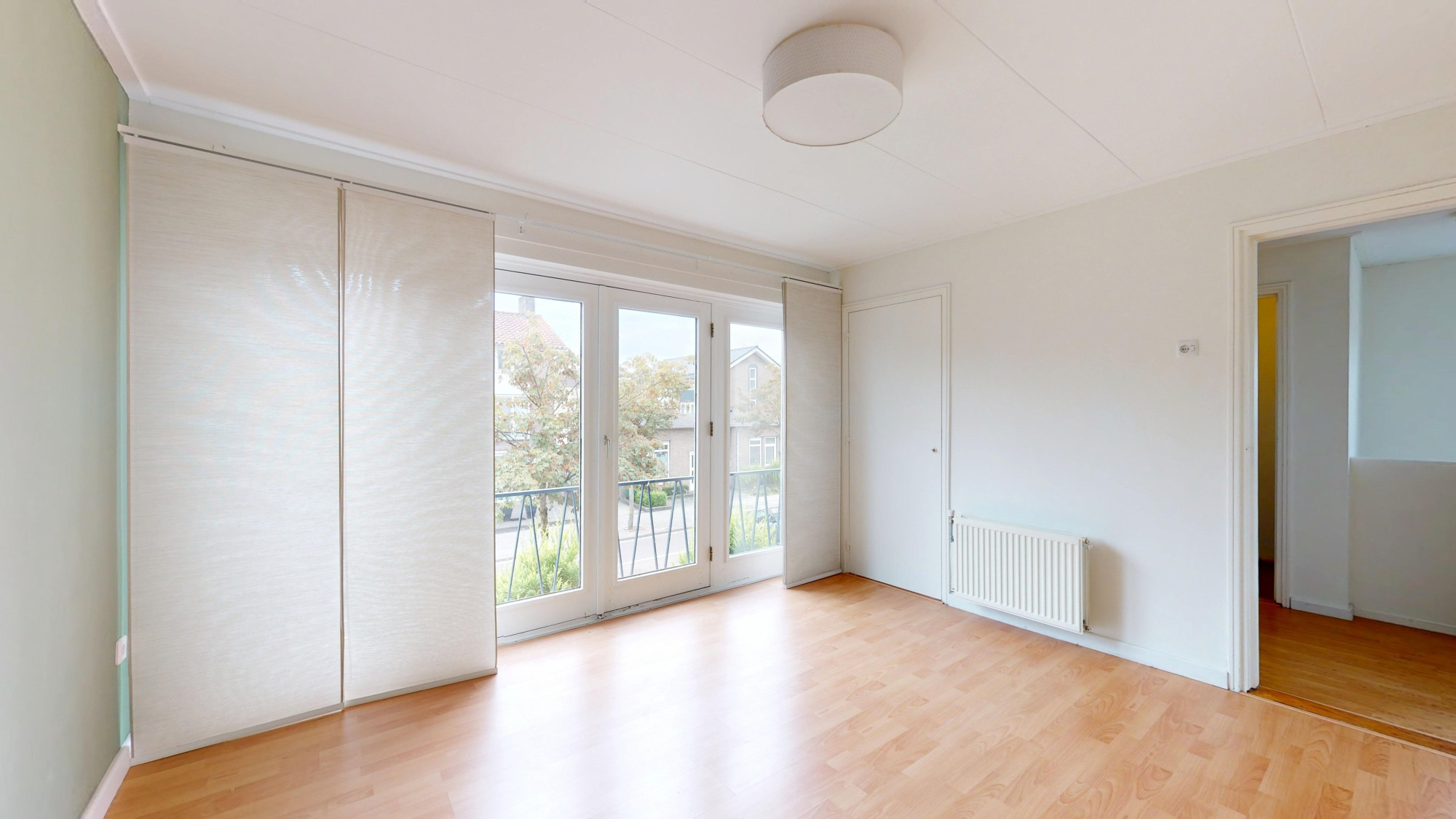 Slaapkamer 2 (3,75 x 3,3 m) voorzien van laminaatvloer, muurkast en frans balkon.