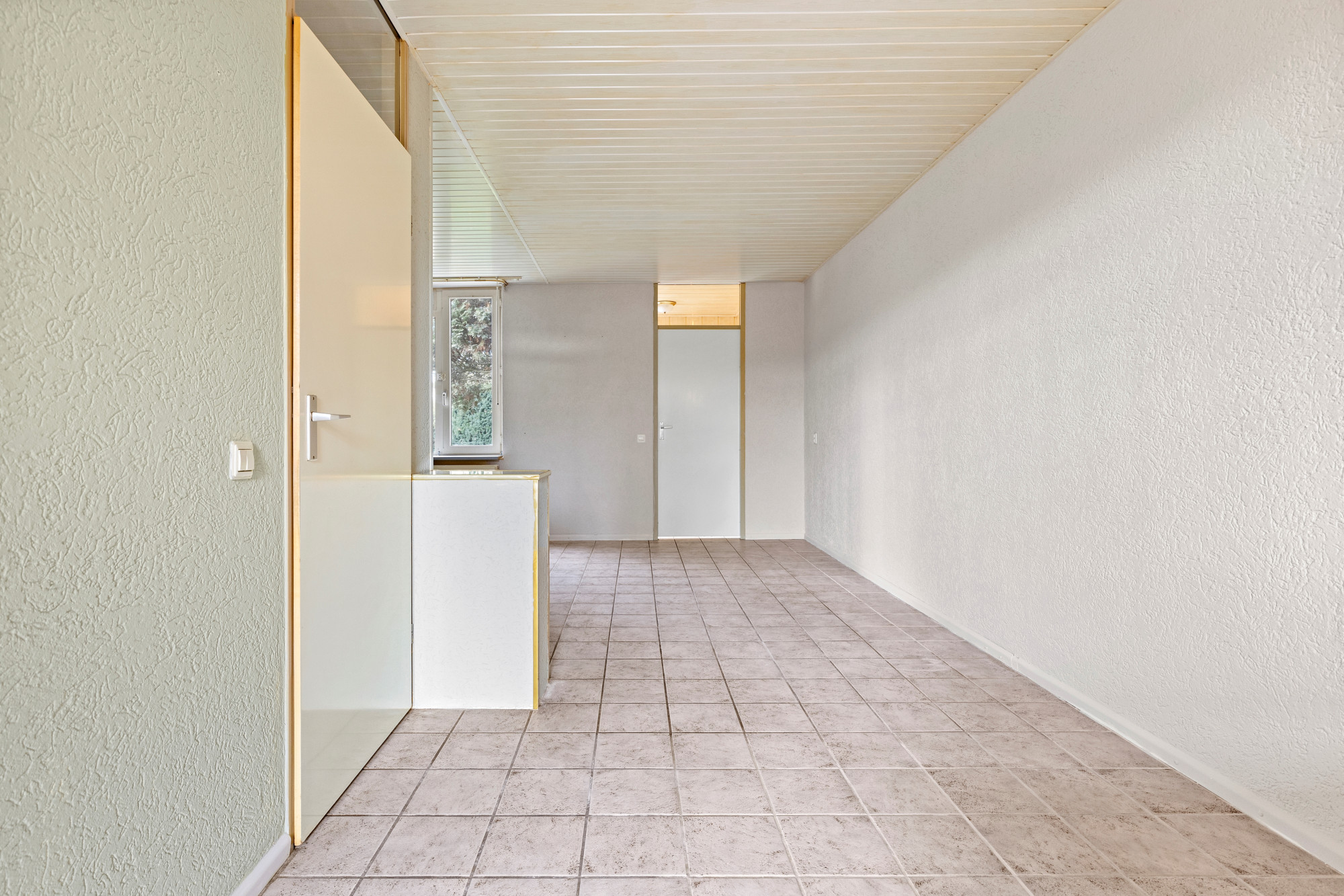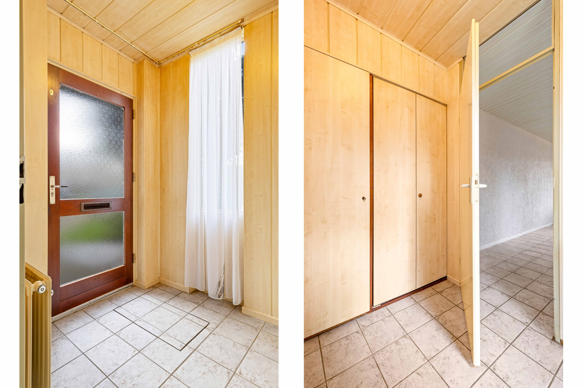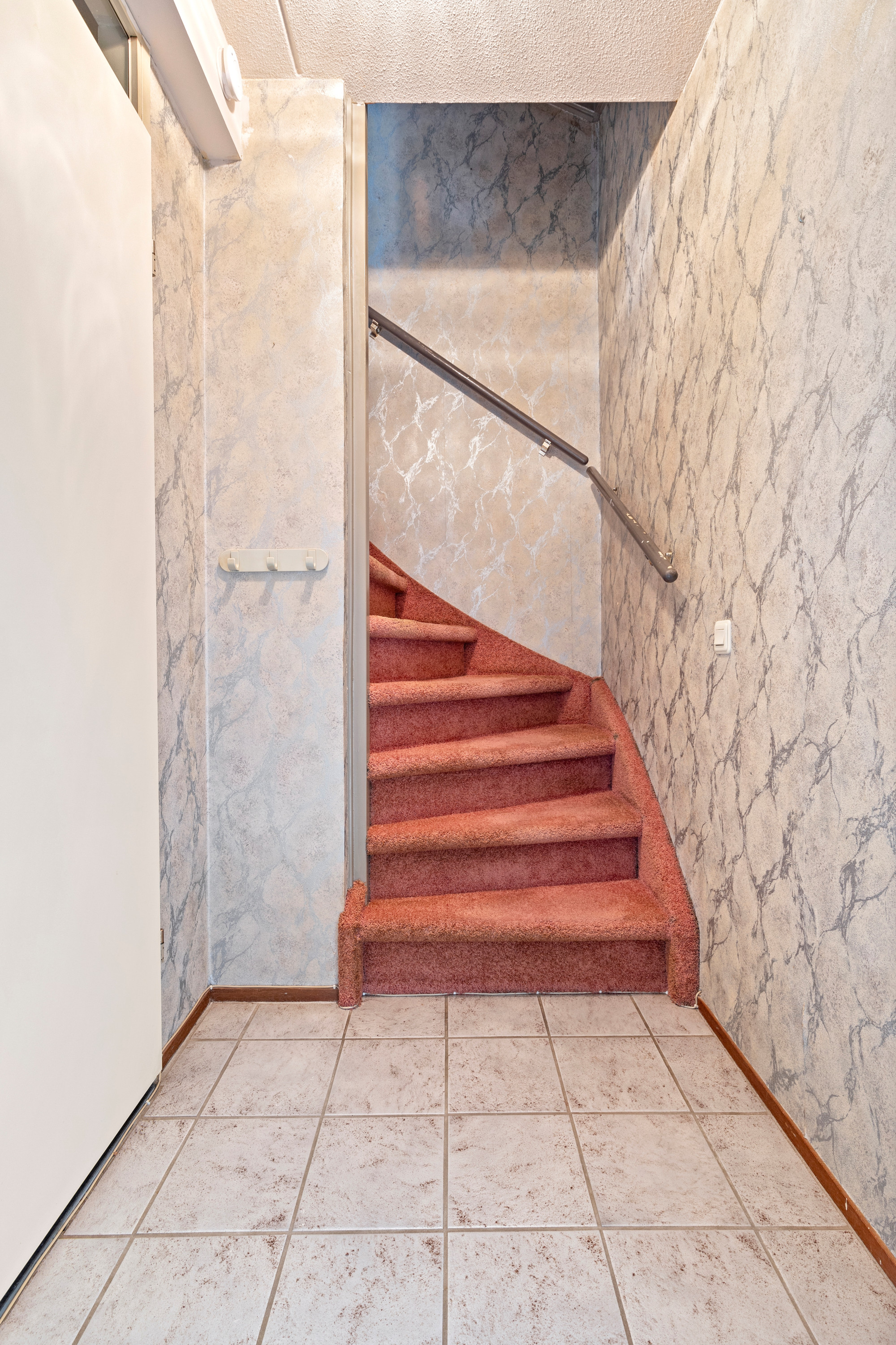 Hal/entree v.v. plavuizenvloer, meterkast en garderobekast.