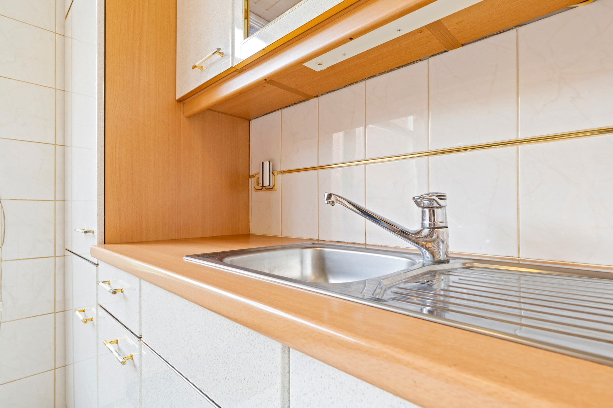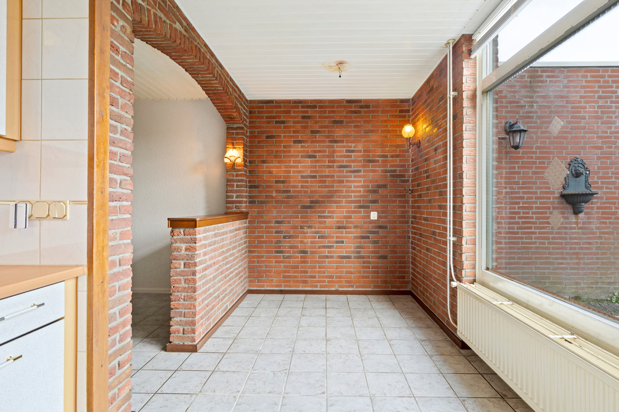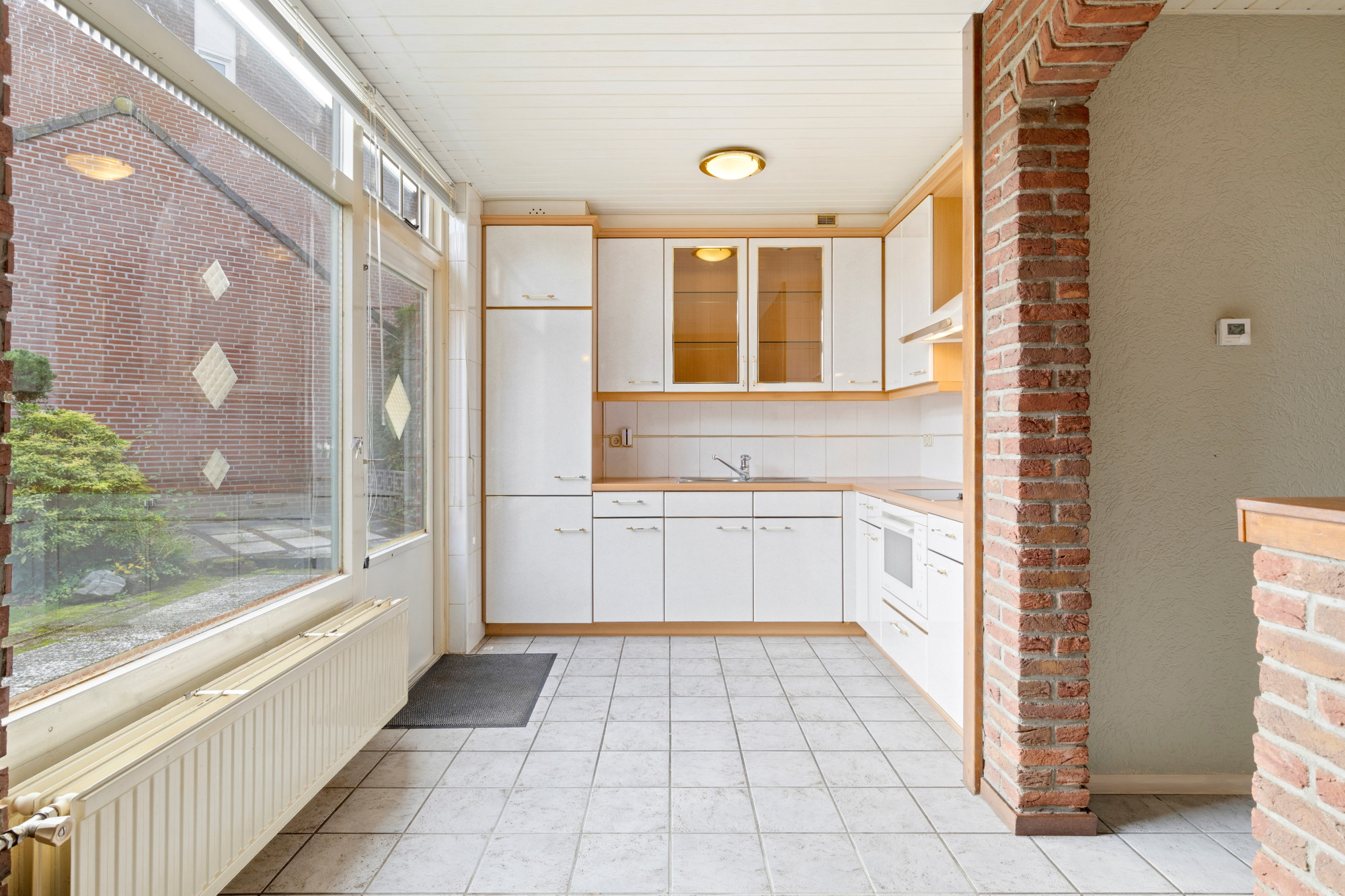 Vanuit de keuken heeft men toegang tot het terras (met zonnescherm) aan de achterzijde en ruime tuin.
