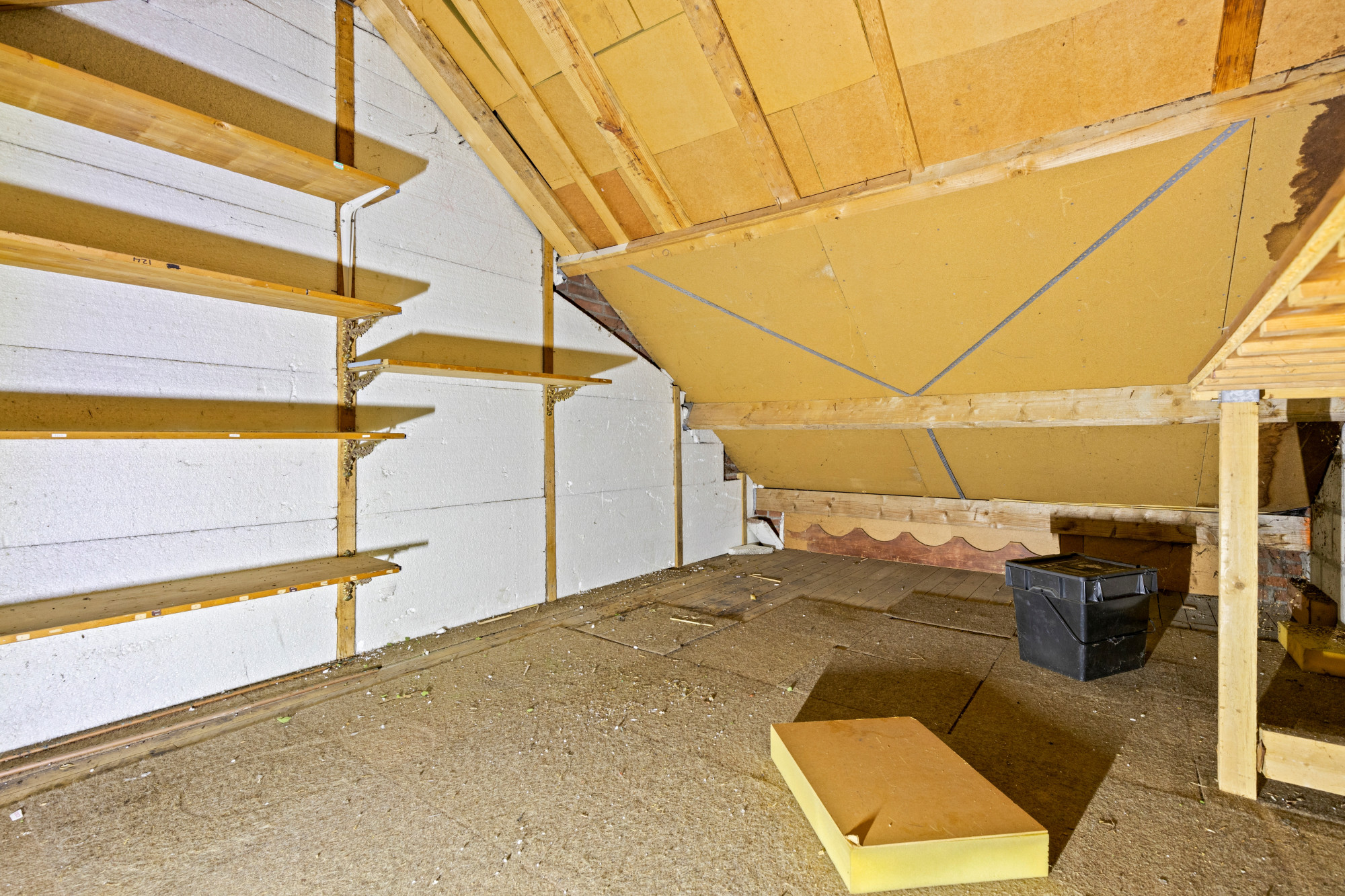 Middels een vaste trap is de bergzolder bereikbaar (eventueel 3e slaapkamer) v.v. kunststof kozijn met dubbele beglazing.