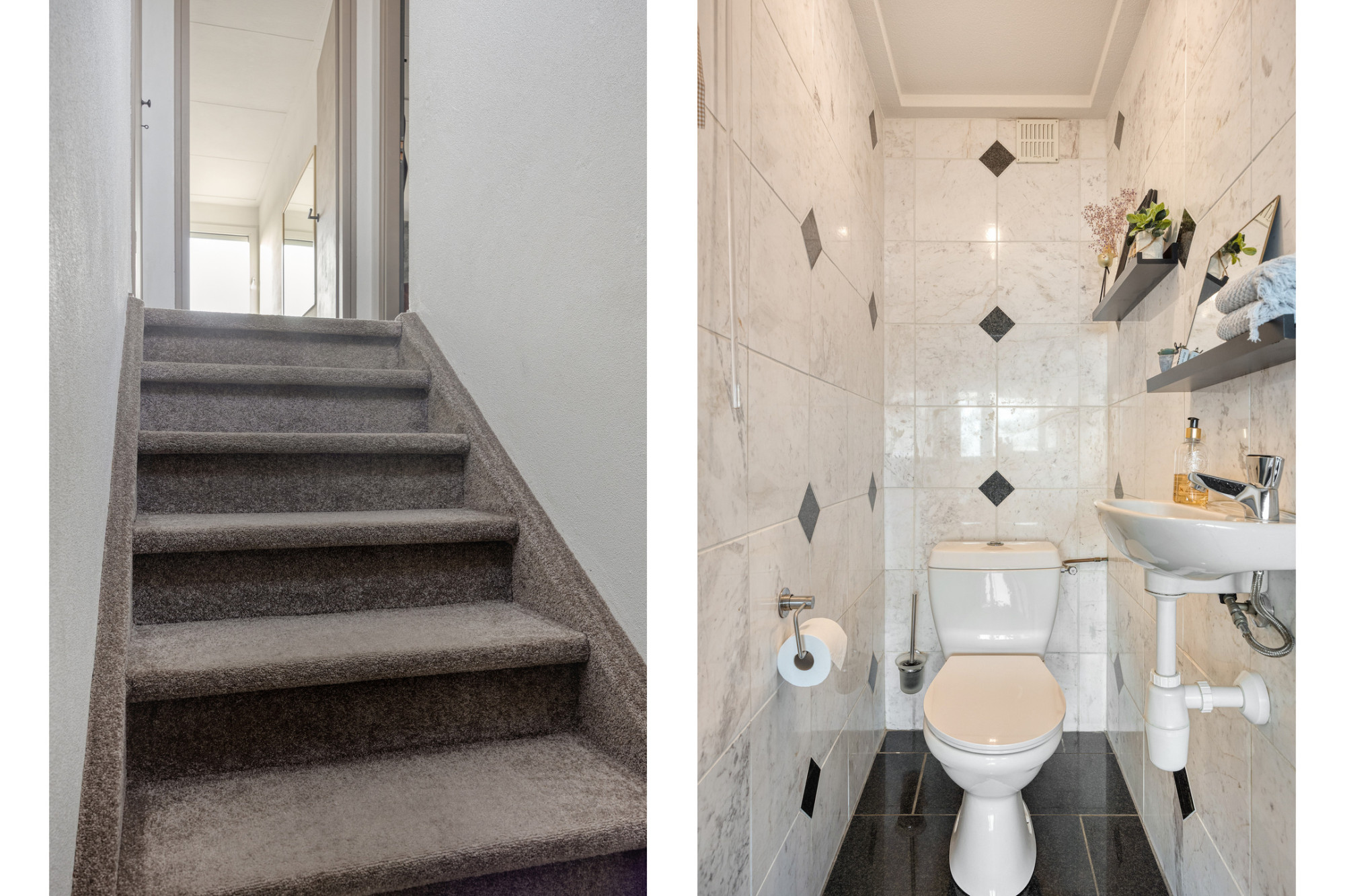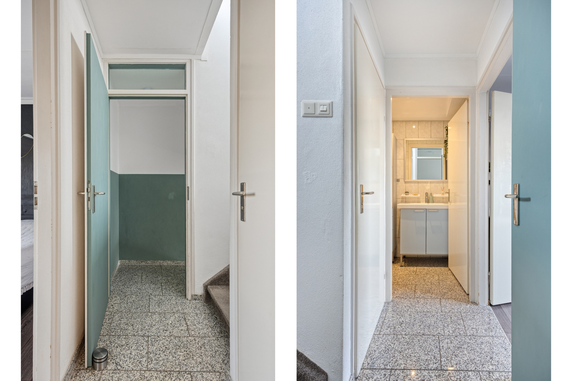 Op de verdiepingen zijn drie keurige slaapkamers aanwezig. De geheel betegelde badkamer is uitgevoerd met een comfortabel hoek-zitbad en een wastafel in een badkamermeubel. Daarnaast is er op de verdieping een separaat tweede toilet met staand closet en fonteintje.