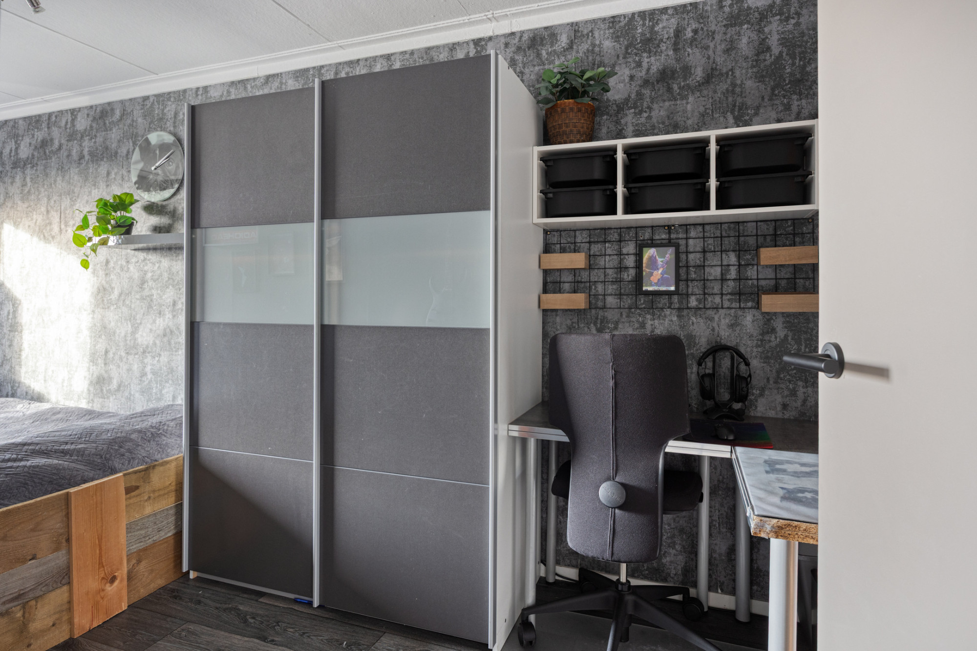 Een tweetal ruime slaapkamers, waarvan de rechter in gebruik is als kleedkamer.