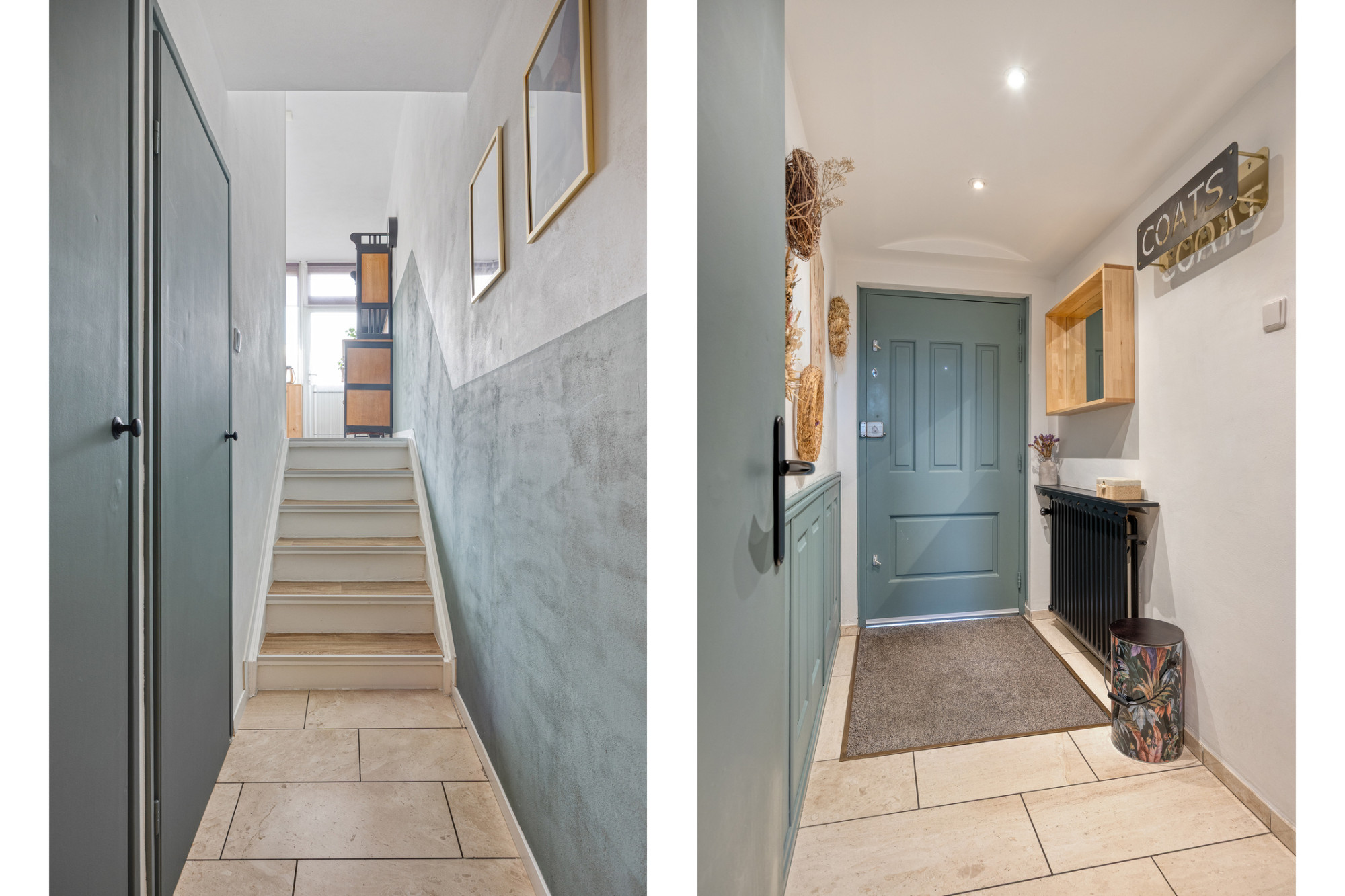 Hal/Entree, gang en trappenhuis naar de verdieping.