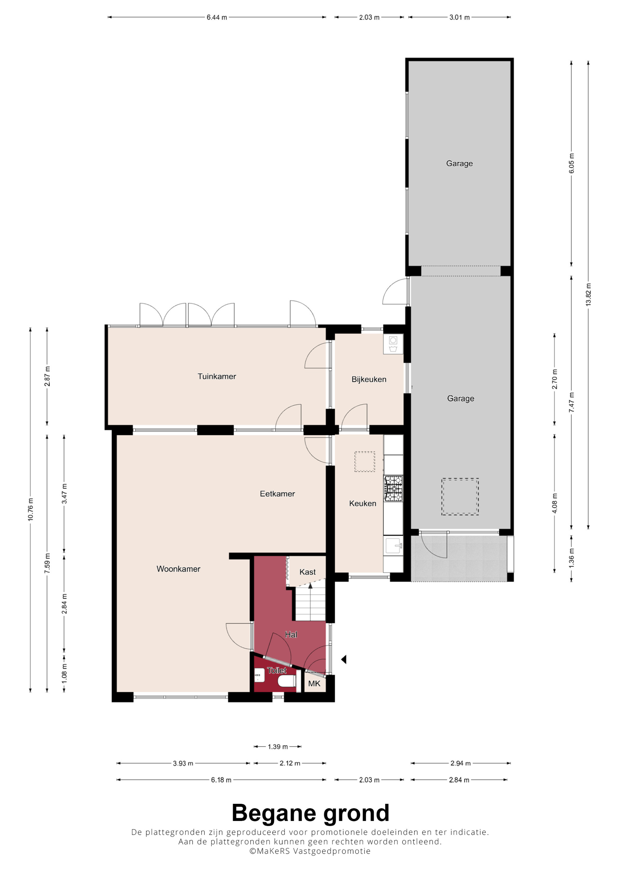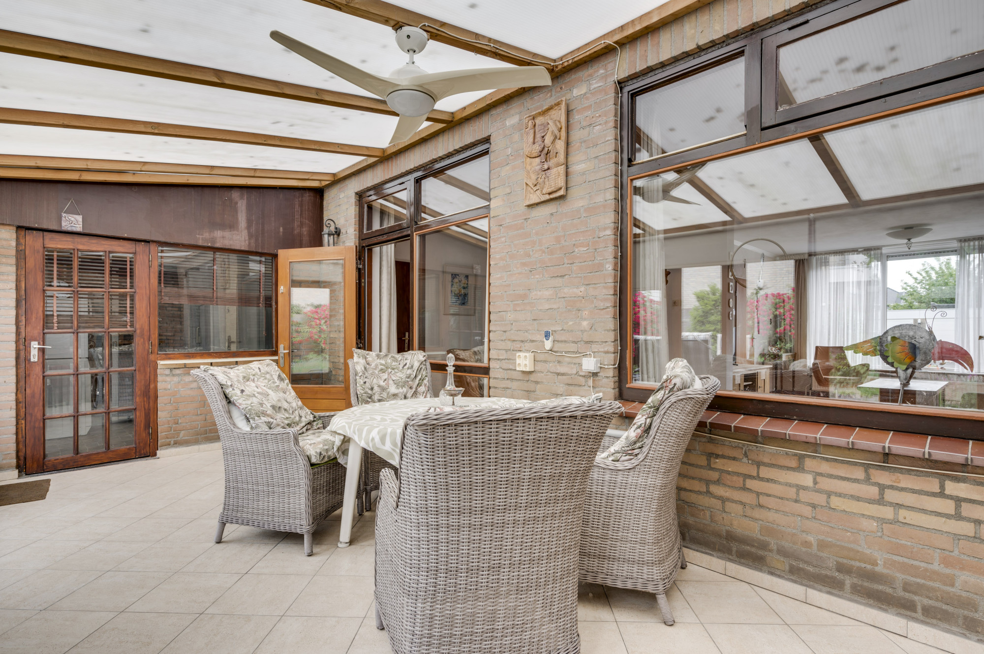 Via de keurig aangelegde voortuin en de oprit – met ruimte voor meerdere auto’s – betreedt u de woning. In de hal bevinden zich de meterkast, een praktische trapkast, de moderne toiletruimte met zwevend toilet en fonteintje, en de trap naar de eerste verdieping. De riante L-vormige woonkamer is voorzien van een warme parketvloer, een airco en een grote raampartij die zorgt voor veel lichtinval. U kijkt hier fraai uit op de rustige straat en hebt bovendien een mooie doorkijk naar de tuinkamer en tuin. De tuinkamer is een fijne extra leefruimte en uitgerust met comfortabele vloerverwarming en dubbele openslaande deuren naar de tuin; een heerlijke plek voor bijvoorbeeld een speelkamer, eetkamer of werkplek aan huis. Vanuit de woonkamer bereikt u de keuken met een mooie combinatie en inbouwapparatuur, waaronder een 5-pits gasfornuis, afzuigkap, combi-oven, koelkast en een vaatwasser. Grenzend aan de keuken ligt de praktische bijkeuken met witgoedaansluitingen. Vanuit hier hebt u toegang tot zowel de tuinkamer als de inpandige garage. Deze is met ruim 13 meter diepte bijzonder royaal en voor diverse doeleinden geschikt en beschikt over een elektrische kantelpoort, een loopdeur naar de tuin én een deur naar de oprit.