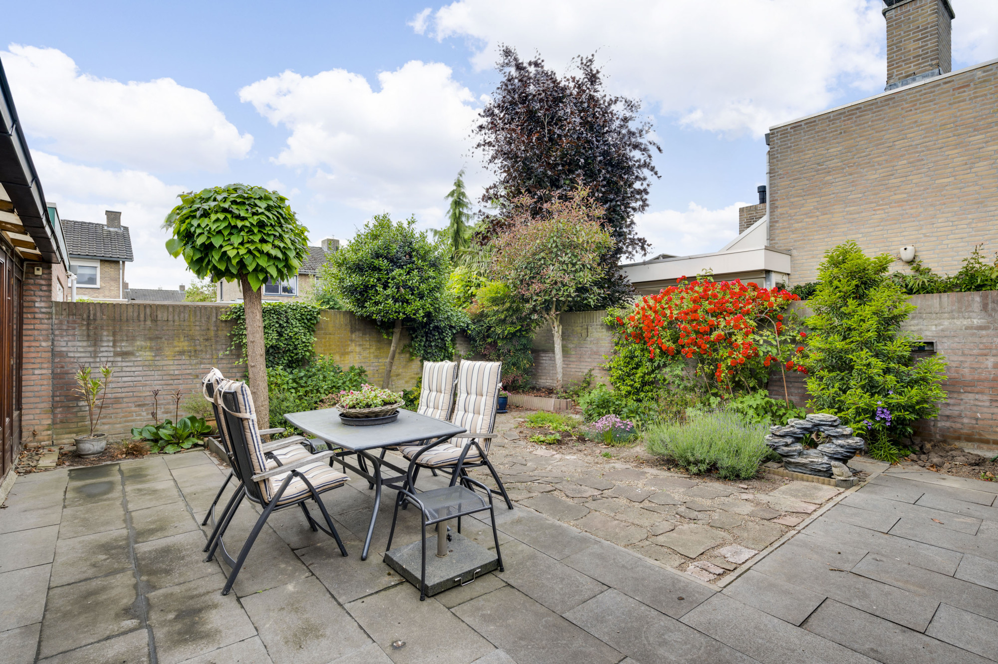 De zonnige achtertuin is verzorgd aangelegd met een terras, bestrating, borders en beplanting. Dankzij de hoekligging geniet u hier van veel privacy. Ook de voortuin is netjes aangelegd en de oprit biedt plaats aan meerdere voertuigen.