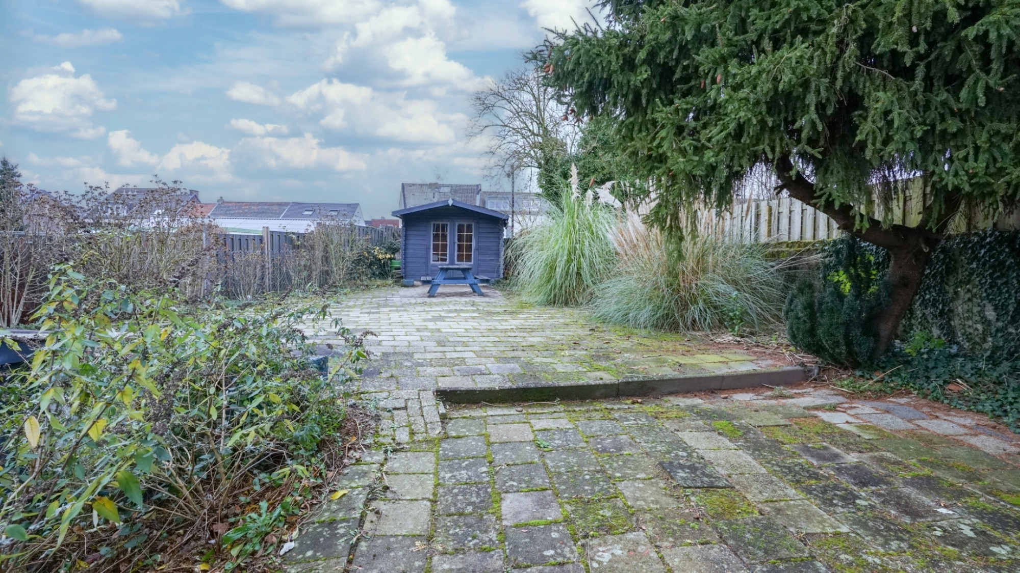 Naast de woning ligt een fraai aangelegde zijtuin met opgang naar de voordeur, toegang tot achtertuin en een oprit.