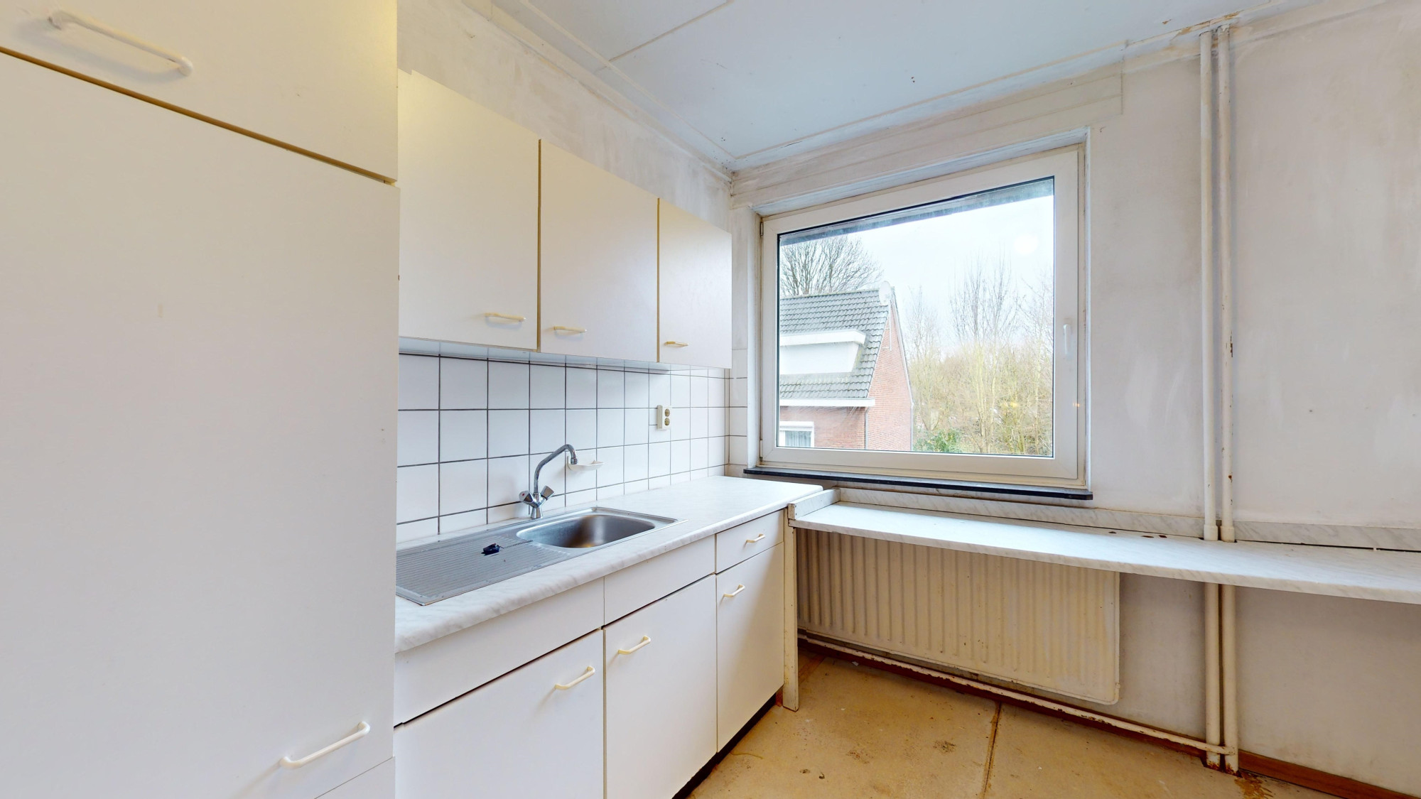 Slaapkamer 3 (2,75 x 2,60 m). Deze kamer is uitgerust met een keukenblok. Deze kamer kan tevens dienst doen als slaapkamer of worden verbouwd tot een ruime badkamer.