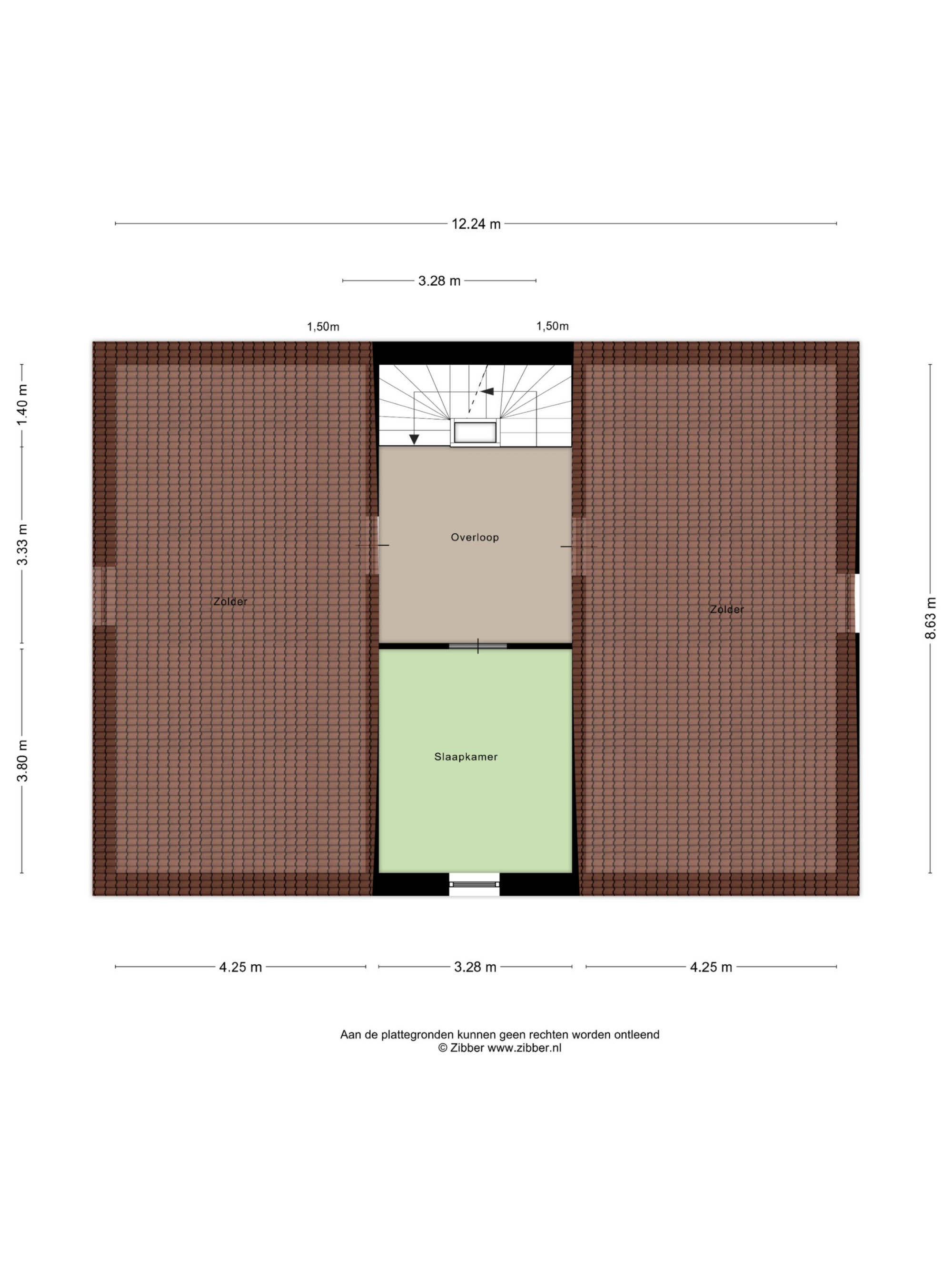 Op de tweede verdieping zijn de vijfde slaapkamer (circa 3,80m x 3,28m) en twee enorme zolderruimtes, beide van ongeveer 8,63m x 4,25m.