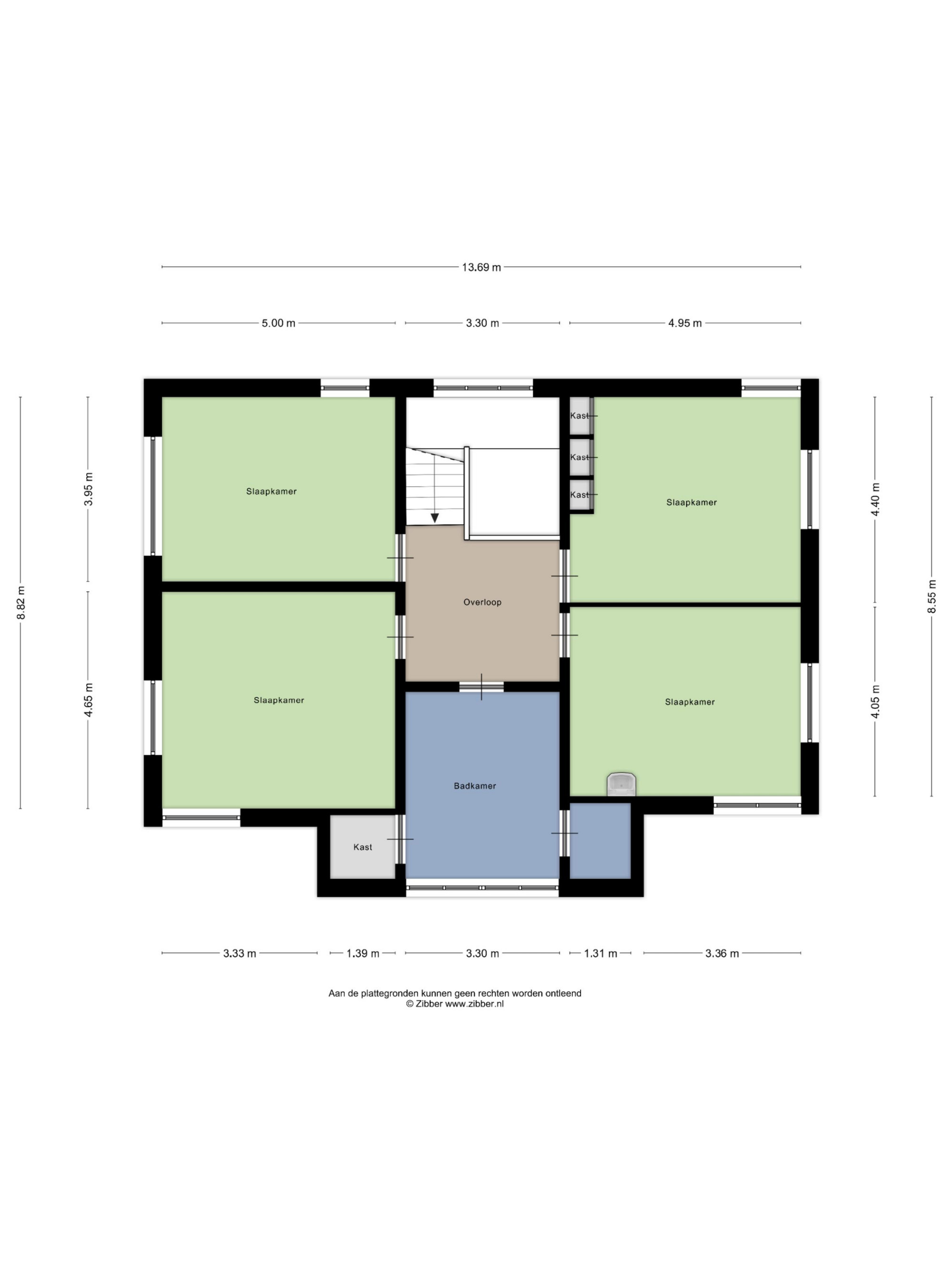Op de eerste verdieping zijn vier slaakamers en de badkamer. De slaapkamers zijn circa 4,95m x 4,40m, 4,95m x 4,05m, 5,00m x 3,95m en 5,00m x 4,65m groot. De casco badkamer heeft een afmeting van 4,00m x 3,30m. Er zijn een separate toiletruimte en een royale muurkast.